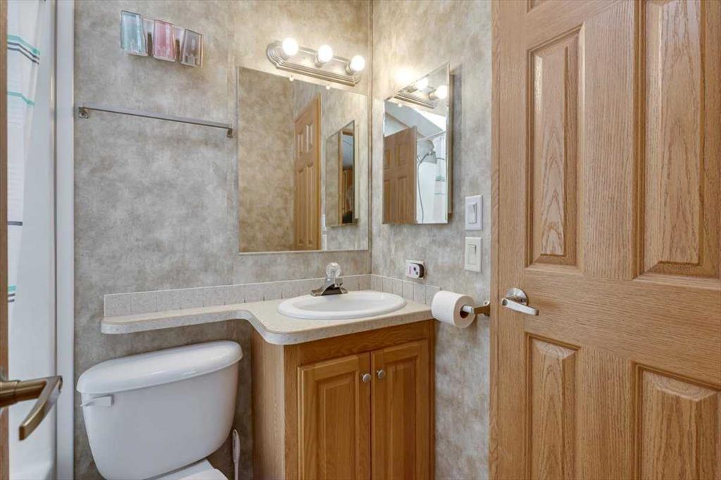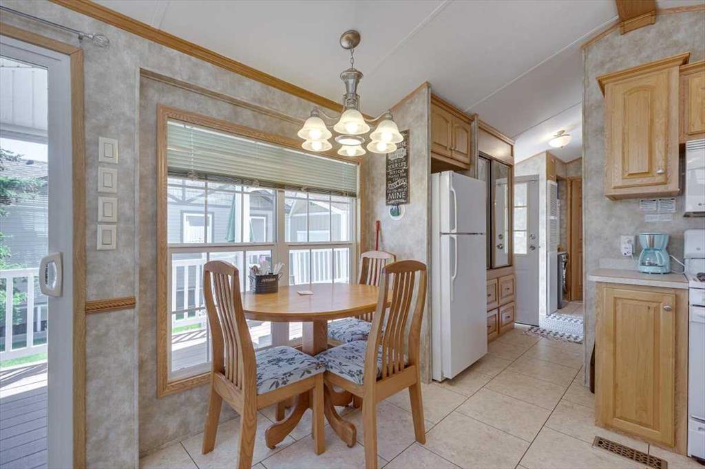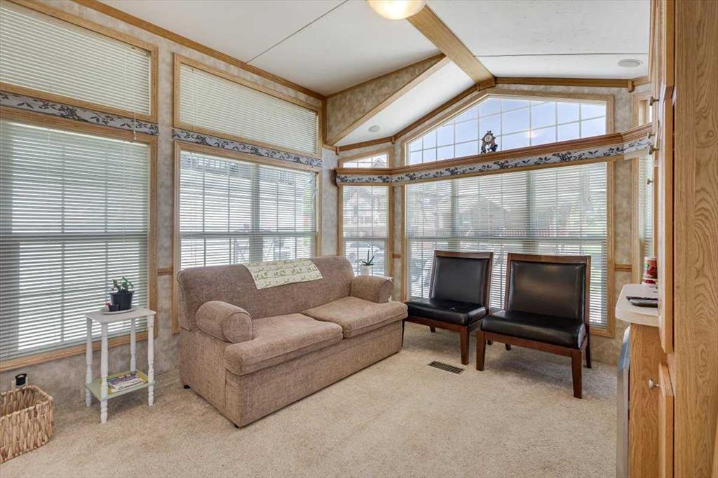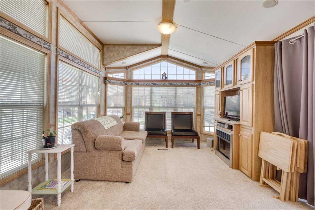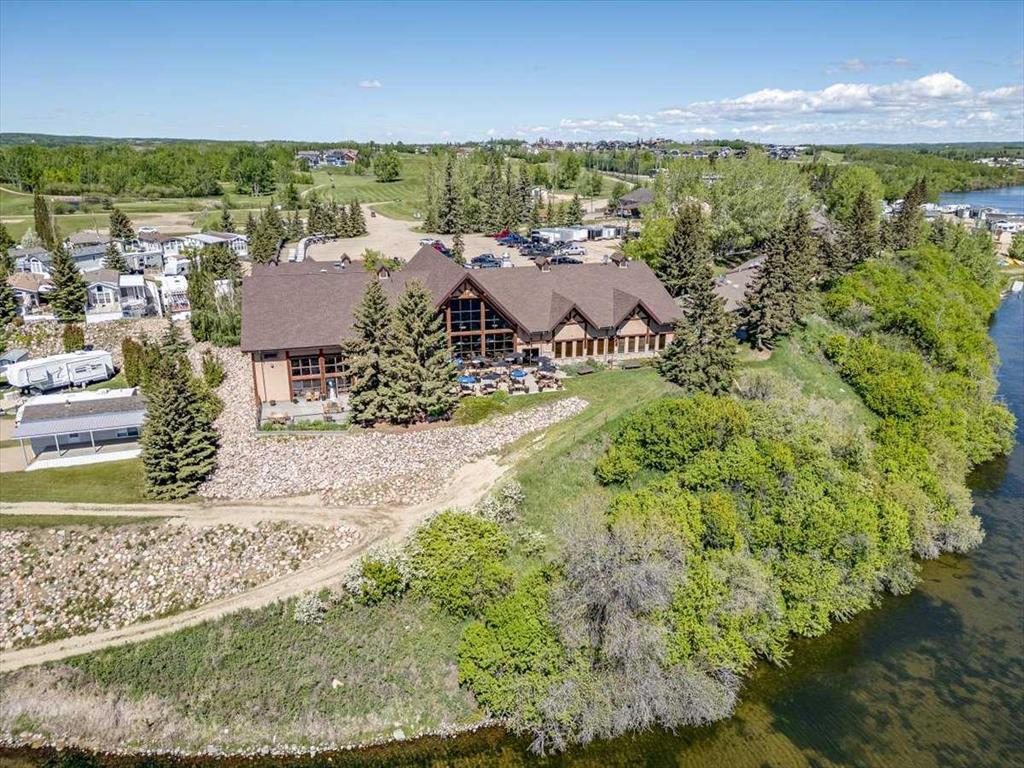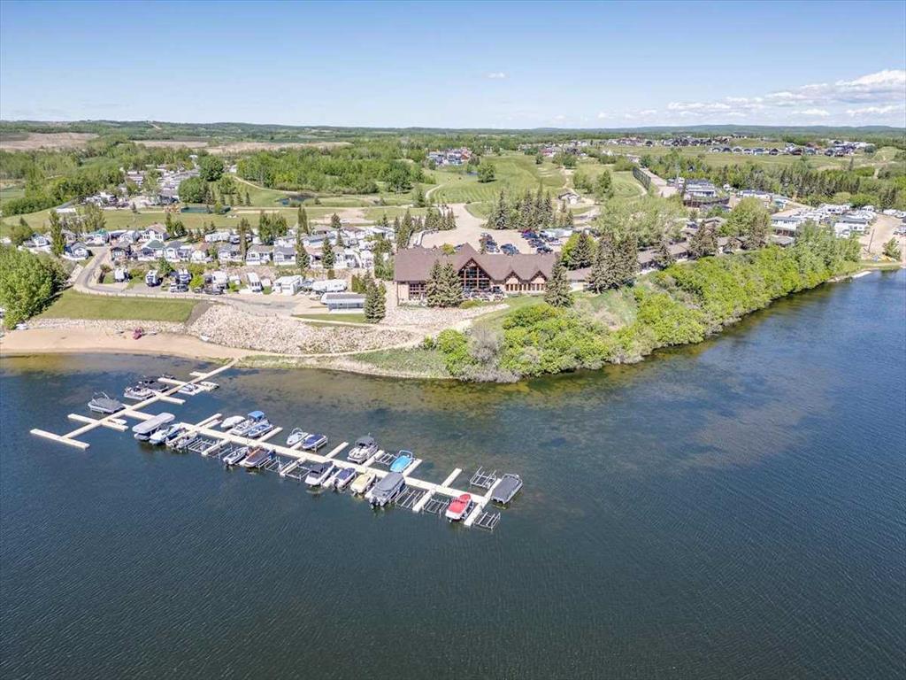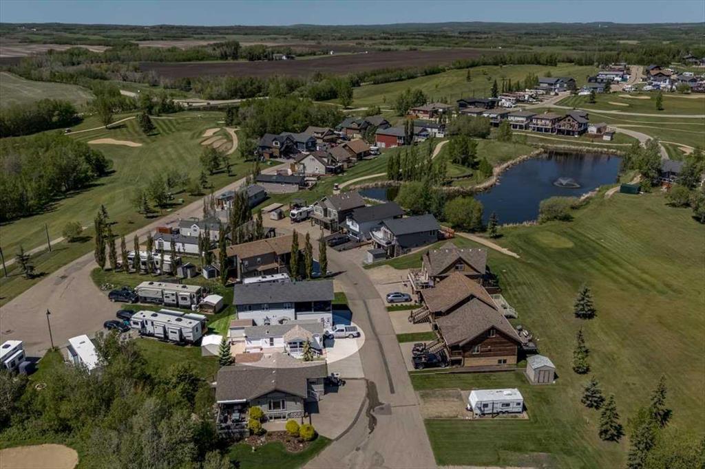 Escape the hustle of city life and enjoy year-round living at the beautiful Whispering Pines Golf & Country Resort. This property is situated on stunning Pine Lake, offering the perfect setting for relaxation, recreation, and creating lasting memories. This lot features an exceptionally clean and well-maintained park model unit, ideal for those looking to downsize, enjoy a peaceful retreat, or entertain family and friends. Just unpack and start enjoying resort living. This fully winterized park model unit features an open-concept layout with vaulted ceilings and floor-to-ceiling windows that flood the space with natural light. The spacious living area includes an electric fireplace for cozy evenings, while the modern kitchen is equipped with a gas stove, fridge, microwave, down the hall, you have a stacked washer/dryer. You will be very comfortable with 2 bedrooms, the primary bedroom has beautiful built-ins for storage. Also enjoy a spacious 4 piece bath. Step outside onto the south-facing composite deck, partially covered for all-weather enjoyment. Patio pavers along the side and back provide extended outdoor living space, perfect for morning coffee or enjoying a night under the stars. A 12x9 insulated shed is included for extra storage. Never worry about parking for your boat or golf cart with a 4 car concrete driveway. As a resident of the Whispering Pines gated community, you’ll enjoy access to a wide array of resort-style amenities designed for all ages and lifestyles. Highlights include a scenic 18-hole golf course, an indoor pool and hot tub, a full-service restaurant and bar, sports courts, a playground, a 55-slip marina, and a private beach. Your monthly condo fees provide exceptional value, covering services such as water and sewer, snow removal, professional property management, reserve fund contributions, and full access to all shared amenities, as well as year-round grounds maintenance. Close enough for convenience, far enough for peace just 90 mins from Calgary and 30 mins from Red Deer and Innisfail. Live where others vacation, make Whispering Pines Golf & Country Club Resort your new home.