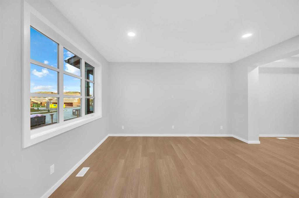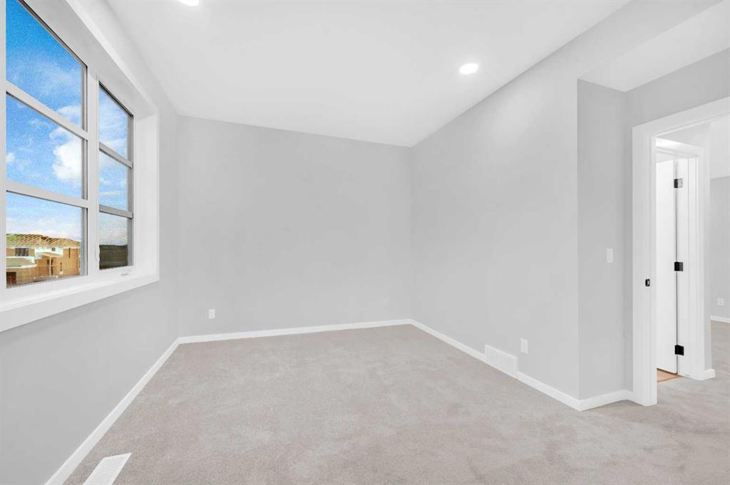 Be the first to live in this stunning brand-new home in Harmony-picturesque Lake community! With luxurious upgrades and plenty of space, this home features beautiful luxury vinyl flooring throughout the main floor, an open floor plan that floods with natural light, a dedicated office perfect for remote work, and a spacious living room. The gourmet kitchen is a chef's dream, boasting quartz countertops, a chimney hood fan, built-in microwave, upgraded gas range, French door fridge, and a center island ideal for food preparation and casual dining. The upper level offers a spacious master bedroom with vaulted ceilings, includes a walk-in closet and a luxurious 3-piece en-suite. Two additional good-sized bedrooms, a laundry room, and a full bathroom complete the upper level, along with a center bonus room perfect for kids' playtime, home office, or evening gatherings. The basement is a blank canvas, offering a side entrance, 9 ft ceilings, extra windows for natural light, and bathroom rough-ins, waiting for your personal touch and design ideas. Enjoy the outdoors on your private 10 x 10 deck, bbq gas line, perfect for relaxation and entertainment. Located in a prime spot, close to highway 1, shopping centers, schools, and a quick drive to Cochrane & Calgary. Don't miss out on this incredible opportunity to own a piece of Harmony! Contact your realtor today to schedule a showing and make this stunning home yours!