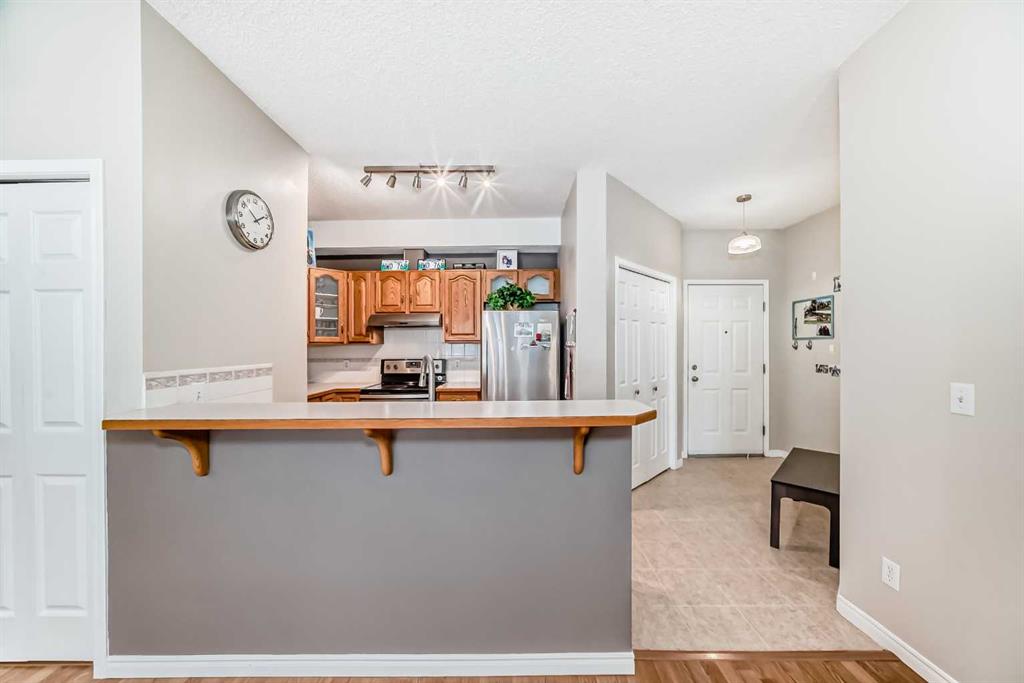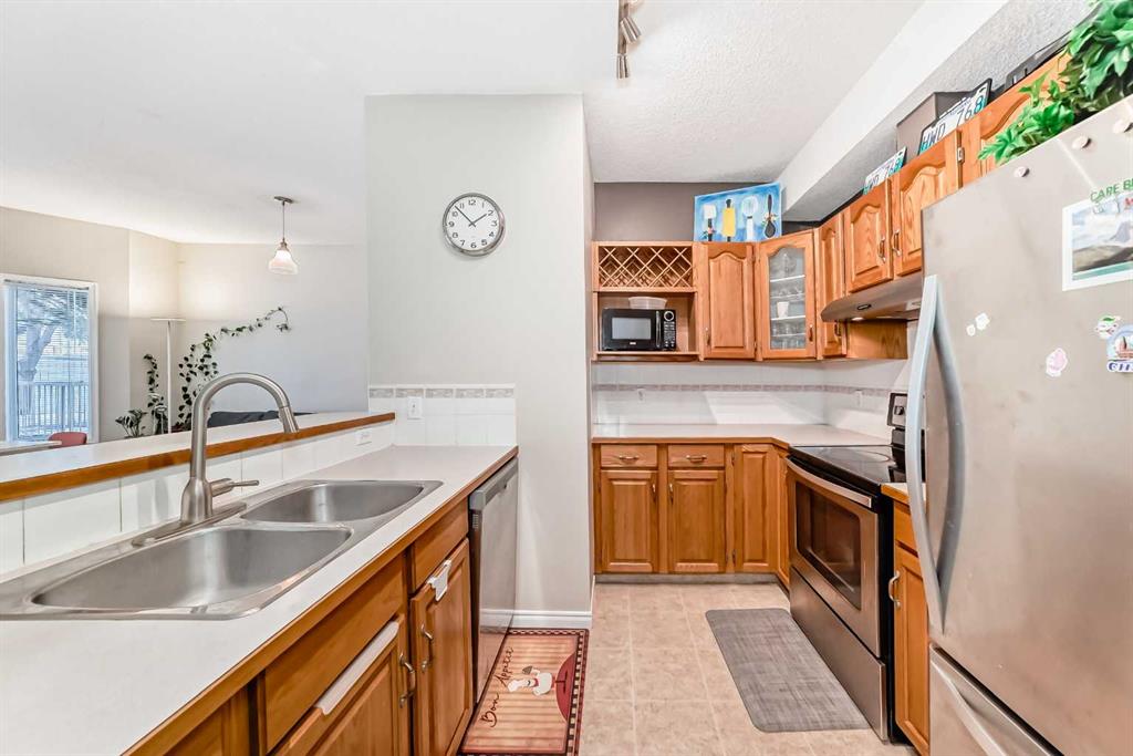 An ideal place to call home, this bungalow-style townhouse is perfectly located in the heart of Windsor Park and offers easy, low-maintenance living. Step inside to a bright, open-concept layout with a spacious foyer that leads into the kitchen, featuring stainless steel appliances and a convenient breakfast bar—great for quick meals or casual entertaining. The kitchen opens to the cozy living room with laminate flooring, a corner gas fireplace, large windows, and direct access to a generous patio and outdoor space, perfect for relaxing after a long day. The thoughtfully designed floor plan includes two comfortable bedrooms, highlighted by a primary bedroom with a walk-through closet and private 3-piece ensuite. A full 4-piece bathroom and in unit laundry add everyday convenience. Assigned parking and storage are included, and the location puts you close to schools, shopping, parks, and public transit—making this a smart and affordable first step into homeownership.