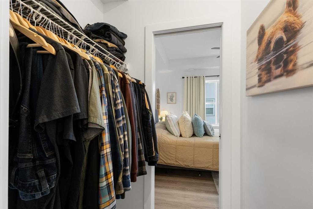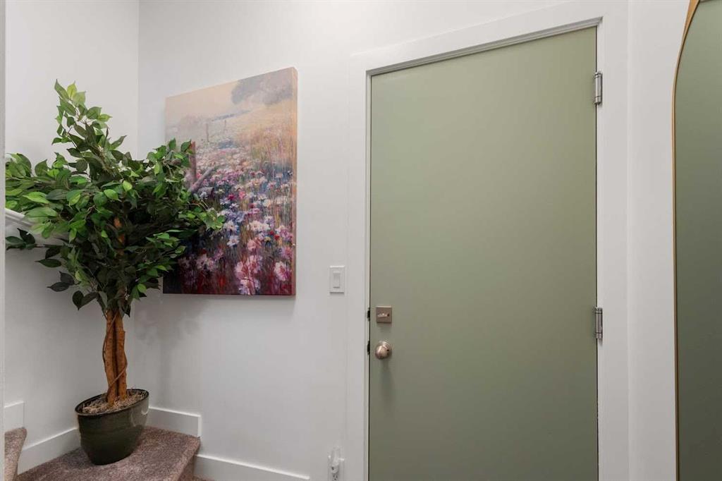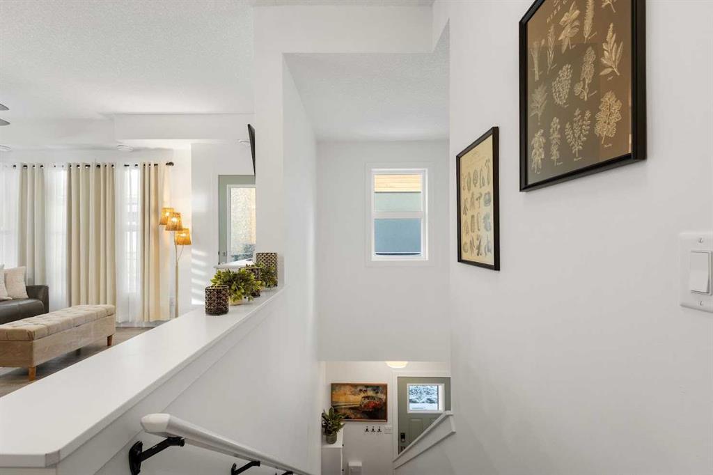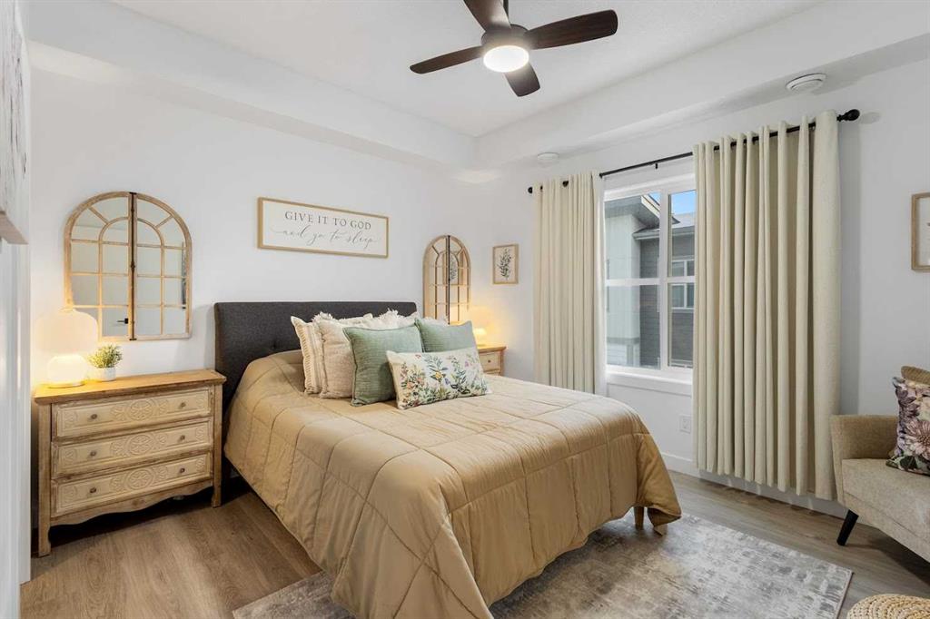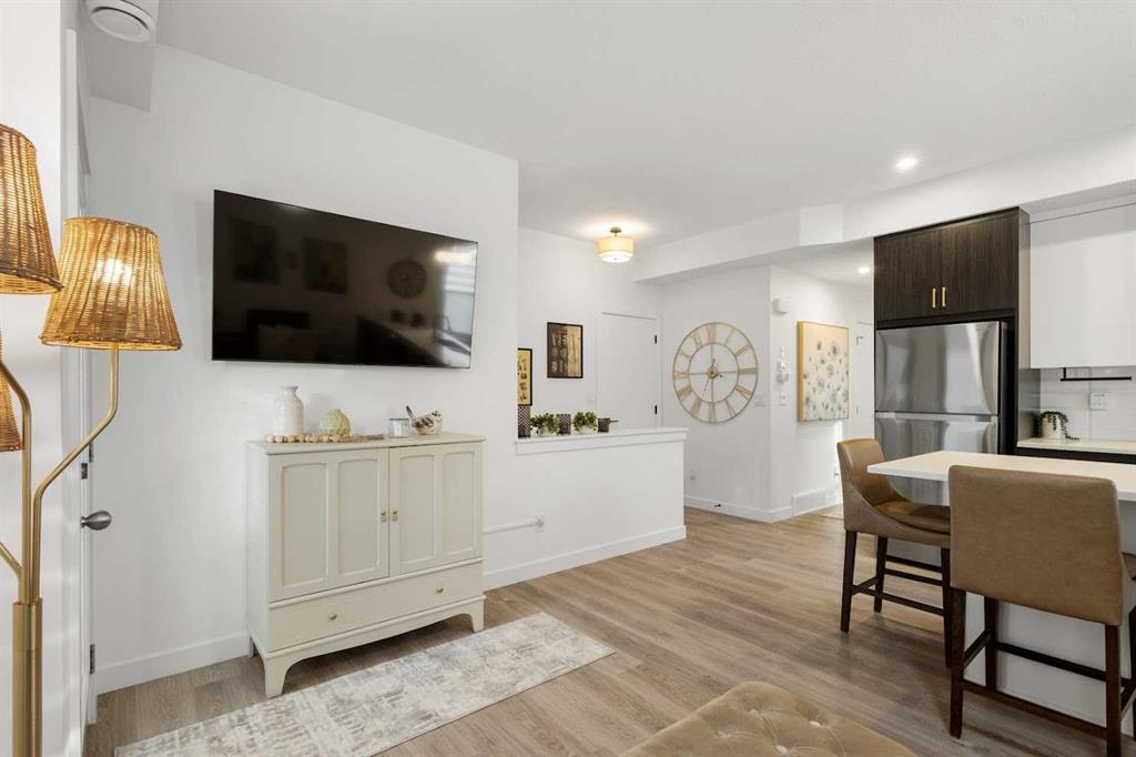 Contemporary European-style townhome with 2 beds, 2 baths, a spacious balcony on the TOP floor & a tree-lined view. From the moment you enter, the home showcases a designer show-home feel. The open-concept 2-storey stacked townhouse features 9' ceilings, double-pane windows, fully installed CENTRAL AIR-CONDITIONING, a HIGH EFFICIENCY FURNACE, humidifier, water tank, water-proof durable LVP flooring throughout the kitchen, living, dining area, bathrooms, & bedrooms. The European-inspired kitchen is finished with Quartz countertops, High-quality cabinets, Soft-close doors, Backsplashes, new UPGRADED SAMSUNG stainless-steel appliances, microwave hood fan, and front-load washer & dryer. The newly completed Elkwood Townhouse (Phase 2) offers affordable luxury & convenient living, close to Aspen Landing Shopping. Bordered by a natural environmental reserve & walking trails that connect throughout the community, it is a perfect location for active living & relaxation. Built by Slokker Homes, a quality builder since 1935, these homes offer the best value in Aspen and Springbank Hill.