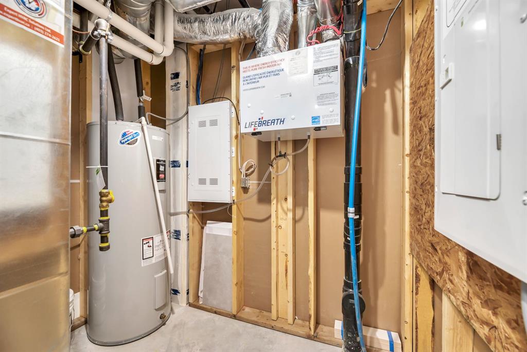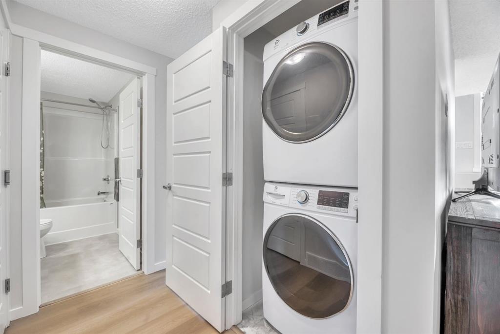 Immaculate, shows nicer than brand new 3 BEDROOM, 2 FULL BATH below grade unit in Riverstone Cranston! Very few units like this in the city! Excellent layout, almost 1200 sq feet with every room being perfectly sized and low condo fees. Cute, spacious and private patio space secured with a gate plus an adorable shed. Comes with one parking stall (#196) directly in front of unit plus numerous visitor parking in the parking lot and only a few steps away from the common green space. Brand new fridge and dishwasher, quartz counters, stylish finishes, excellent condition and super clean! Experience a quiet, riverside and natural setting in Riverstone Cranston!