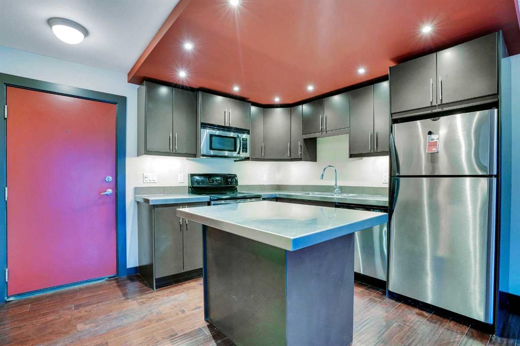 FANTASTIC PRICE FOR THIS PROPERTY! Welcome to your ELEGANT, MODERN, and BRIGHT south-facing condo in the sought-after Capitol Hill community! Located on the second floor, this corner unit is filled with natural light, thanks to its LARGE WINDOWS and gleaming engineered hardwood flooring. The contemporary kitchen is a true standout, featuring stylish cabinetry and sleek METAL COUNTERTOPS, complemented by STAINLESS STEEL appliances. True elegance! This home offers two spacious bedrooms, each with AMPLE NATURAL LIGHT, closet organizers, and plenty of space. The updated 4-piece bathroom boasts modern plumbing fixtures, a contemporary sink, and a deep bathtub for ultimate relaxation. Convenience is key with IN-SUITE LAUNDRY, complete with a stacked washer/dryer, and a "TITLED COVERED PARKING SPOT", equipped with electrical plugs for winter warmth. Situated in a PRIME LOCATION, you’re just minutes away from SAIT, the U of C, the C-Train station, shopping, restaurants, and easy access to the mountains. Enjoy the outdoors with nearby Confederation Park and Nose Hill Park, perfect for year-round walks. This home is easy to show—contact us today for a viewing!