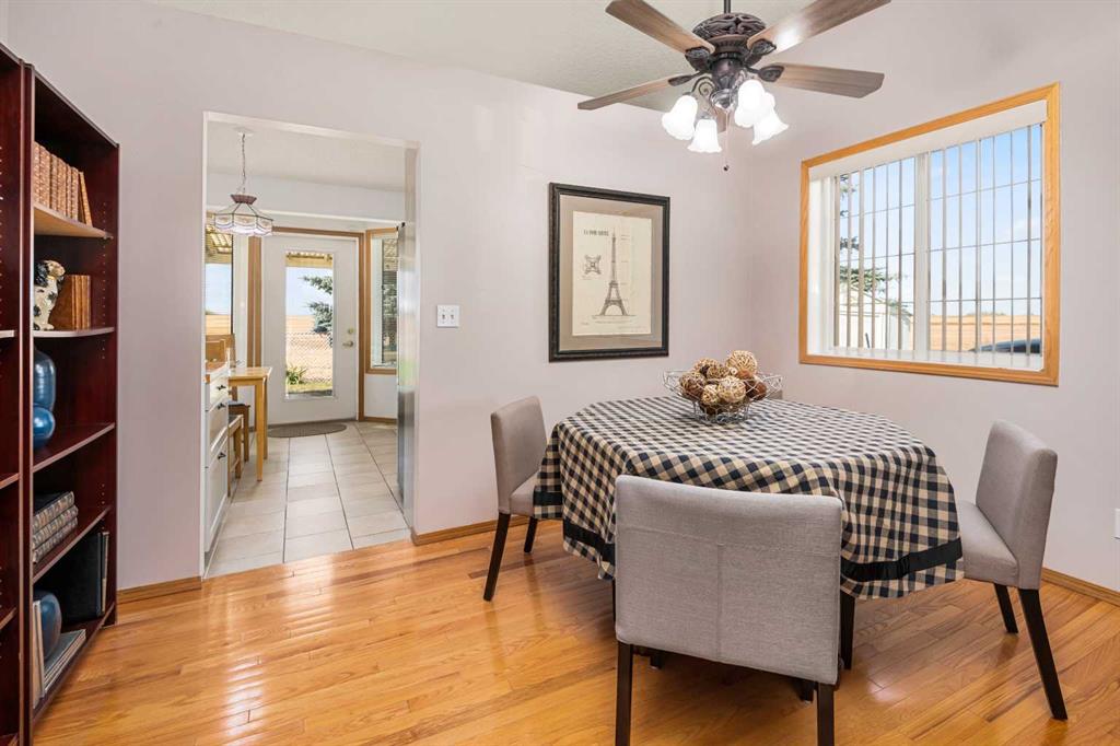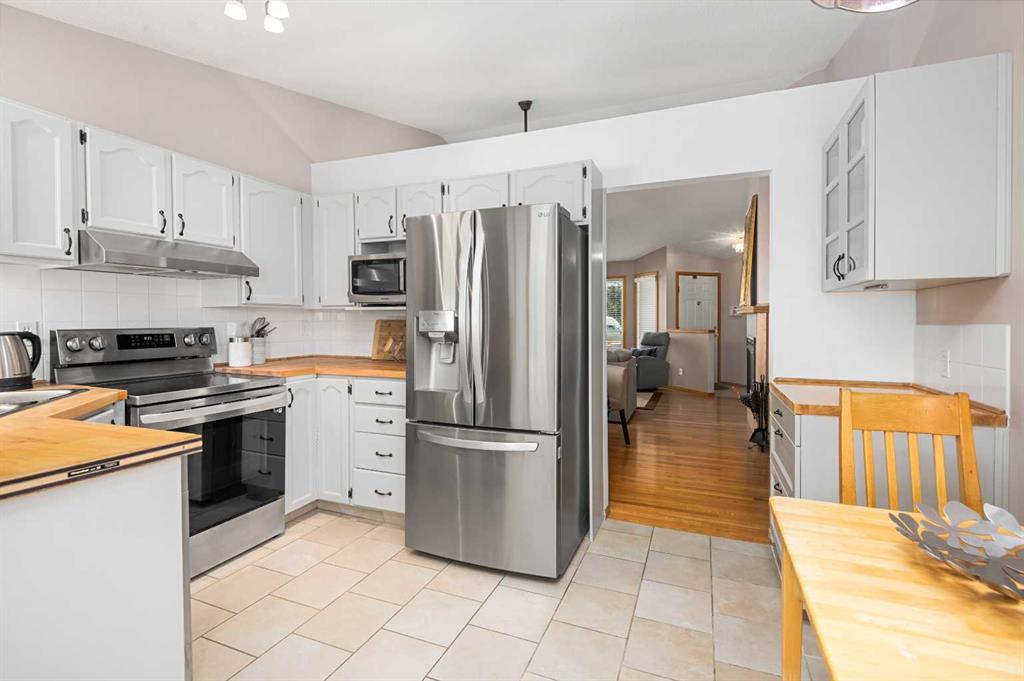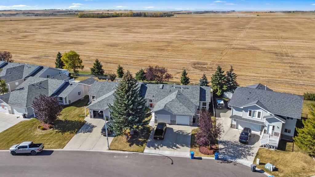 Welcome to this beautifully maintained bungalow villa, positioned to enjoy sweeping prairie and mountain views. You’ll be greeted by a bright, inviting living and dining area with vaulted ceilings and a cozy gas fireplace, filled with natural light. The kitchen features a butcher block countertop, ceramic tile flooring, and newer appliances, including a ThinkQ electric stove with convection oven and a refrigerator. Extend your living space outdoors to a covered pergola with a natural gas hookup—an ideal spot to unwind and soak in the surroundings. The main floor is designed for easy living, boasting original oak hardwood floors, fresh paint (2024), and updated lighting. The spacious primary bedroom offers a true retreat, while the second bedroom is currently used as an office with direct access to the garage. A modern main-floor bathroom with a large walk-in shower and a convenient powder room with stacking washer/dryer complete the level. The backyard, with patio and pergola, is a peaceful, sunny space to embrace the views of the mountains. You will love this unique location backing on to green space. There are garden plots for anyone wishing to exercise their green thumb. Downstairs, you’ll find a generous recreation room, a hobby area, ample storage, and an additional three-piece bathroom. This thoughtfully updated 55+ villa has seen improvements such as a new Air Ease furnace and hot water tank (2023), complete removal of Poly-B plumbing, updated main-floor bathrooms, and new eaves. Pride of ownership shines in this self-managed, mature living complex—move-in ready and waiting for you to call it home.
