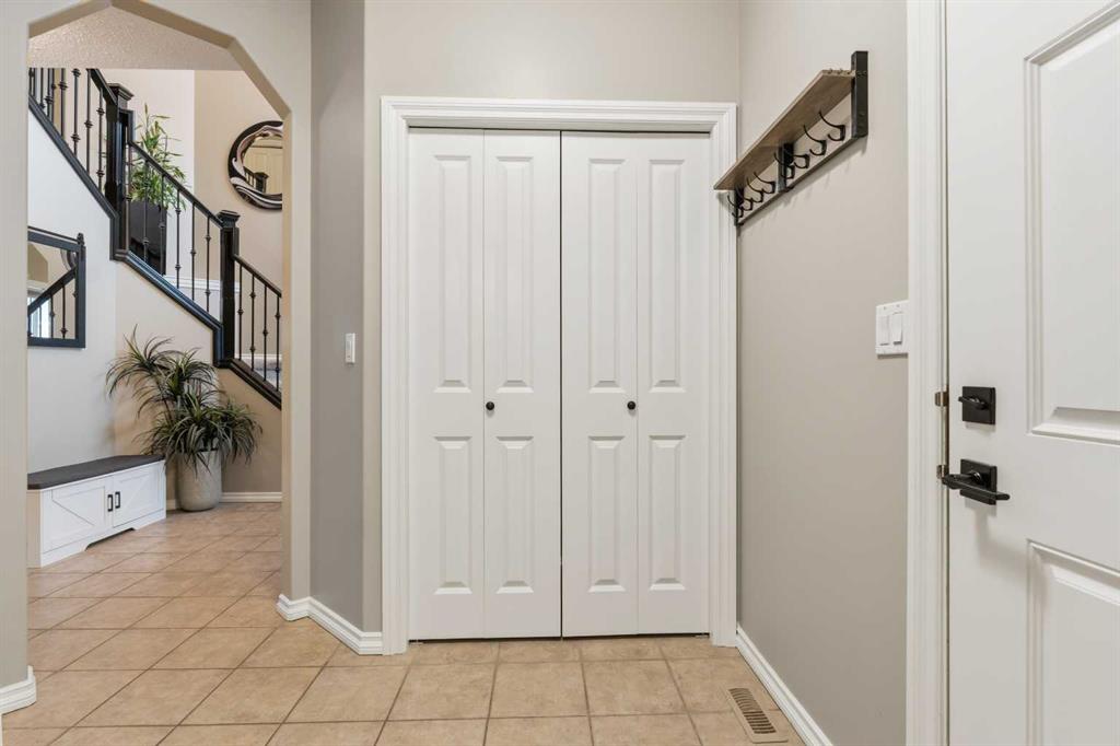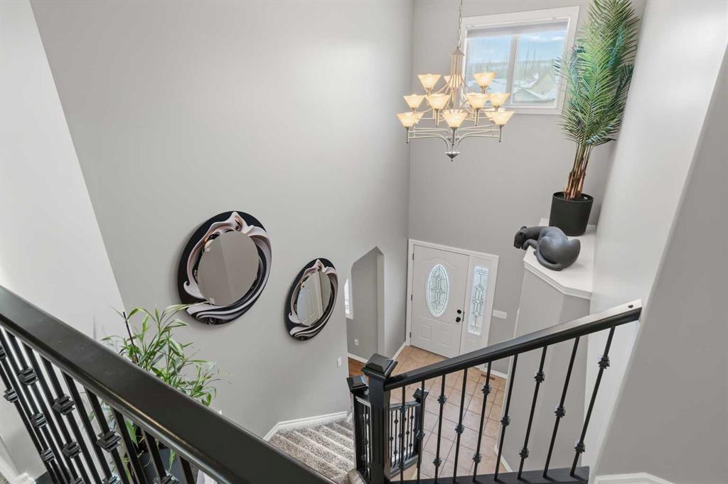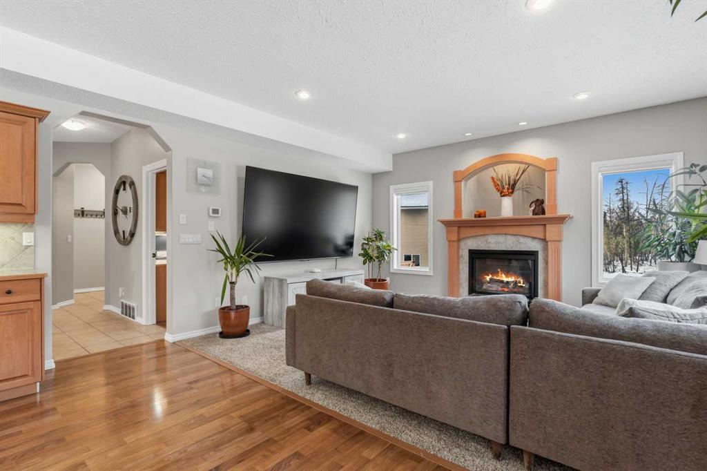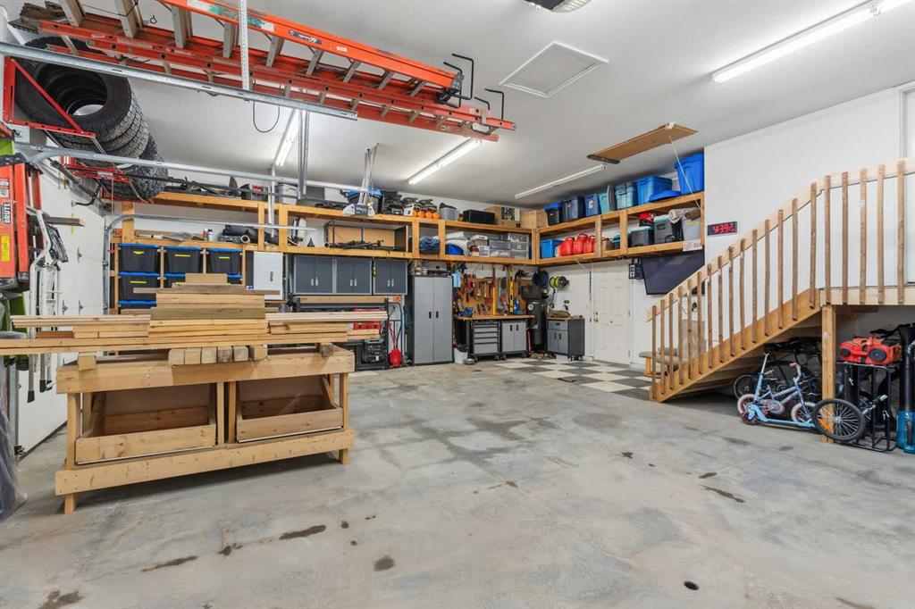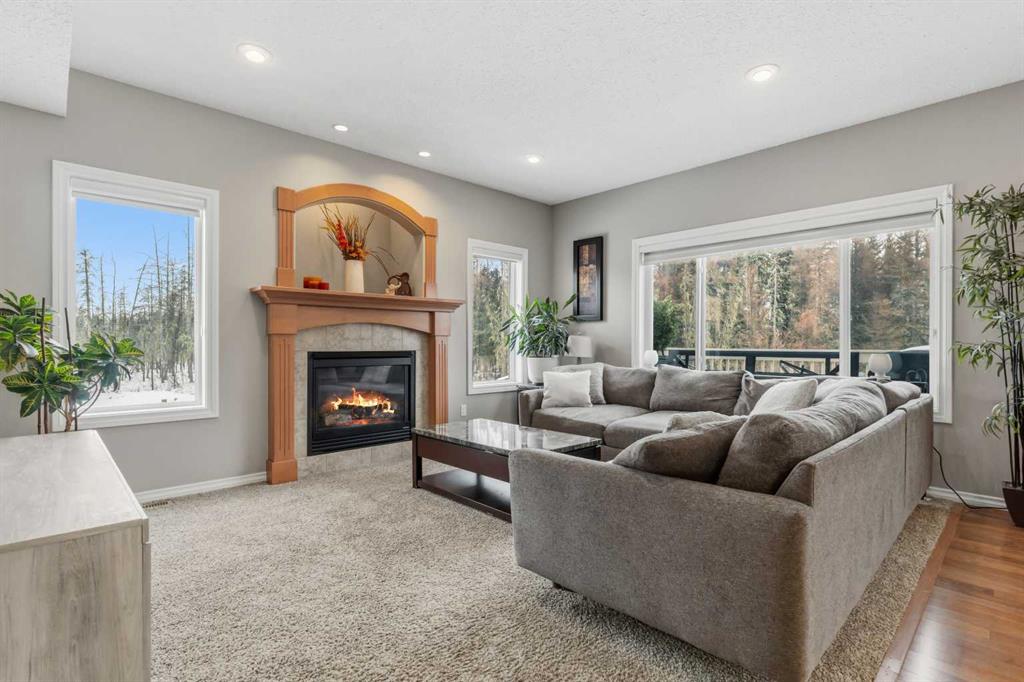 Welcome to this incredible 6-bedroom family home situated on a private 0.29-acre cul-de-sac lot, featuring a charming front porch and a prime location next to walking trails with no neighbours behind for a park-like feel in your fully fenced yard. Offering over 3,500 square feet of total living space, including a basement finished by the original builder for consistent quality throughout, this home impresses from the moment you step into the grand, high-ceiling entryway. The main floor flows from a formal dining room into a massive, 34-foot wide open-concept space where the living room complete with a gas fireplace and large windows meets a kitchen equipped with an island, extra wall cabinetry, and a pantry with solid shelving. A main-floor office with matching built-in cabinets and a convenient half-bath near the garage entrance. Upstairs, you’ll find three bedrooms, all with walk-in closets and a super convenient laundry room. The primary suite overlooks the yard and features a 4-piece ensuite with an extra-long counter, corner tub, and a walk-in closet with custom shelving (note: the third bedroom is currently a custom closet but can be easily converted back). The 9-foot ceiling basement adds three more bedrooms, one currently used as a gym. Large family room for movie nights or games. The mechanical highlights are featuring a forced-air furnace with an actuator for dual-floor temperature control, A/C, and in-floor heating in both the basement and the massive 32' x 29' garage. This dream garage boasts 12-foot ceilings, 220-amp wiring, high-wall storage, and a flip-down ladder for attic access, all fronted by a nearly 45-foot driveway for ample parking.