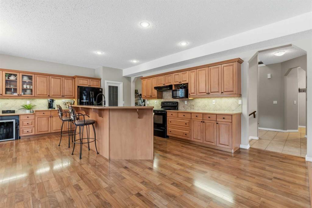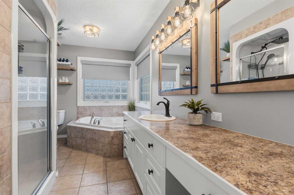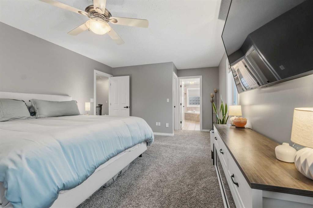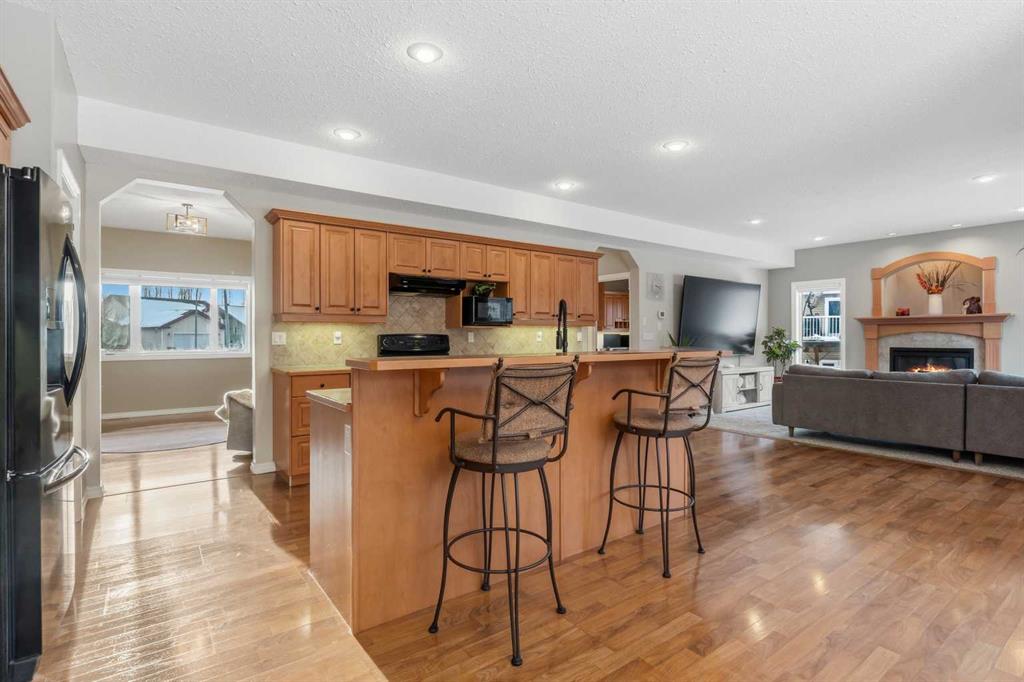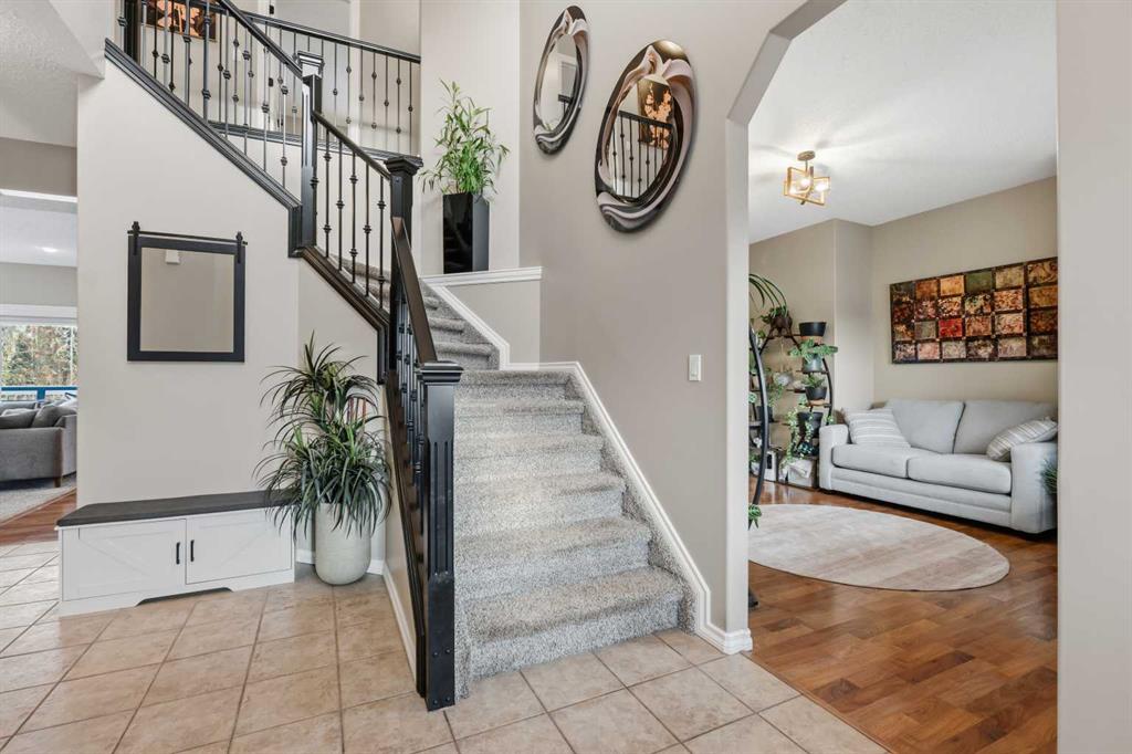 Welcome to this incredible 6-bedroom family home situated on a private 0.29-acre cul-de-sac lot, featuring a charming front porch and a prime location next to walking trails with no neighbours behind for a park-like feel in your fully fenced yard. Offering over 3,500 square feet of total living space, including a basement finished by the original builder for consistent quality throughout, this home impresses from the moment you step into the grand, high-ceiling entryway. The main floor flows from a formal dining room into a massive, 34-foot wide open-concept space where the living room complete with a gas fireplace and large windows meets a kitchen equipped with an island, extra wall cabinetry, and a pantry with solid shelving. A main-floor office with matching built-in cabinets and a convenient half-bath near the garage entrance. Upstairs, you’ll find three bedrooms, all with walk-in closets and a super convenient laundry room. The primary suite overlooks the yard and features a 4-piece ensuite with an extra-long counter, corner tub, and a walk-in closet with custom shelving (note: the third bedroom is currently a custom closet but can be easily converted back). The 9-foot ceiling basement adds three more bedrooms, one currently used as a gym. Large family room for movie nights or games. The mechanical highlights are featuring a forced-air furnace with an actuator for dual-floor temperature control, A/C, and in-floor heating in both the basement and the massive 32' x 29' garage. This dream garage boasts 12-foot ceilings, 220-amp wiring, high-wall storage, and a flip-down ladder for attic access, all fronted by a nearly 45-foot driveway for ample parking.