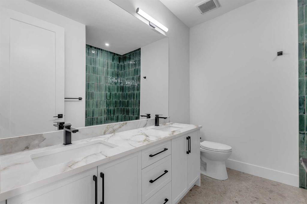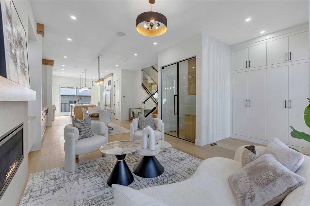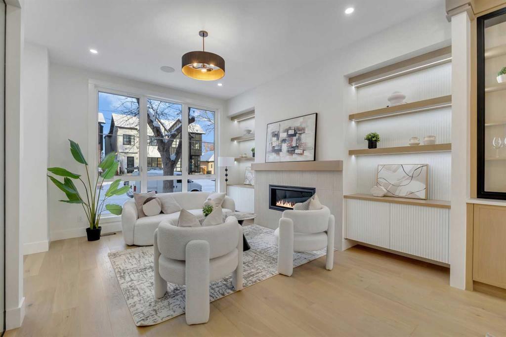 This MOVE-IN READY semi-detached home in MOUNT PLEASANT delivers that rare mix of thoughtful design, modern luxury, and everyday comfort. Wide-plank hardwood, custom built-ins, and oversized windows set the tone, and the open flow through the main floor makes the home feel both expansive and incredibly functional. You enter through a spacious foyer with a full front closet and sightlines straight through to the living room. An OFFICE sits just off the entry, tucked away enough for privacy while still connected to the main level. The living room sits at the front with a gorgeous feature fireplace and built-in shelving that brings a clean, designer feel to the space. Large windows open to mature street trees, giving the room a soft, natural backdrop. The dining area sits comfortably between the living room and kitchen, sized for hosting without feeling overly formal, with an incredible custom built-in full wall serving space with decorative storage and stunning inset lighting. The kitchen is where everything really comes together. Full-height custom cabinetry, quartz counters, designer lighting, and a HIGH-END APPLIANCE PACKAGE & POT FILLER make the room feel elevated yet approachable. A massive island with seating keeps the space social, and sliding glass doors to the SOUTH back patio fill the space with natural light and make indoor & outdoor entertaining a breeze! Just off the kitchen, the MUDROOM includes custom storage and easy access to the backyard and garage, keeping daily life organized. A stylish 2-piece bath completes the main floor. Upstairs, the PRIMARY SUITE feels like a true retreat, bright and spacious with room for a full furniture layout, while the walk-in closet is neatly designed for maximum usability. The ensuite delivers a spa-like feel with a large designer soaker tub, dual sinks, and an oversized walk-in shower. Two additional bedrooms sit across the hall, each with great closet space and large windows. The main 5-piece bathroom features dual sinks and modern finishes, making it ideal for a busy household. A full laundry room on this level adds convenience and extra storage. The lower level offers even more flexibility with an EXTENDED BASEMENT LEGAL SUITE w/ 3-BED, 2-BATH. With a full KITCHEN, large rec room, 3 bedrooms, 2 bathrooms, laundry & plenty of storage, this level opens the door to multigenerational living, long-term guests, or additional rental income. The layout is practical, the rooms are well-sized, and the finishes are clean & modern. And the location ties it all together. You’re in the heart of a walkable, established community surrounded by tree-lined streets. Confederation Park, Kensington, and the downtown core are all within easy reach. Quick access to 14th Street, Crowchild Trail & major transit routes makes commuting simple, while nearby cafes, local restaurants, playgrounds, and green spaces create that everyday convenience everyone’s looking for. *photos from show suite some finishes may vary