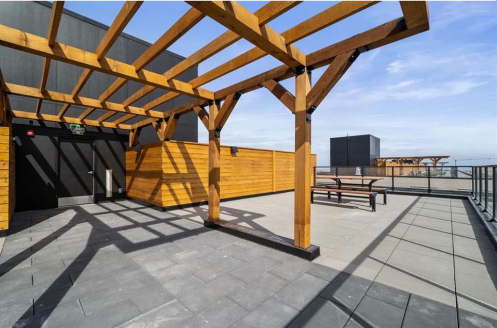 Nestled in the heart of West District, Mondrian offers the perfect blend of comfort, style, and practicality—ideal for those who appreciate the simplicity and convenience of urban living. Thoughtfully designed, this intimate yet efficient home maximizes space while maintaining a warm and inviting atmosphere. As you step inside, the open-concept layout creates an airy feel, with a functional and stylish kitchen at its heart. Featuring premium appliances, including an integrated refrigerator, gas range, and built-in microwave, it’s perfect for preparing meals in the comfort of your own home. The living area extends seamlessly to a private patio, offering a peaceful retreat for morning coffee or evening relaxation. The two bedrooms provide a restful escape, designed for both comfort and tranquility. Additional conveniences include in-suite laundry, air conditioning, and window coverings throughout, ensuring everyday ease. The unit also includes one underground parking stall. Beyond your private space, Mondrian elevates the living experience with its rooftop terrace, where you can unwind in the seating areas while taking in views of the vibrant West District. Whether enjoying a quiet moment or gathering with friends, this space is perfect for every occasion. Ideally located just steps from trendy shops, dining, and green spaces, Mondrian offers unparalleled convenience in one of Calgary’s most desirable neighbourhoods. Move-in ready, this cozy residence is waiting for you to call it home.