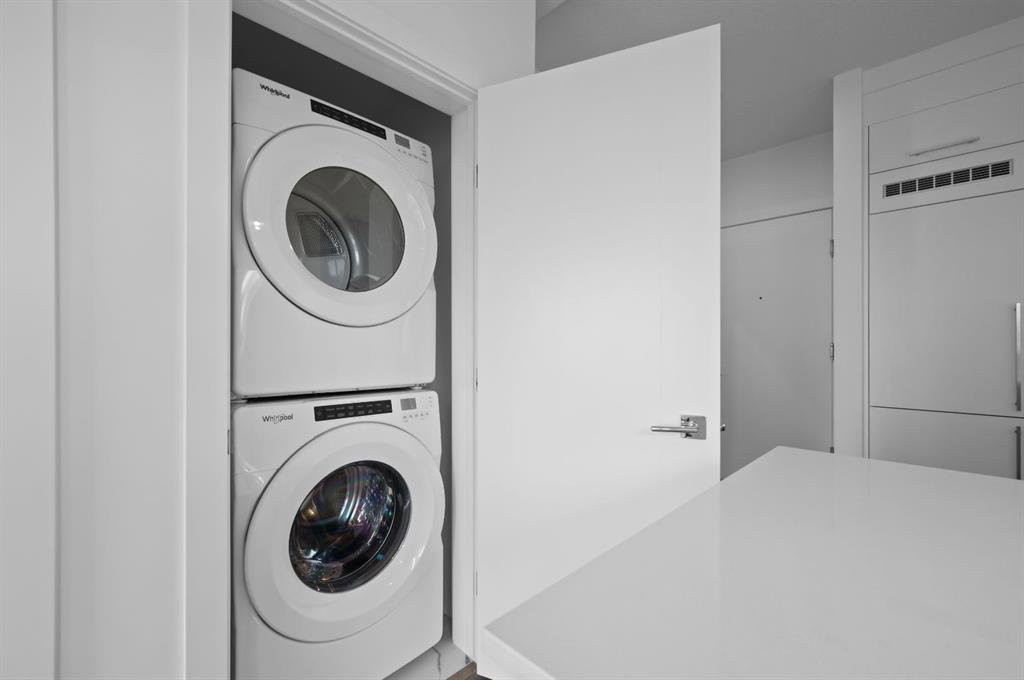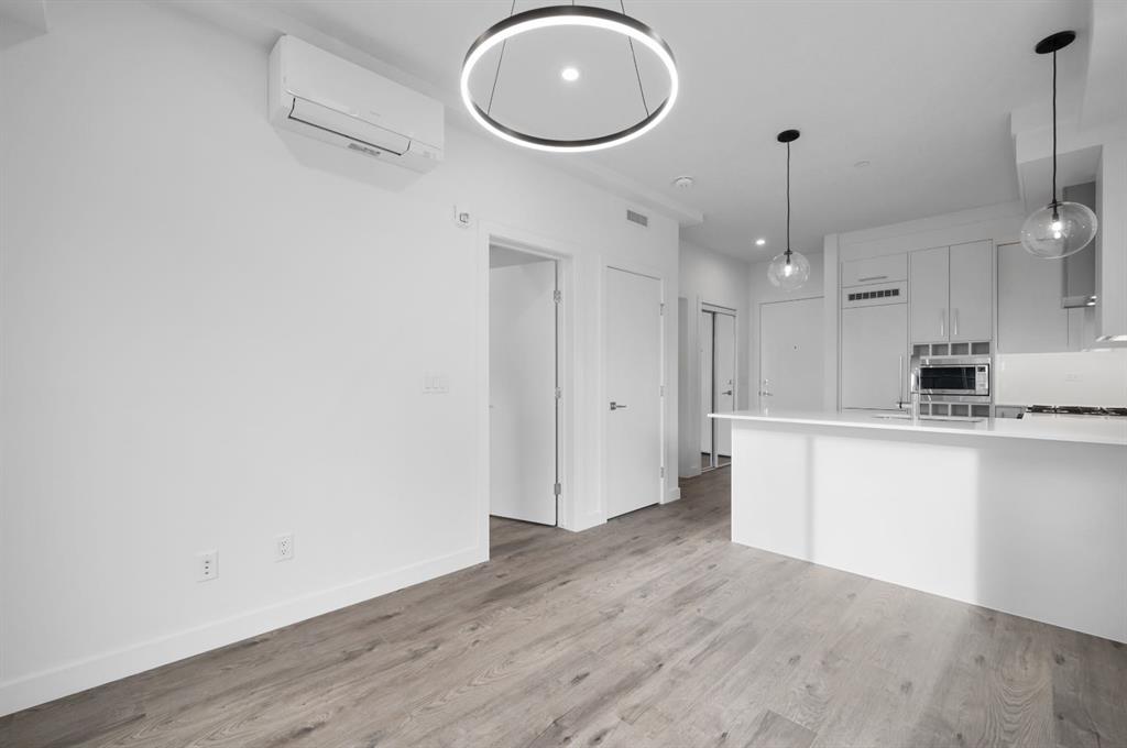 Mondrian, a distinguished condominium residence situated in the heart of Calgary's acclaimed West District master-planned community. This sophisticated one-bedroom, one-bathroom suite embodies contemporary urban living through its sleek, open-concept layout and premium finishes, thoughtfully designed to complement modern lifestyles. The generous living area seamlessly connects to a fully equipped kitchen with high-quality appliances, ideal for both everyday convenience and effortless entertaining. A spacious balcony extends the interior living space outdoors, offering an inviting setting for morning coffee or evening relaxation with panoramic views. The bedroom provides a serene private retreat, while the elegantly appointed bathroom strikes an optimal balance of style and practicality. The residence includes a titled underground parking stall, ensuring secure and convenient vehicle access. Residents can enjoy relaxation and social gatherings in a beautifully appointed outdoor rooftop terrace, featuring exceptional vistas and welcoming communal spaces. Strategically located steps from an array of shops, services, and the vibrant Radio Park, this home delivers exceptional convenience within a dynamic, thriving neighbourhood. Seize the opportunity to reside in one of Calgary's most desirable urban communities. Live Better. Live Truman.®