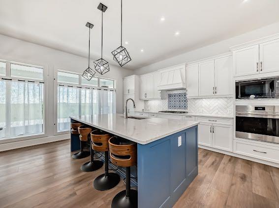 Room for Everyone—And Then Some. Unique Heated Bonus Space + 7 Bedrooms in Harmony. And energy efficient too! This is more than just a luxury home—it’s built for real family living, with over 5,300 sq. ft. of total usable space, including a rare 700 sq. ft. heated bonus area tucked beneath the garage. Whether you envision a home gym, workshop, hobby zone, or simply loads of extra storage, this flexible heated space gives you options you won’t find elsewhere. This 7-bedroom, 4-bathroom custom-built home offers thoughtful design throughout: a vaulted bonus room above the triple garage, 10’ ceilings on the main and basement levels, 9’ upstairs, and elegant quartz surfaces everywhere. The chef’s kitchen features a Wolf gas range, Sub-Zero fridge, spice kitchen, warming and cooling drawers, and custom hood fan—perfect for family dinners or entertaining friends. The primary bedroom offers a peaceful retreat with a vaulted ceiling, spa-style ensuite (heated floors, air jet tub, large walk-in shower), and a generous walk-in closet. The finished basement includes a large rec room with a wet bar, 3 bedrooms, and a full bath—ideal for teens, guests, or multi-generational living. Energy-efficient features like extra insulation, AeroBarrier sealing, and air source heat pumps make this home as smart as it is beautiful. Pre-wired for security, EV, internet, and solar. Located in Harmony, with a unobstructed view toward the mountains and easy access to lakes, parks, and golf. A rare chance to own a truly flexible, future-ready family home.
