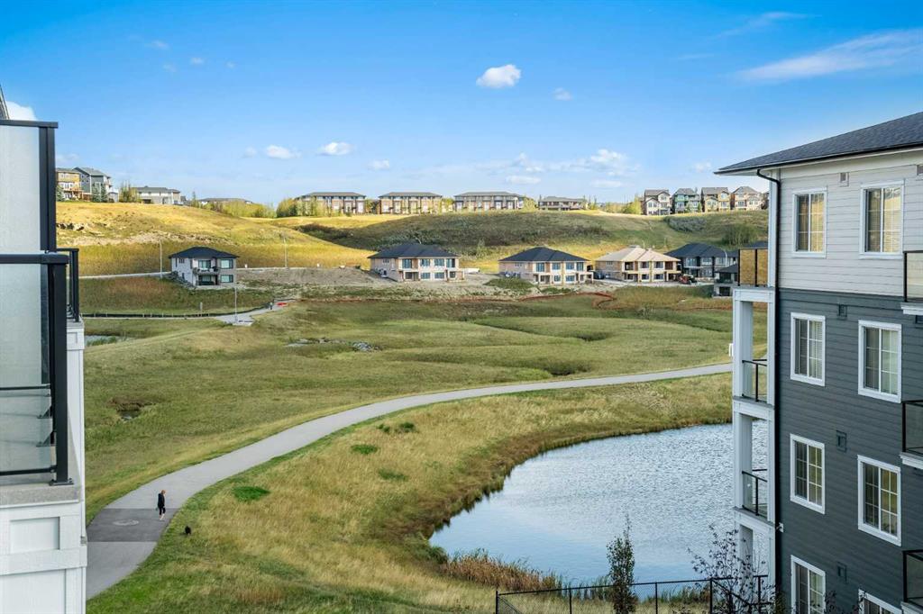 This bright and sunny south-facing 656 sq.ft. (RMS) top floor condo offers a well designed 2 bed + 2 bath layout with an open concept living space filled with natural sunlight. Walking in you are greeted with the functional kitchen which features quartz countertops, full stainless steel appliance package and cabinets galore. The kitchen center leaves plenty of room for a proper dining room table to gather for a meal or view the balcony for an evening sunset. The spacious balcony is perfect for relaxing or entertaining and includes a BBQ gas line. The unit's 9-foot ceilings enhance the open concept, with bedrooms on each end of the layout providing privacy, perfect for roommates, or a WFH office. In suite laundry, a titled underground parking stall and a dedicated storage space are also included with this unit. The primary bedroom includes a functional walk-through closet and 3-piece ensuite including stand up shower. Sage Hill Park II backs directly onto ponds and beautiful green space with a scenic bike path. This unit offers a peaceful setting while remaining close to everything, steps to shopping and amenities located at Sage Hill Crossing, and just minutes to Sarcee Trail & Beacon Hill Centre. Easy access to Stoney Trail ensures a quick and convenient commute anywhere! Call your favourite realtor for a private showing today!