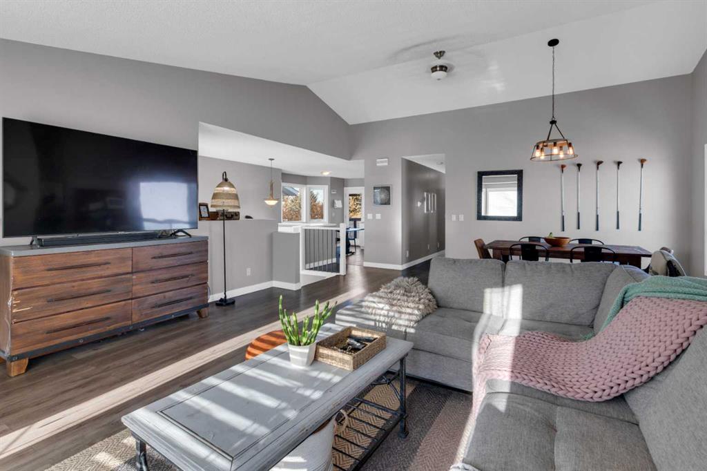 HOME SWEET HOME! Welcome to EXCEPTIONAL VALUE in the heart of Okotoks in this fully finished WALKOUT HOME offering 4 bedrooms, 2 bathrooms and a double attached garage on a spacious lot on a quiet street. Stepping inside you will fall in love with the open concept and immaculately maintained floorplan offering a spacious foyer, modern laminate flooring and upstairs is where you will find the vaulted ceilings, expansive windows, and an effortless flow designed for everyday living and entertaining alike. The updated kitchen offers ample cabinetry, generous counter space, and a large dining area with direct access to a raised deck, ideal for summer BBQs or quiet mornings outdoors. The primary bedroom is a true retreat, comfortably fitting a king-sized bed and featuring a 4-piece spa-like ensuite bathroom filled with natural light. A second bedroom and full bathroom with tub complete this level. Downstairs, the FULLY DEVELOPED WALKOUT BASEMENT sets this home apart. Large windows flood the space with light, while a cozy gas fireplace creates the perfect spot for movie nights, a games area, or even a home-based business setup. Two more great-sized bedrooms, laundry/utility room, garage access, and excellent storage complete this versatile lower level. Step outside to enjoy a beautifully landscaped, private backyard with mature trees, a concrete and brick patio with pergola, and a fully fenced yard providing you with your own peaceful oasis. NOTABLE UPGRADES include updated electrical, new GFI outlets, hard-wired smoke and carbon monoxide alarms, new garage door, poly-b removed, shingles (2019), Hot water (2019) and air conditioning, offering comfort and peace of mind. Located a quick drive to Calgary and within walking distance to Big Rock School, the Okotoks Library, the Sheep River pathways, parks, and everyday amenities, this home delivers the lifestyle Okotoks is known for: nature, community, and convenience all at your doorstep. Don’t miss out, book your private tour of this GEM today!