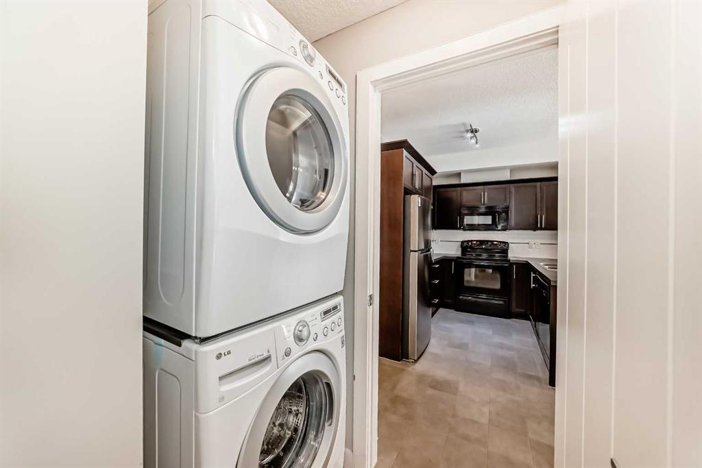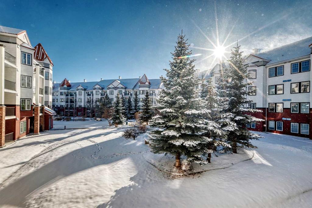 Located in the sought-after Red Haus complex in Royal Oak, this well-appointed one-bedroom condo offers comfortable, low-maintenance living in a highly convenient NW Calgary location. With easy access to shopping, dining, schools, the Rocky Ridge YMCA, C-Train service, and major roadways including Stoney Trail, everything you need is close at hand. Set on the second level, this open-concept home overlooks the attractively landscaped inner courtyard and features a private balcony with a natural gas hookup, perfect for outdoor cooking or relaxing. The kitchen is thoughtfully designed with stainless steel appliances (brand new fridge), generous cabinet and counter space, and a breakfast bar that connects effortlessly to the living area, creating a welcoming space for both everyday living and entertaining. A built-in desk area adds functionality and works perfectly as a home office or study nook. The bedroom is spacious and includes a walk-through closet that leads directly to the four-piece bathroom, where the in-suite washer and dryer are conveniently located. The unit also comes complete with titled underground parking, a titled storage locker, bike storage, and ample visitor parking. Residents enjoy access to shared amenities housed in the central clubhouse, including a fitness centre, a multi-purpose meeting room with kitchen facilities, and an outdoor patio area. This is a great opportunity to own in a well-run condo complex within one of NW Calgary’s most desirable communities.