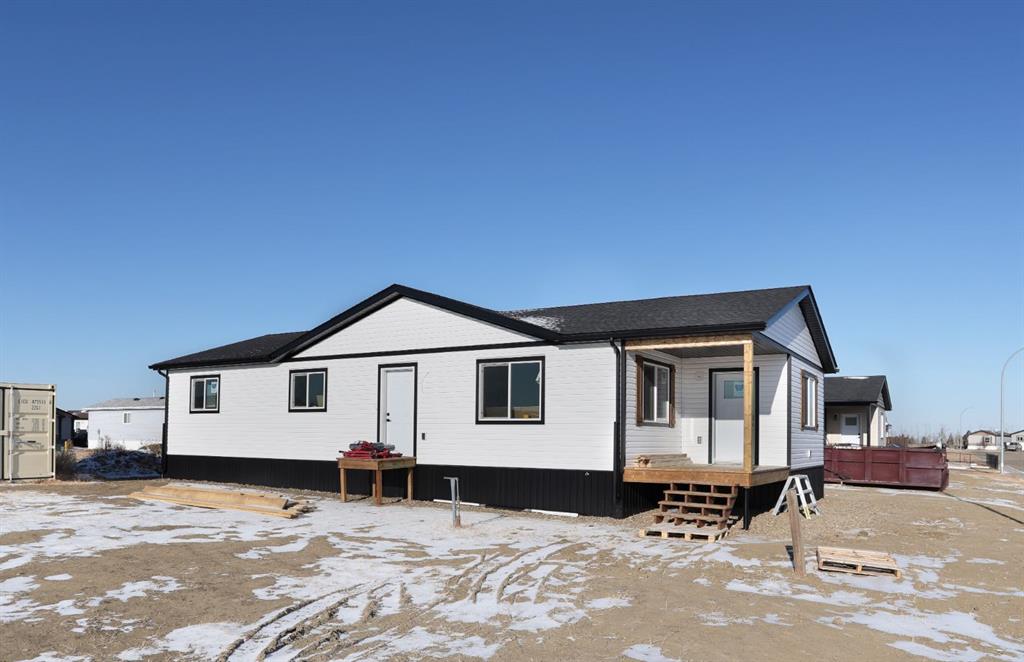 This upcoming NEW HOME offers a great opportunity to secure a thoughtfully designed property before completion. With an estimated completion timeline of approximately 6 to 8 weeks. A modern farmhouse aesthetic is planned throughout. Featuring vaulted ceilings and a bright open concept design that creates a spacious and welcoming feel. Vinyl plank flooring will run throughout the main living areas, with carpeted bedrooms for added comfort. The kitchen is designed to be a standout, featuring sleek white cabinetry, a farmhouse style butcher block island, and black lighting and hardware that bring modern warmth. This home will offer three bedrooms and two full bathrooms, including a primary suite complete with a walk in closet and a four piece ensuite. Large vinyl windows are planned throughout the home to maximize natural light and enhance the open, airy atmosphere. Once complete, the home will include a fridge, stove, dishwasher, washer, and dryer, making it move in ready upon possession. A side entrance will lead to a convenient closet and a combined utility and laundry room with additional storage. Exterior features will include a covered front porch, a parking pad and a finished yard with sod providing a great outdoor space. Ideal for first time buyers, investors, or those looking to downsize without compromising on quality, this is a great chance to secure a brand new home. Reach out for more details and let’s get you moving early on this one!