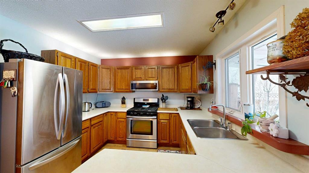 This inviting home offers timeless curb appeal with a charming stone wall and archway, mature trees, and a welcoming front entry. Inside, the home features three comfortable bedrooms and 2½ bathrooms, a spacious living room filled with natural light, and a cozy family room perfect for relaxing evenings or casual gatherings. The lower level includes a convenient laundry area and a walk-out to the backyard, seamlessly connecting indoor and outdoor living. The mature yard provides privacy and space to enjoy in every season, while the oversized double garage offers plenty of room for vehicles, storage, and hobbies. Ideally located just a block from schools, this home combines comfort, functionality, and an unbeatable family-friendly location.