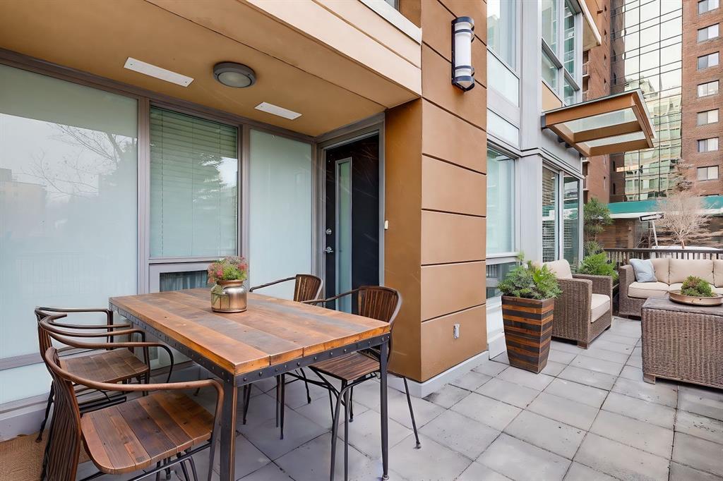 Experience the perfect balance of townhome convenience and condo living in this modern southwest corner residence located within the highly regarded Calla building. Overlooking the park and surrounded by the best of the Beltline community, this home offers a unique blend of lifestyle, design, and practicality. Set in the heart of Beltline — ranked as Avenue Magazine’s #1 community — this property offers exceptional walkability with a Walk Score of 95, placing shopping, dining, Sheldon Chumir Hospital, and public transit just steps from your door. The home features two private entrances and two oversized patios — one measuring 7’2” x 15’4” and the other 11’3” x 23’0”, offering a combined outdoor space of approximately 348 sq. ft.. With one south-facing and one west-facing, they are perfect for outdoor entertaining or relaxing with views of the park. Inside, soaring 18-foot floor-to-ceiling windows flood the living space with natural light from both the south and west, highlighting the open-concept layout and durable laminate flooring throughout the main living areas and bedrooms. The spacious primary suite includes an ensuite bathroom and a Juliet balcony overlooking the park, while the versatile second bedroom with a walk-in closet is ideal as a home office or additional living space. The gourmet kitchen is equipped with a quartz island and ample storage, making it ideal for both meal preparation and entertaining. Everyday living is made easier with in-suite laundry featuring new machines and central air conditioning for year-round comfort. Residents of Calla enjoy a full range of premium amenities including a concierge service, secure building access, a fully equipped fitness centre, yoga studio, sauna/steam room, guest suite, and visitor parking. Secure underground parking and bike storage are included, along with both in-suite storage and a secured locker for additional space. This modern townhome combines the privacy and ease of a standalone residence with the convenience and amenities of a well-managed condominium. Perfectly situated in one of Calgary’s most vibrant inner-city communities, this home is ready to welcome its next owner. Contact us today to schedule your private viewing or learn more about this exceptional property.