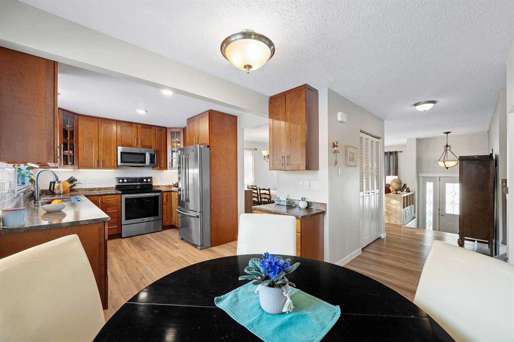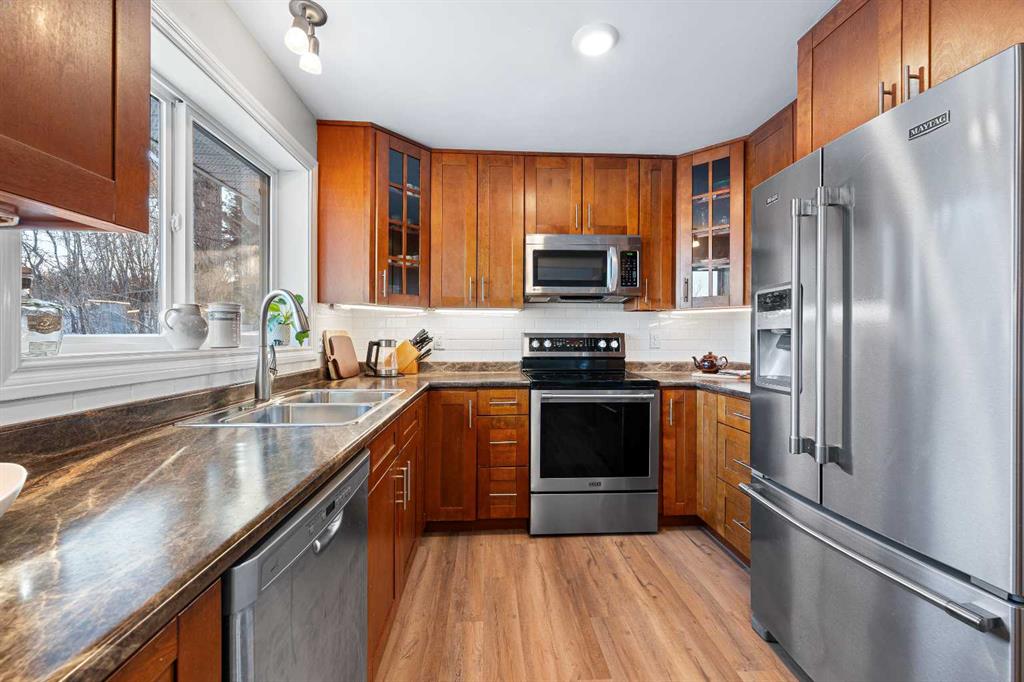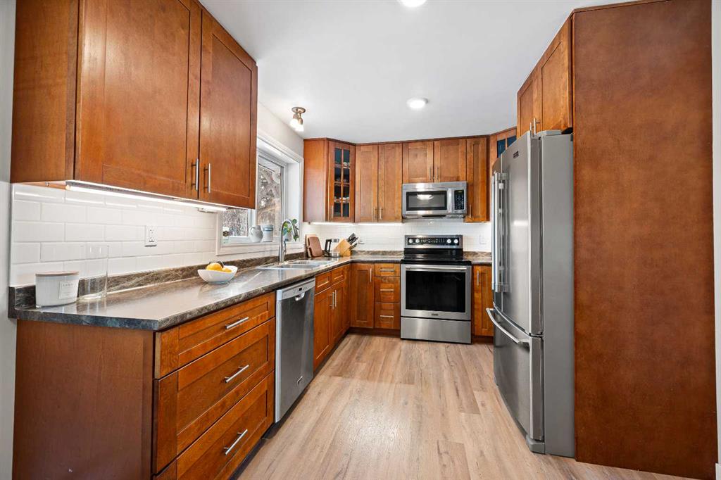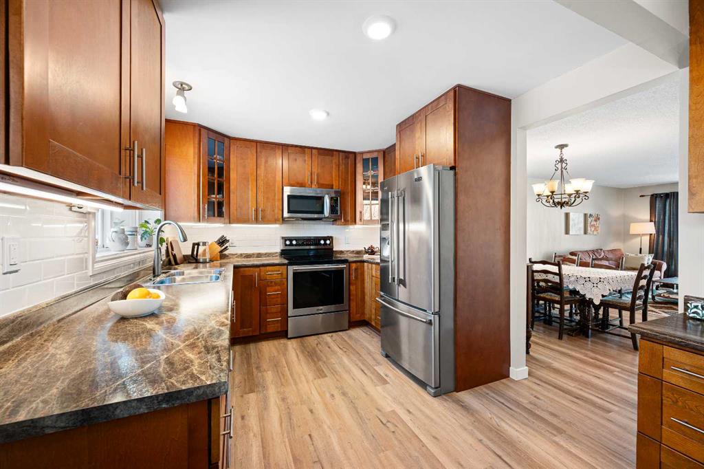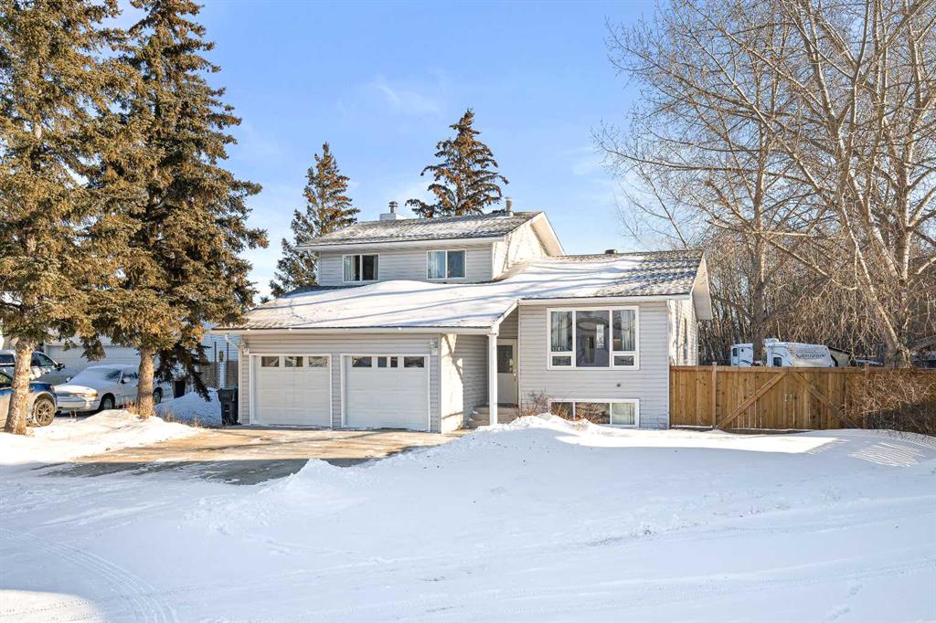 Welcome to this charming family home in the welcoming small-town community of Kitscoty, Alberta. Located at 5205 48 Street, this spacious property offers over 1,700 sq. ft. of living space and sits on one of the largest lots in town. Over the years, this home has been thoughtfully updated to keep it fresh, comfortable, and move-in ready. You’ll notice newer windows throughout, updated flooring completed approximately three years ago, fresh paint, modern light fixtures, renovated bathrooms, and a nicely remodeled kitchen that serves as the heart of the home. Additional updates include a hot water heater replaced approximately two years ago, shingles redone two years ago, and a driveway completed about five years ago. The layout is ideal for family living. Upstairs features three bedrooms and two bathrooms, including a spacious primary bedroom with a beautiful three-piece ensuite and a generous walk-in closet. The home also offers two inviting living rooms and a fully developed lower-level family room, creating plenty of space for kids to play, unwind, and grow. Outside is where this property truly shines. The beautifully landscaped yard is a joy to enjoy in every season — lush and vibrant in the summer with garden space and room to relax, and equally charming in the winter with open views and exceptional privacy. The yard backs onto an open field and treed area, features RV parking in the backyard, and includes an oversized shed that will stay with the property, offering excellent additional storage. Rounding out the home is a spacious double attached garage and a boiler heating system with baseboard heat, providing reliable, comfortable warmth throughout the year. This is a wonderful opportunity for the next family to enjoy space, privacy, and the relaxed lifestyle that small-town living has to offer.