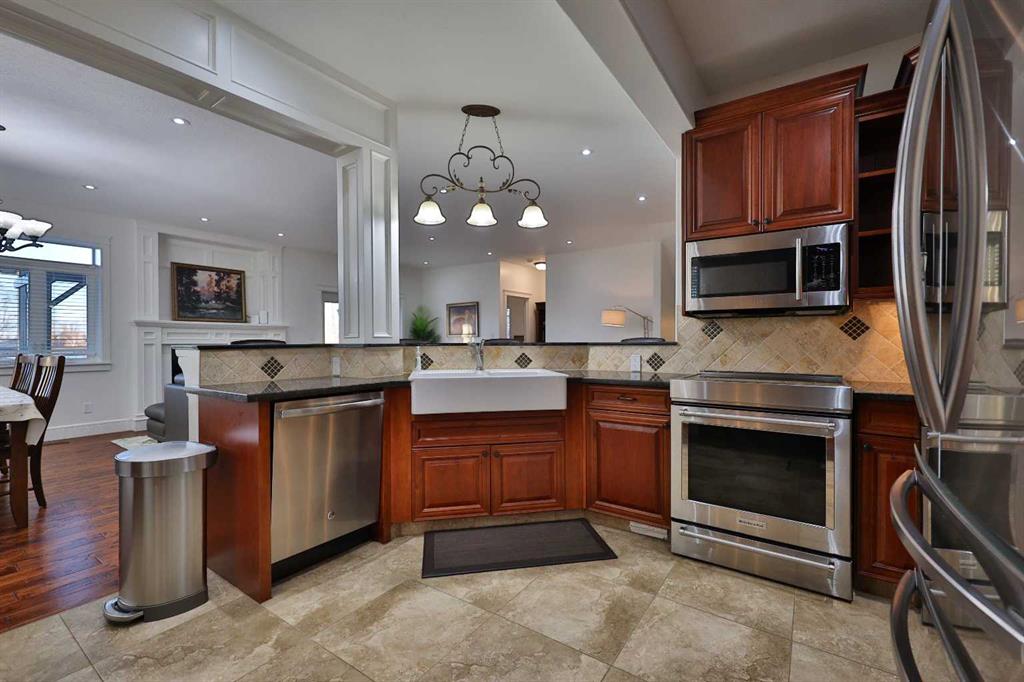 Welcome to this stunning home, located in a highly desirable neighborhood with scenic walking paths, playgrounds, and a nearby lake. Sitting on a large, beautifully landscaped lot, this home offers 5 spacious bedrooms, 3.5 bathrooms, and a triple attached garage, giving your family plenty of space. Step inside and enjoy the bright, open-concept design with high-end finishes throughout. The kitchen is a dream, featuring custom-built cabinets with soft-closing drawers, tile floors, and stainless steel appliances. Whether you're preparing a family meal or entertaining guests, this space is both stylish and practical. Relax by one of the two cozy gas fireplaces—perfect for cooler evenings. With multiple walk in closets everyone will have plenty of storage. The primary suite is a true retreat, featuring custom his-and-hers vanities, a spa-like ensuite, and a large walk-in closet. Downstairs, the fully finished basement is warm and inviting with in-floor heating, making it a great space for entertaining, a home theater, or a play area. The home’s exterior is built with ICF concrete block, providing better insulation, energy efficiency, and soundproofing. Step outside to your spacious deck and enjoy a larger than it seems back yard. The green space behind makes the yard feel even bigger without adding to your maintenance. It’s the perfect spot for summer barbecues, family gatherings, or simply relaxing in the fresh air. With only one previous owner, this well-kept home is a rare find. Don’t miss out—contact your favorite REALTOR® and schedule your private showing today!