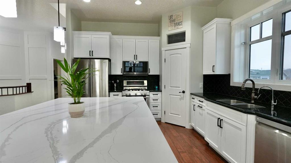 Elegant Custom-Built Bungalow – Refined Living with Family Comfort in Mind! Step into timeless elegance and exceptional quality with this custom-built 1,737 sq ft bungalow, thoughtfully designed to balance luxury, comfort, and functionality. From the ICF construction extending all the way to the roof to the carefully curated finishes throughout, this home exemplifies craftsmanship at its finest. The moment you enter, you’re welcomed by an open-concept main living area bathed in natural light. The gourmet kitchen is a true centerpiece, featuring granite countertops, a showstopping oversized island, rich cabinetry, and a convenient corner pantry—a perfect space for family gatherings or entertaining in style. The dining area offers a graceful setting for everyday meals or special occasions, while the living room, anchored by a warm wood-burning fireplace, invites you to relax and enjoy the cozy ambiance. The primary suite is a serene retreat, offering generous space, a walk-in closet, and a luxurious ensuite with a soothing soaker tub designed for rest and rejuvenation. An additional main-floor bedroom plus a dedicated home office provide versatility for a growing family or those who work from home. Downstairs, the fully finished basement continues the theme of comfort and sophistication. This level features three additional bedrooms, a spa-inspired five-piece bathroom, a den or music room, a TV lounge, and a flex space perfect for a home gym, playroom, or creative studio—adaptable to suit your family’s lifestyle. Outdoors, the attention to detail continues. The private, fully fenced yard is a peaceful haven, complete with low-maintenance composite decking and fencing. The stamped concrete driveway and charming waterfall feature enhance the home’s impressive curb appeal. A double attached garage offers ample space for parking and storage. With thoughtful touches such as air conditioning, high-quality materials, and enduring design, this property offers a rare blend of refined elegance and everyday comfort. A home of this caliber must truly be experienced to be fully appreciated.