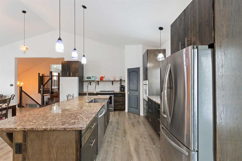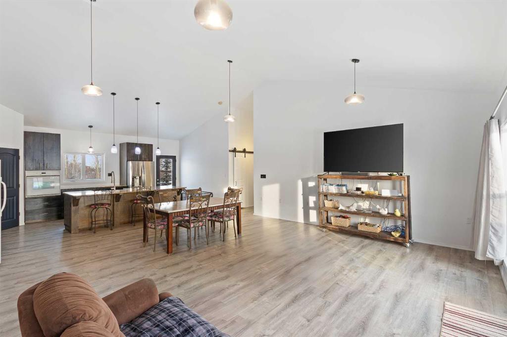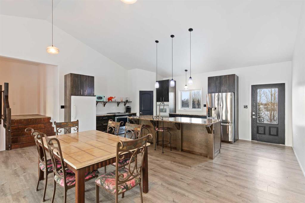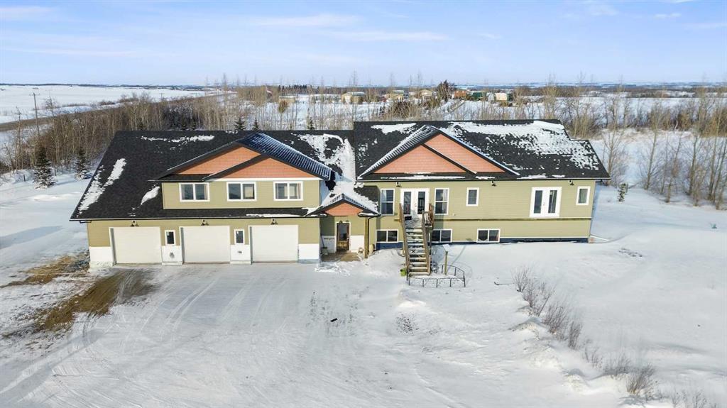 Situated on 10 acres surrounded in trees at 21 Val Lee Road in Northminster Estates just minutes out of Lloyd. This is a unique custom home. This home has a MASSIVE attached garage with infloor heat. There are three single bay doors and a 14 ft door with access to the fourth shop bay. There is a bathroom rough in the garage aswell. There is a massive garden, two dug outs and an orchard that surrounds the home. There is a drilled well and a septic field. This home has ample space with an unfinished basement that boasts large bright windows, there is a full bathroom rough in laundry rough in, spacious living rec room, space for two or three bedrooms if desired, a cold storage room and the utility room that contains a RO system for filtered water for added convenience. As you enter the main you are greeted with ample windows and open concept living with vinyl laminate throughout. There is a large island with quartz counters and custom cabinets. The upper level hosts a spacious flex space, that could be another bedroom, living area or theater space. The main contains a full bathroom, mainfloor laundry two other bedrooms. The primary is massive and has access out to another potential deck space. The walkin closet has vaulted ceilings and built ins. There is a five piece ensuite with a tile shower. This home custom acreage is unique and is one of a kind.