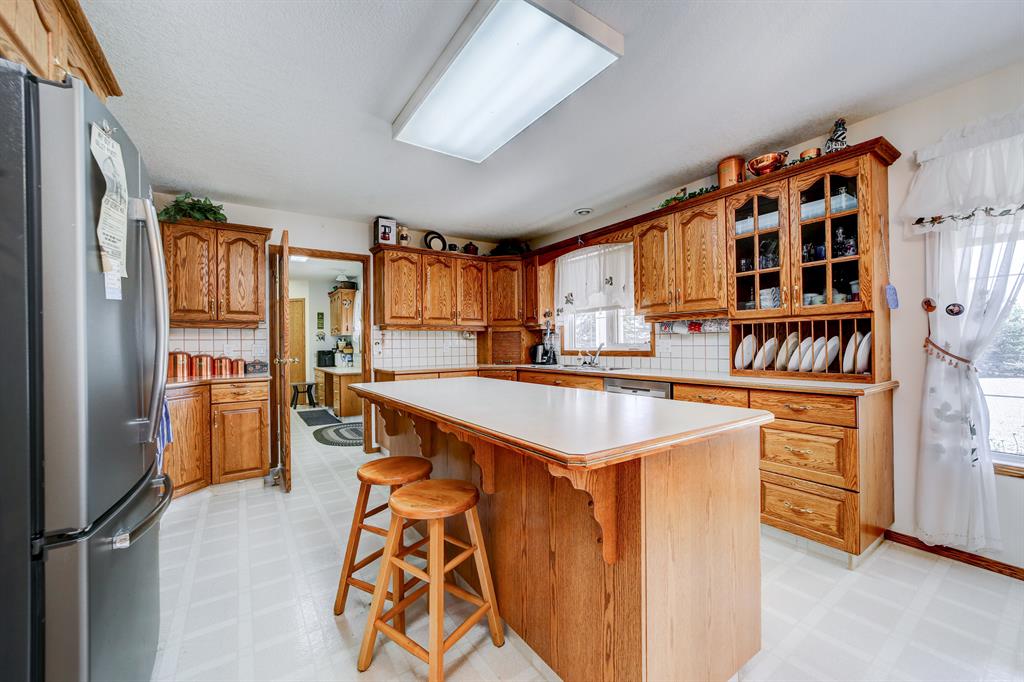 Looking for an acreage with space for the bustling family? Look no further. With over 3,000 square feet, this home will have space for everyone! As you enter the front door, you'll find a formal sitting area to the left, with glass doors and hardwood floors. From there you'll head into the main living room area featuring a grand vaulted ceiling allowing for extra windows that give more natural light, a gas fireplace for cold winter days and a door leading to the north deck. The Kitchen is loaded with cabinets and an island making it the perfect space for preparing your favourite family meals which you'll enjoy in the dining room right off the kitchen. The main floor is finished off with main floor laundry, an abundance of storage closets, a second access to the north deck and of course, access to the double garage that has a bonus storage space with double doors that open for quads, bikes or any toys needing inside storage. Up the spiral staircase to the upper level, you'll find an open space great for kids to play or for the family computer area or even to practise musical instruments that overlooks the living room. There are 2 large bedrooms and a full bathroom as well. In the basement there's still more space yet! The large family room is perfect for the teens to hang out, use as a library area or whatever creative idea sparks you. Relax in the spacious hot tub room that also conveniently has a 3pc bathroom. A theatre or games room would be the perfect use for the other large room also in the basement, the space in this house goes on and on! Hold family gatherings, birthday parties, reunions or the like on the huge lawn that is perfectly treed on the west side of the home. Plus there's irrigation for the trees and lawn too and it's all located just north of Vauxhall on highway 36.