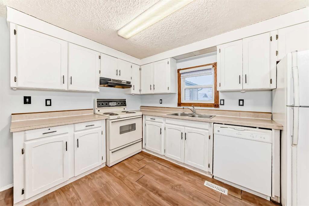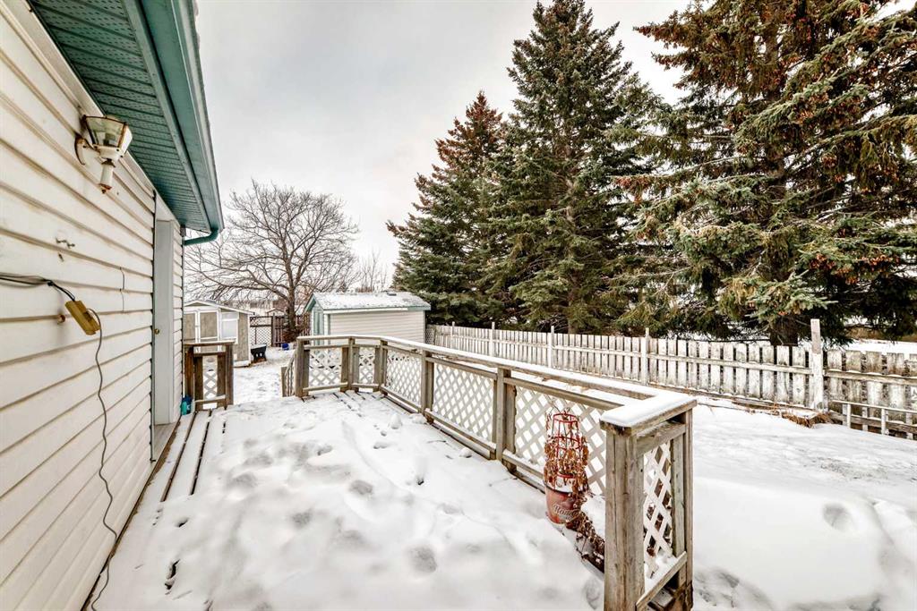 Welcome to this well-maintained, single-level home, ideally located on a quiet street in a friendly small-town setting. With 3 bedrooms and 3 bathrooms, this thoughtfully designed home is perfectly suited for first-time buyers, downsizers, or anyone seeking stair-free living. Upon entry, you’re welcomed by a spacious foyer that opens directly into a large, inviting living room. Down the hall, you’ll find a full 4-piece main bathroom, along with a comfortable primary bedroom complete with a private 2-piece ensuite. An additional well-sized bedroom provides flexibility for guests, family, or a home office. The kitchen is both functional and welcoming, featuring ample cabinetry, built-in storage, and included appliances, making everyday living a breeze. Recent updates include a new dishwasher (2024) and new fridge (2022). Additional built-in storage continues down the hallway, along with a conveniently located dedicated laundry area. One of the standout features of this home is the versatile rear living space. This unique area includes its own private entrance, a large bedroom, a full 4-piece bathroom, and a generous living area. Easily separated by a door near the laundry room, this space is ideal for extended family living. Recent improvements such as new flooring, fresh paint, and a new hot water tank (2024) add to the home’s move-in-ready appeal. Outside, enjoy a spacious, fully fenced backyard, perfect for pets, kids, or outdoor gatherings. Two storage sheds provide excellent additional storage for tools, seasonal items, or hobbies. This well-cared-for home offers comfort, functionality, and flexibility—all in a peaceful, small-town setting.