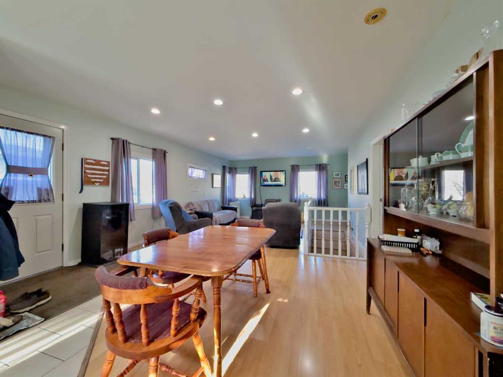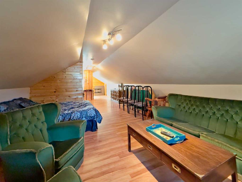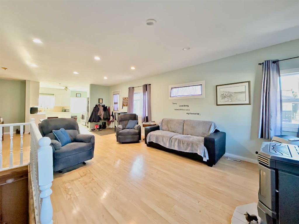 Welcome to this inviting Blairmore home where comfort and mountain-town living come together. The bright, open-concept main floor features a welcoming kitchen, dining, and living space. A pellet stove efficiently warms the main level, creating a cozy atmosphere through the colder seasons. Upstairs, you’ll find a generously sized bedroom with ample room to create additional living or workspace, complemented by a convenient 2-piece bathroom/ensuite and a gas fireplace that adds warmth and character. The full, undeveloped basement provides plenty of storage space, and possibility for further development, with a walk up entrance at the rear of the home. Numerous updates—including vinyl windows, a high-efficiency furnace, and a durable metal roof—add peace of mind and long-term value. Set in a central Blairmore location close to shops, services, and amenities, this property also offers abundant off-street parking and plenty of room for your RV.