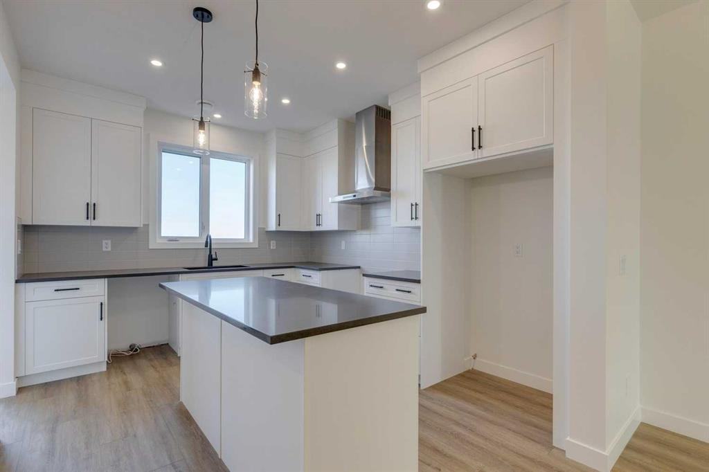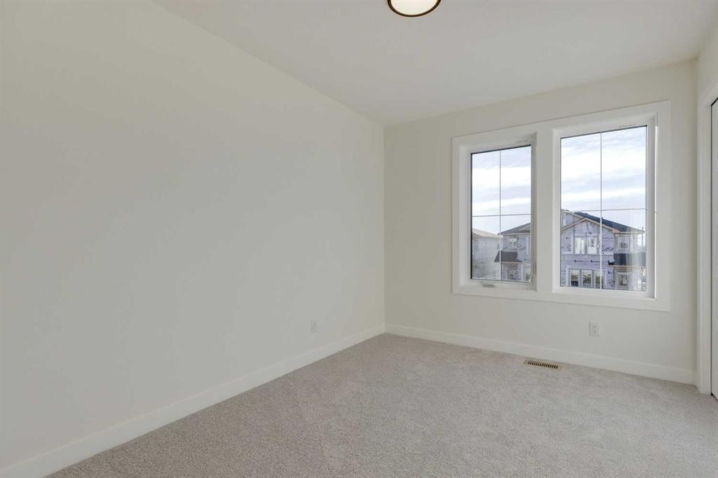 Brand New | Semi-Detached | Built by Broadview Homes | Main Level Office | 1,685 SqFt | Open Floor Plan | High Ceilings | Top of the Line Finishes | Full Height Cabinets | Granite Countertops | Kitchen Island | Pantry | Rear Mud Room | Ample Natural Light | 4 Upper Level Bedrooms | Upper Level Laundry | Legal Suite-Ready Basement (Subject to City Approval) | Side Entry | Laundry & Kitchen Rough-ins | Deck | Rear Gravel Parking Pad | Alley Access. Welcome to the Annex model by Broadview Homes! This brand new, never lived in semi-detached home offers 1,685 sqft of modern, thoughtfully designed living space with quality upgrades throughout. The main floor features an open-concept layout with high ceilings and luxury vinyl plank flooring. At the front of the home, a private office makes the perfect workspace, while a convenient 2-piece powder room adds everyday functionality. At the rear of the home, the modern kitchen overlooks the backyard and features granite countertops, a large island with barstool seating, stainless steel appliances including a gas range, hood fan, and built-in microwave, plus stylish 42” upper cabinets with soffit and crown molding. A bright dining and living area completes the main floor, with access to a rear deck—perfect for summer BBQs (gas line included!). Upstairs, you’ll find 4 spacious bedrooms, all with plush carpeting. The primary bedroom includes a walk-in closet and a 5-piece ensuite with dual vanity, tiled flooring, and a tub/shower combo. The remaining three bedrooms share a well-appointed 4-piece bathroom, and the convenient upper-level laundry is located near all bedrooms. The basement is legal suite-ready (subject to city approval) and includes a separate side entrance, true 9’ ceilings with web joists (no dropped ceilings), second furnace & HRV, and rough-ins for a kitchen sink and laundry room—offering excellent potential for future development or rental income. Additional features include a gel-stained fiberglass front door, tile in bathrooms and laundry, a 200 AMP electrical panel, and a rear parking pad with alley access. A perfect blend of modern design, comfort, and future potential—this move-in ready home is a must-see!
