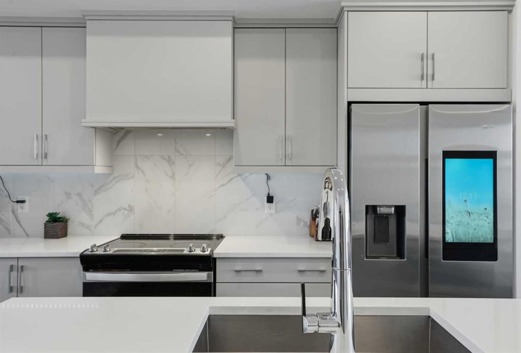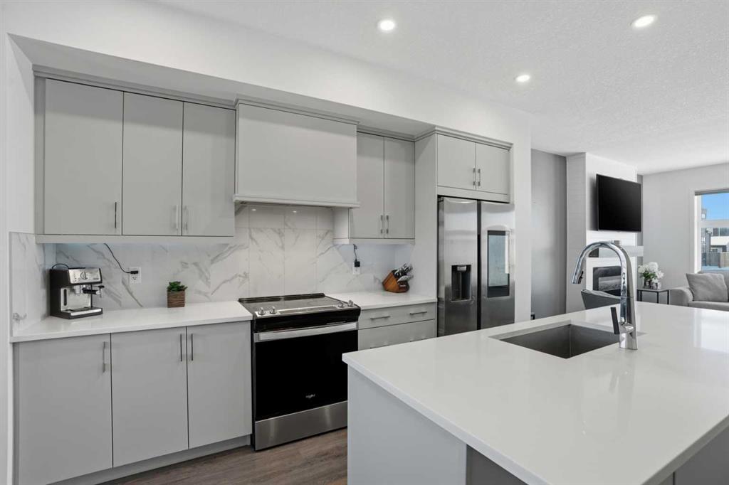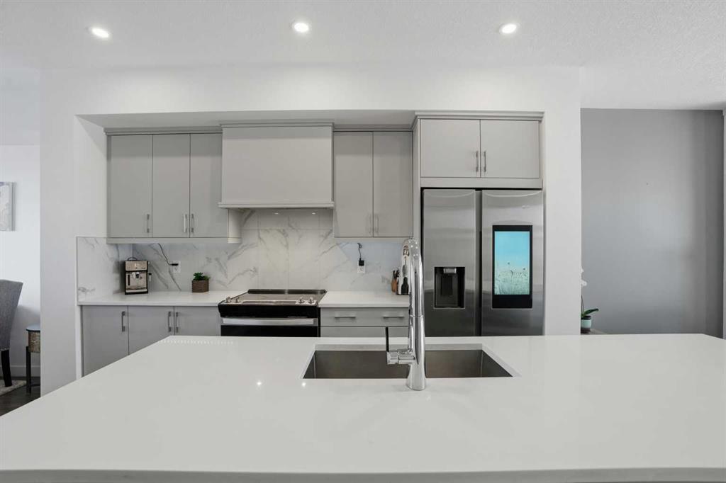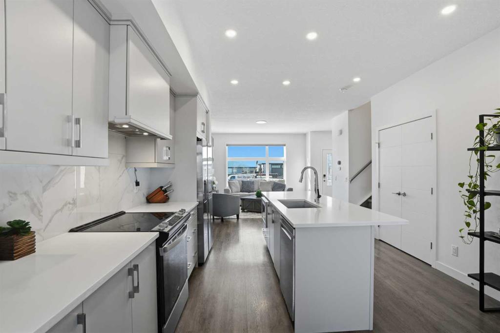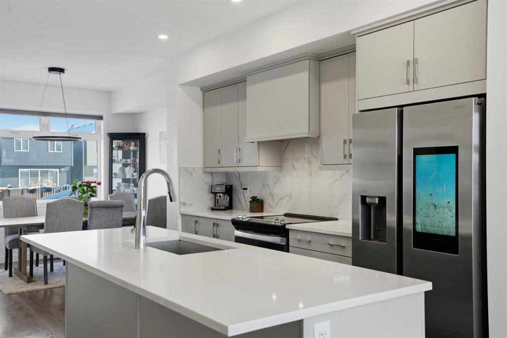 ** No Condo Fee Townhome ** 1,583 SqFt | Finished Basement 698 SqFt | 4 Bedrooms | 3.5 Bathrooms | Gorgeous Modern Finishes | Quartz Countertops | Full Height Kitchen Cabinets | Stainless Steel Appliances | Kitchen Island with Barstool Seating | Pantry | Open Floor Plan | Accent Walls | Large Windows | Incredible Natural Light | Electric Fireplace | 3 Upper Level Bedrooms | Primary Ensuite | Upper Level Laundry | Great Basement Recreation Space | 1 Bedroom & 3pc Bath in Basement | Storage | High Efficiency Furnace | LED Lighting | SMART Home Access | Fully Fenced Backyard | Rear Parking with Alley Access | Location Location Location | 5 Minute Walk to The Block Community Centre Designed for an Enriched Community. Welcome home to the stunning 2-storey family home boasting 2,281 SqFt of developed living space throughout the main, upper & basement levels. This home's designed with both style & comfort in mind! The beautiful modern finishes are spread throughout the home from top to bottom, wide plank flooring, LED lighting, large windows, quartz countertops, smart appliances, smart home, & more! Open the front door to a foyer with great closet storage & views into the bright & welcoming main level. The front living room is framed with large windows that fill the space with natural light, an electric fireplace & a TV ready wall above. The open floor plan makes this the perfect home to host friends & family for engagements. The kitchen is outfitted with full height cabinets, stainless steel appliances, a smart refrigerator, quartz countertops & a centre island with barstool seating space. Across from the island is a pantry great for dry goods storage. The dining room has a large window that overlooks the backyard. The rear of the home has a mud room with additional closet storage & a 2pc bathroom is a beautiful blue mosaic tile. Upstairs holds 3 bedrooms, 2 bathrooms & hall laundry. The primary bedroom has a private 4pc ensuite bath with a tub/shower combo. Bedrooms 2 & 3 are a great size & share the main bathroom. The upper level hall laundry is great as it doesn't take away from any of your living space & its located near the majority of the bedrooms. Downstairs has a great rec room for comfortable evening relaxation with the family! This space is full of style; the accent wall adds texture & depth to this space & the farmhouse sliding door that leads to the utility room is great as it minimizes space that would be needed to open a traditional swing door. The basement bedroom is a bonus for a larger family or welcoming overnight guests. This bedroom has a walk-in closet & is located beside the 3pc bathroom with a walk-in shower. Theres plenty of storage in this home for seasonal items too. Outside has a great fully fenced backyard with a gate to your rear parking pad for 2 vehicles accessed through the parking pad. Enjoy access to the 14,000 sq. ft. Block Community Centre and its gym, multi-use spaces, and extensive outdoor amenities. Hurry & book your showing today!