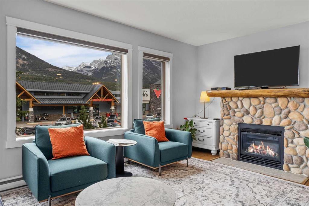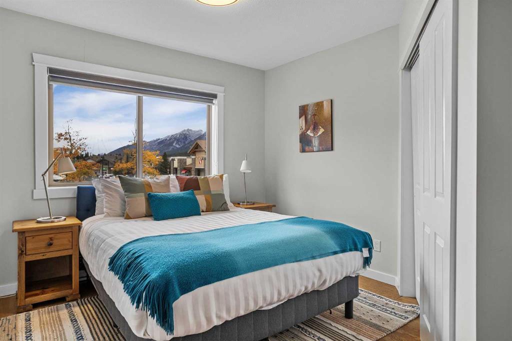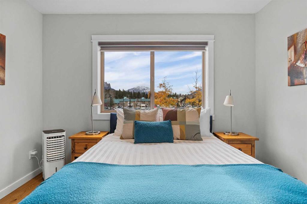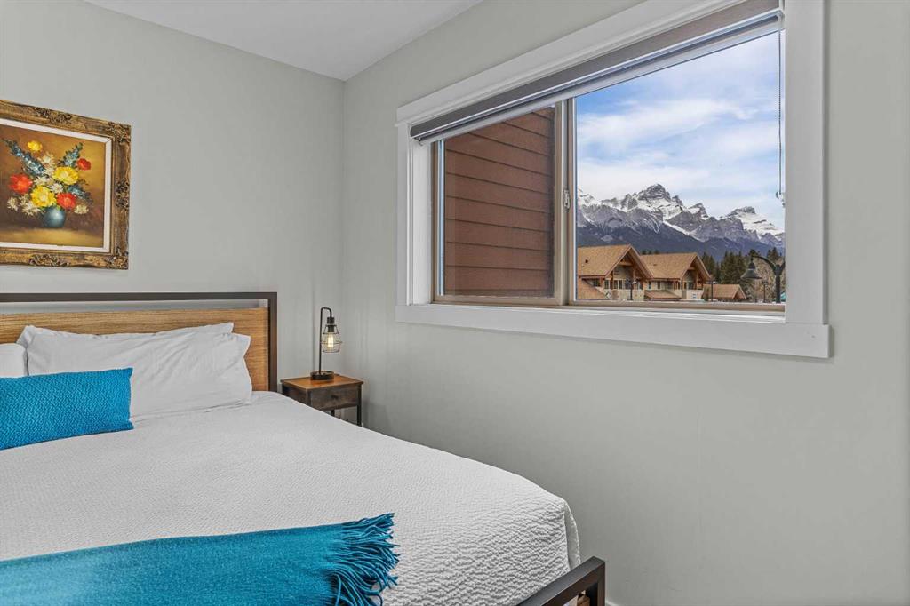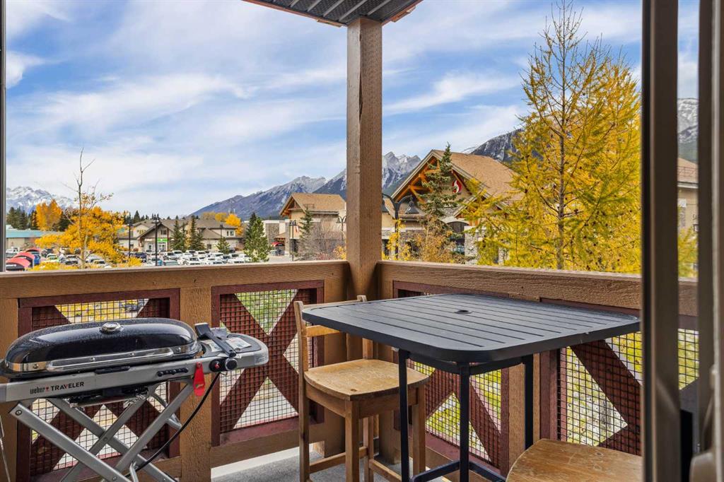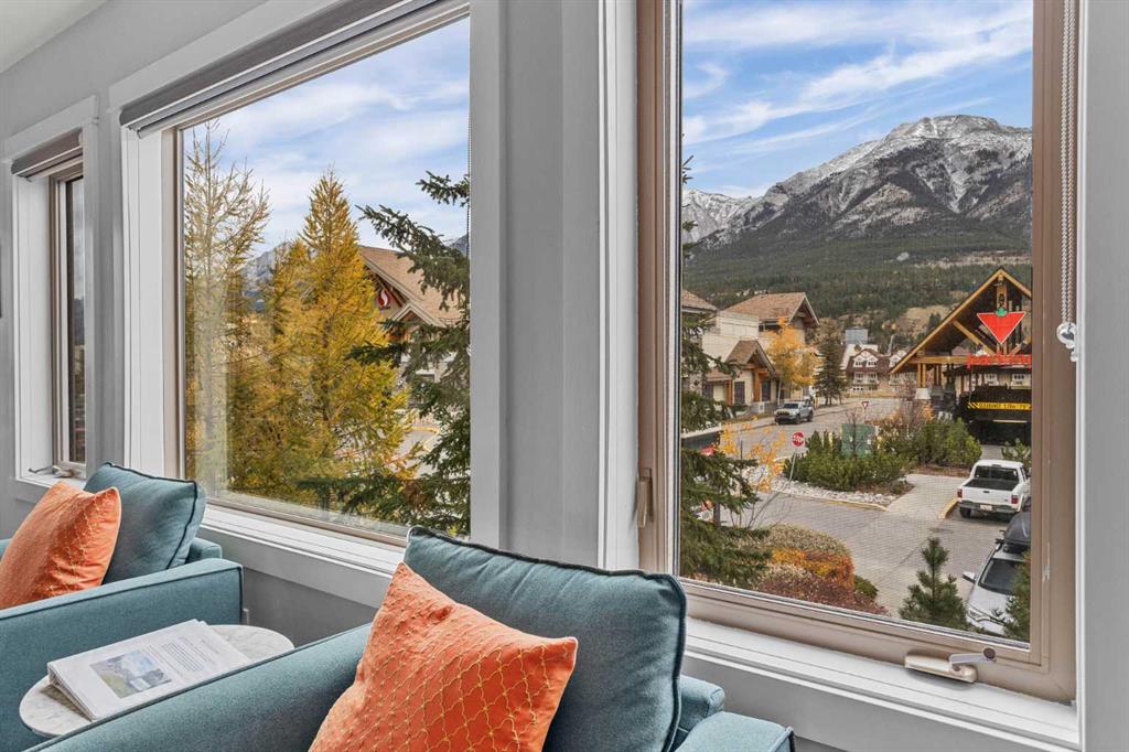 Wrap-around mountain views, rooftop hot tub, and legal tourist zoning — a rare combination. This bright corner unit offers 1,200 square feet and the flexibility to operate as a high-performing short-term rental or a full-time or lock-and-leave Canmore home. Thoughtfully renovated and fully furnished, this property is truly turnkey and positioned perfectly for the busy summer season. Currently configured as a two-bedroom plus den, the layout comfortably sleeps six and can easily function like a three-bedroom with the addition of a pull-out sofa — a simple way to expand nightly rates and overall revenue. Granite countertops, 2 tone cabinetry, durable vinyl flooring, and modern finishes deliver a clean, updated aesthetic that performs well with guests. Located in one of Canmore’s most sought-after STR buildings, this downtown address puts shops, restaurants, and trails right at your doorstep, with downtown just a block away. Owners and guests enjoy premium amenities, including a top-floor fitness room, underground parking and a stunning rooftop hot tub with 360-degree mountain views — a true differentiator in the short-term rental market. Whether you’re focused on cash flow, flexibility, or long-term value in one of the world's strongest STR markets, this property delivers. *List price is inclusive of GST -ask your tax expert how to defer the tax*