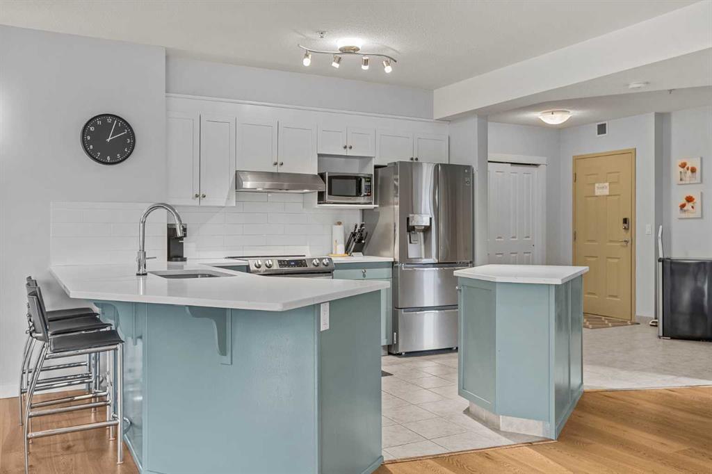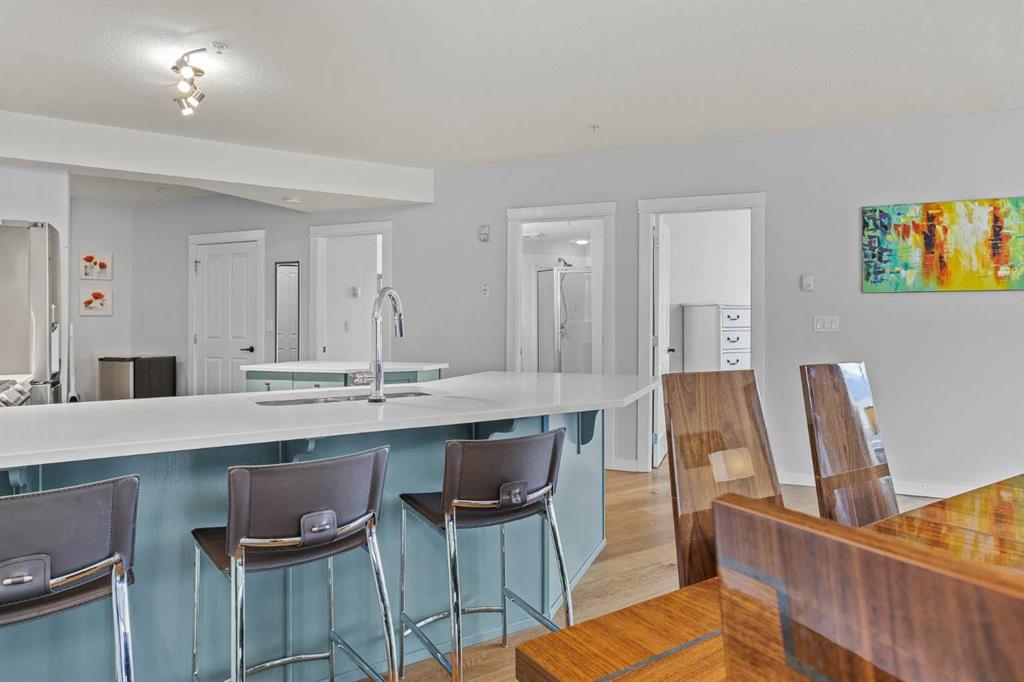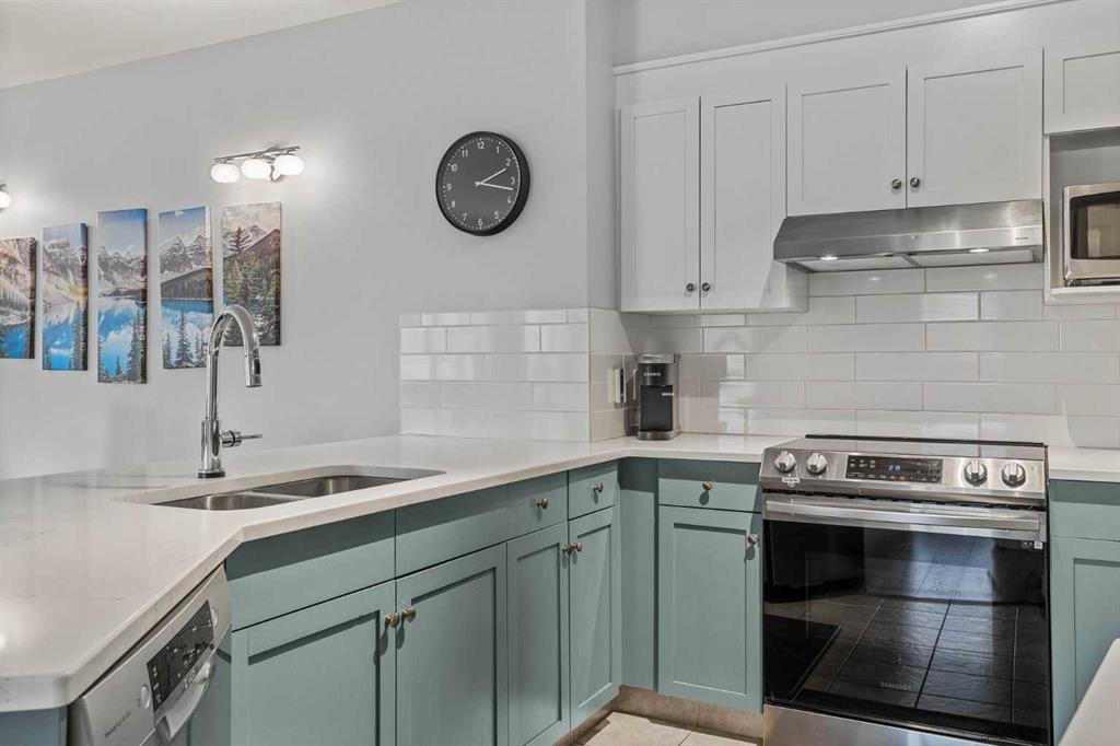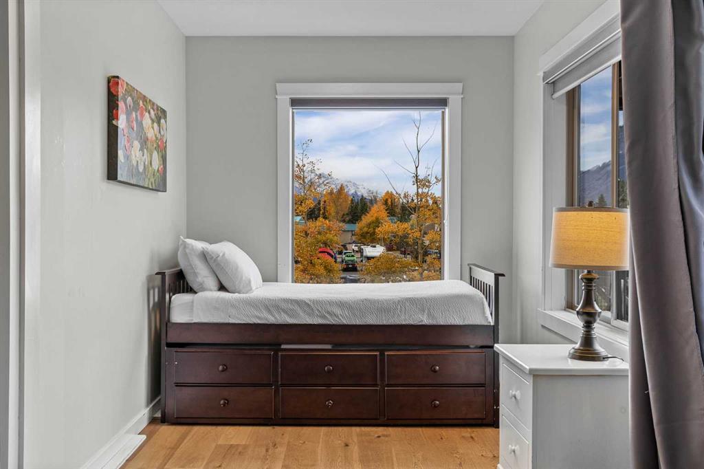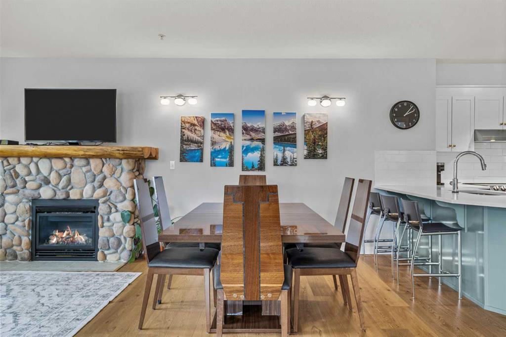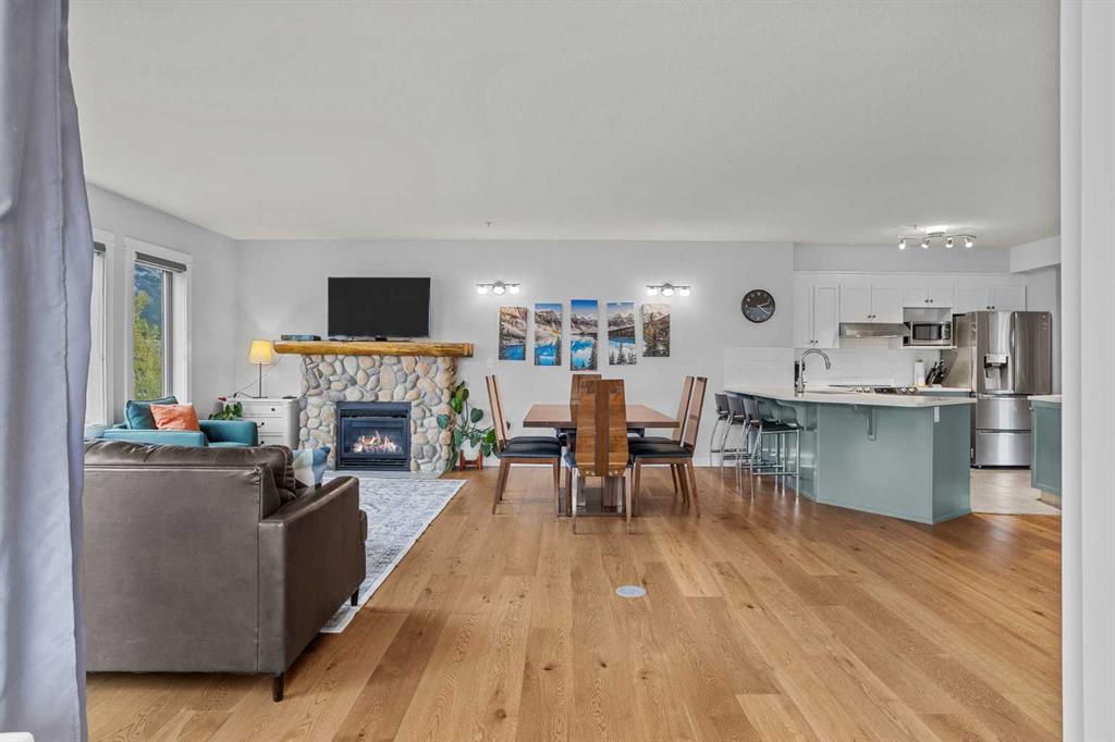 Wrap-around mountain views, rooftop hot tub, and legal tourist zoning — a rare combination. This bright corner unit offers 1,200 square feet and the flexibility to operate as a high-performing short-term rental or a full-time or lock-and-leave Canmore home. Thoughtfully renovated and fully furnished, this property is truly turnkey and positioned perfectly for the busy summer season. Currently configured as a two-bedroom plus den, the layout comfortably sleeps six and can easily function like a three-bedroom with the addition of a pull-out sofa — a simple way to expand nightly rates and overall revenue. Granite countertops, 2 tone cabinetry, durable vinyl flooring, and modern finishes deliver a clean, updated aesthetic that performs well with guests. Located in one of Canmore’s most sought-after STR buildings, this downtown address puts shops, restaurants, and trails right at your doorstep, with downtown just a block away. Owners and guests enjoy premium amenities, including a top-floor fitness room, underground parking and a stunning rooftop hot tub with 360-degree mountain views — a true differentiator in the short-term rental market. Whether you’re focused on cash flow, flexibility, or long-term value in one of the world's strongest STR markets, this property delivers. *List price is inclusive of GST -ask your tax expert how to defer the tax*