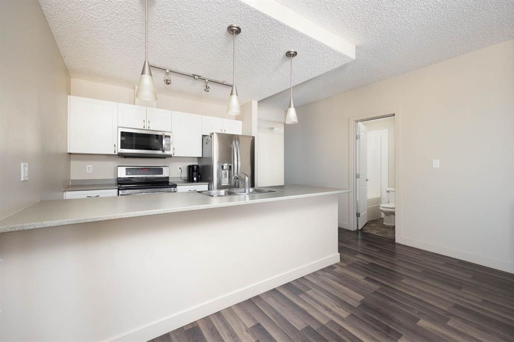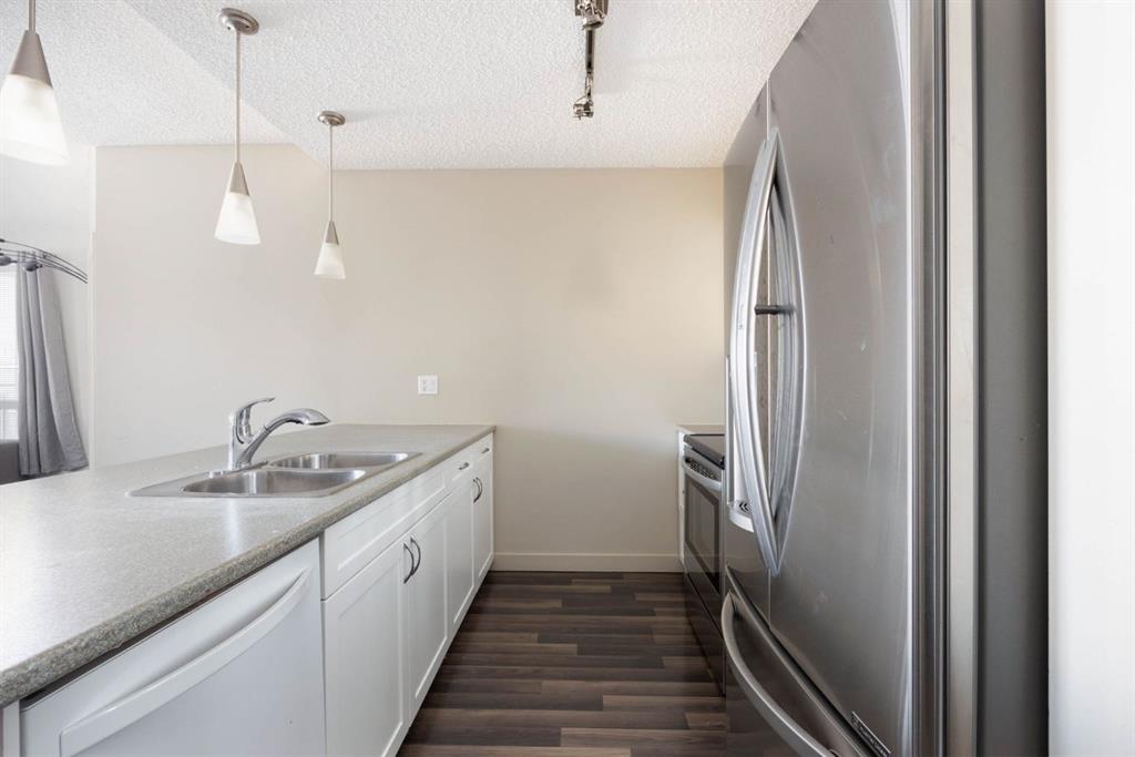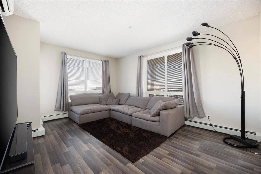 Corner-unit living on the 5th floor in desirable Eagle Ridge! This spacious 2-bedroom, 2-bathroom condo offers a functional open-concept layout with two balconies, ideal for both everyday living and entertaining. Situated in a concrete-constructed building, this well-maintained corner unit is flooded with natural light thanks to additional windows, 9-foot ceilings, and modern neutral finishes throughout. The bright white kitchen is both stylish and functional, featuring sleek cabinetry, a generous eat-up island, and seamless flow into the living space. The living room provides direct access to one balcony, complete with a natural gas hookup (perfect for summer BBQs) while the primary bedroom offers private access to a second balcony! Each bedroom is thoughtfully positioned on opposite ends of the unit, providing excellent privacy, and both offer ensuite bathroom access—perfect for professionals, roommates, or guests. Enjoy the comfort of central air conditioning, in-suite laundry, and the convenience of two titled parking stalls (one underground and one surface), plus an underground storage unit. Additional features include secure fob access at the main entrance and on every floor for added peace of mind. Located close to bus routes, grocery stores, the new movie theatre, and everyday amenities, this condo truly offers both comfort and convenience. Book your private showing today and experience Eagle Ridge living at its best.