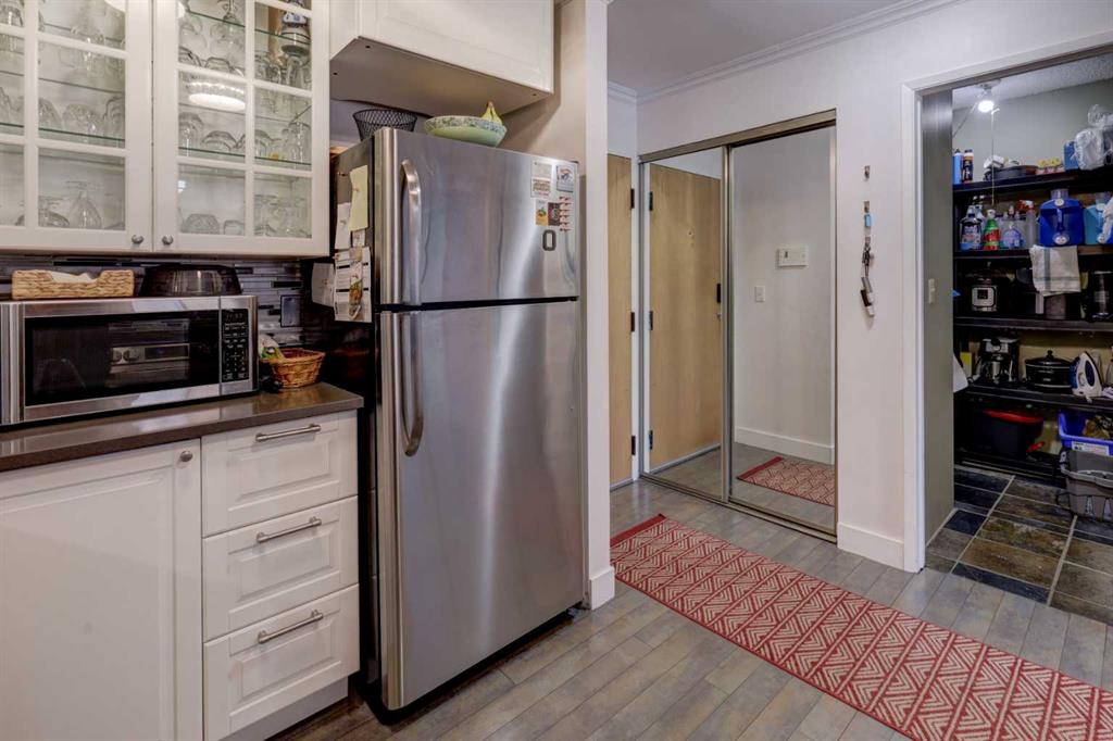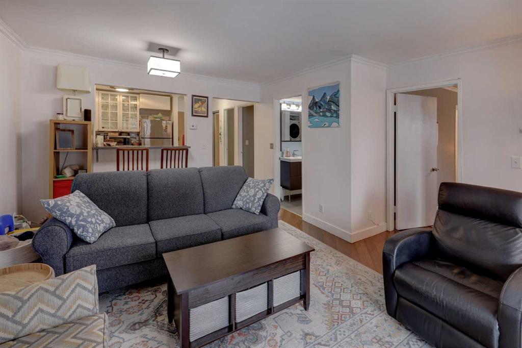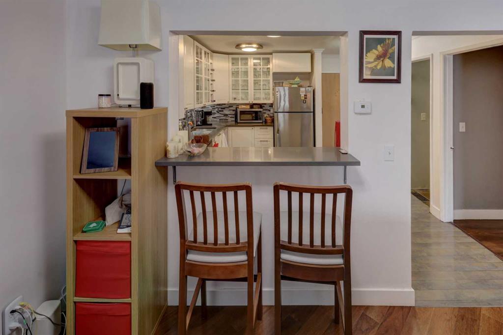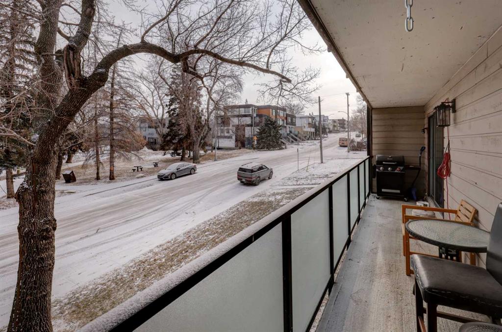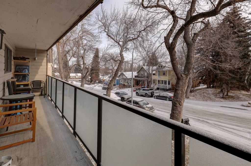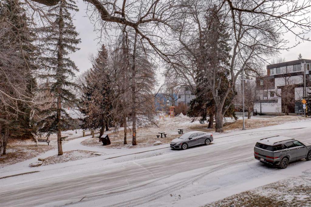 Discover this spacious, beautifully updated inner-city condo in the heart of Bankview. An ideal opportunity for first-time buyers, investors, or anyone who values convenient urban living. The fully renovated kitchen is a standout, featuring stainless steel appliances and modern finishes that flow seamlessly into the open-concept living area. The living space is warm and inviting, perfect for entertaining or unwinding, and opens onto an east-facing balcony that overlooks the park. Enjoy peaceful views, mature trees, and abundant morning light, while the unit remains comfortably cool throughout the day. The generous primary bedroom includes an updated 2-piece ensuite, while the second bedroom offers excellent space and a large closet, making it ideal for guests, a home office, or roommates. A recently updated 4-piece bathroom includes an in-suite washer and dryer for added everyday convenience. Additional storage is available both within the unit and in a shared lower-level storage area, along with bike storage. A major upcoming value-add includes all building windows being replaced this year, providing improved energy efficiency and long term peace of mind. The unit also includes a covered parking stall with a plug-in, perfect for Calgary winters. It also has the added benefit of no stairs from the parkade to the unit, ensuring easy, step-free access. Located directly across from a park in a pet-friendly building, this home offers privacy while remaining just steps from the shops, restaurants, and vibrant energy of 17th Avenue. A fantastic place to call home or a smart investment in a prime inner-city location.