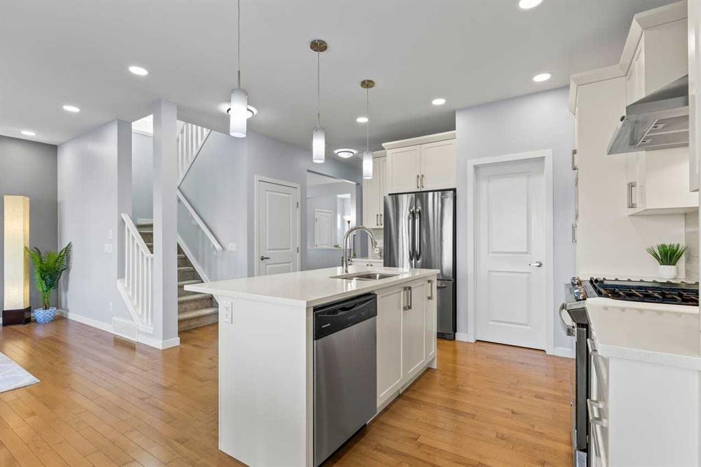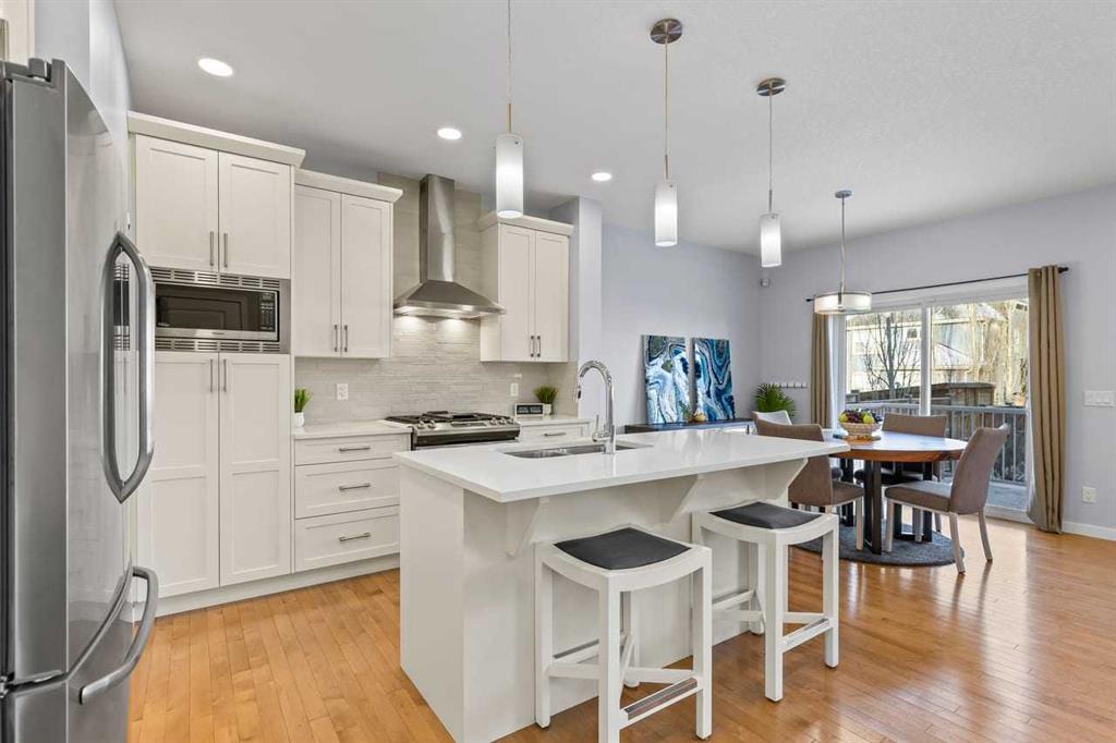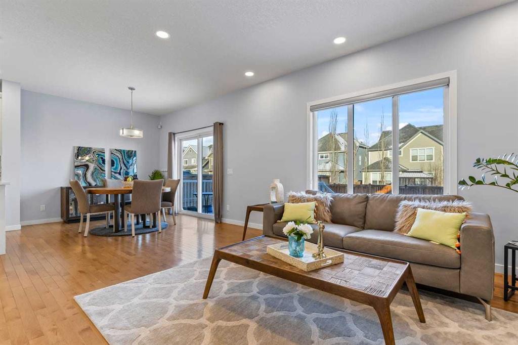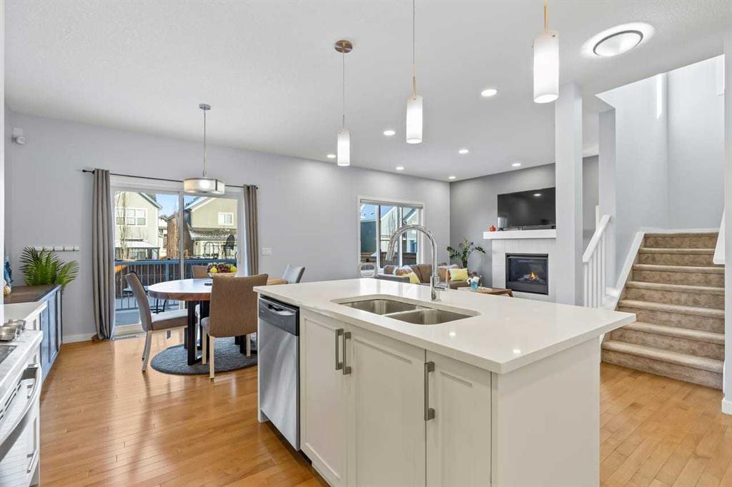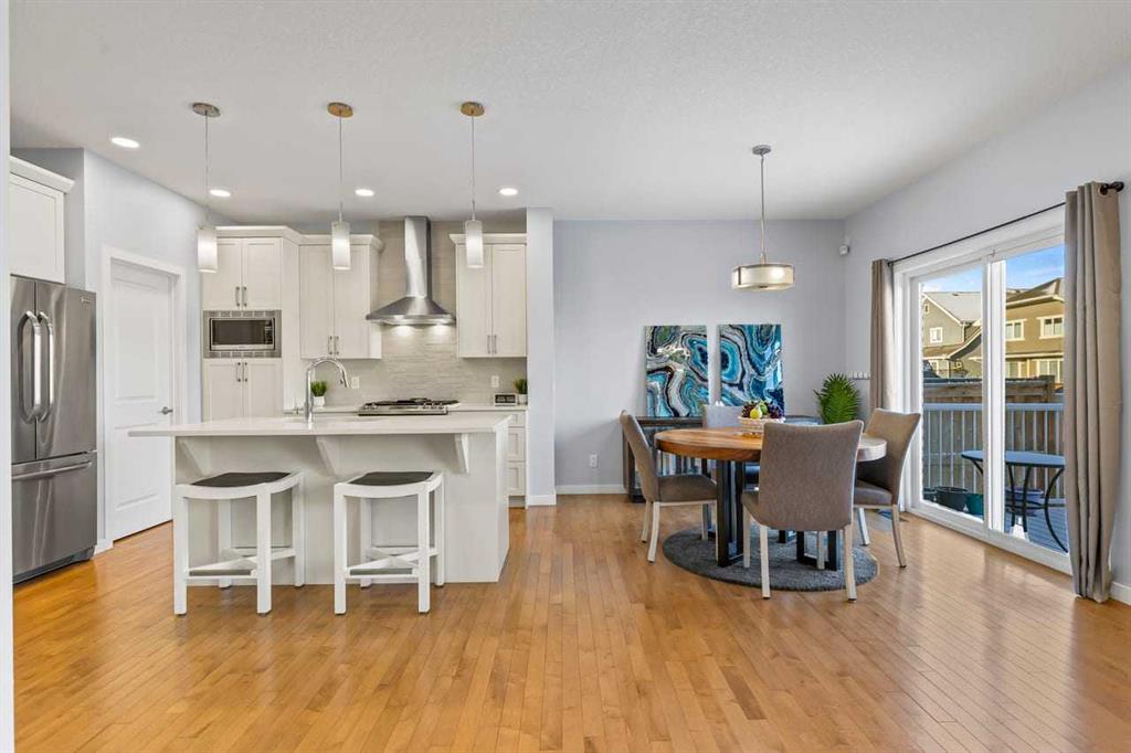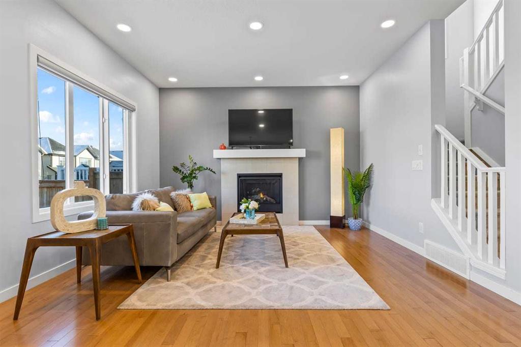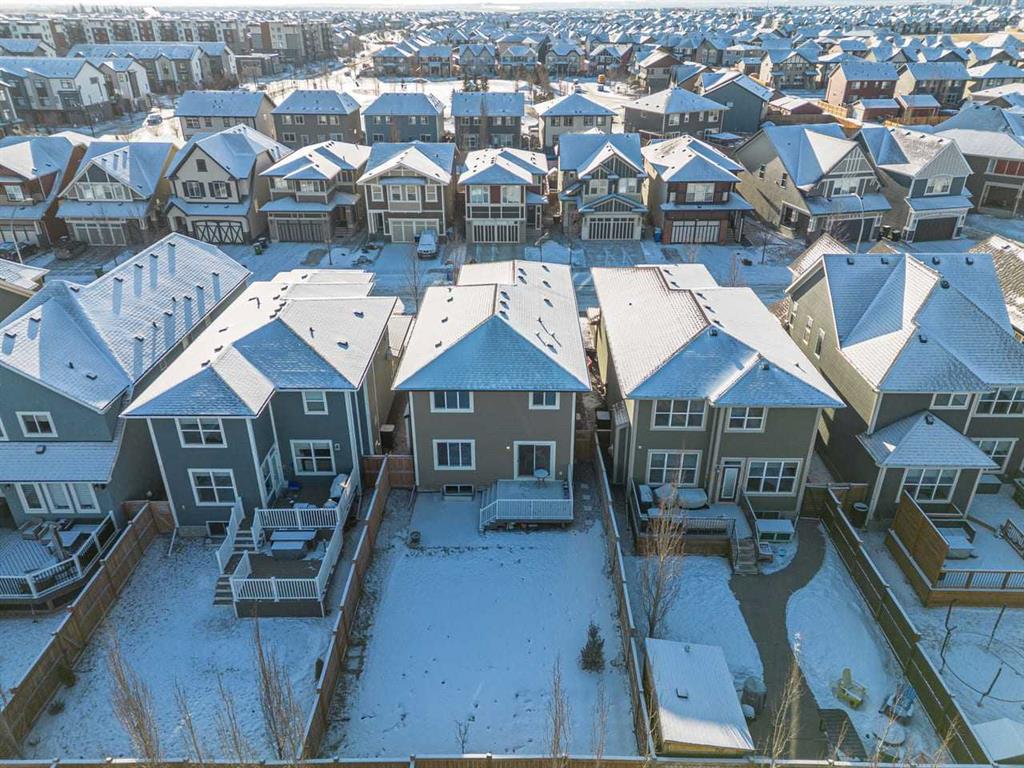 WELCOME TO THIS BRIGHT, BEAUTIFUL, THOUGHTFULLY DESIGNED 4 BEDROOM HOME located in the LAKE COMMUNITY OF MAHOGANY. This 4 bedroom, 2 1/2 bathroom home with DOUBLE ATTACHED GARAGE is situated in the coveted lake community of Mahogany. WELL MAINTAINED, it offers a welcoming OPEN CONCEPT MAIN FLOOR with a CONVENIENT DEN, ideal for work-from-home needs or a quiet study. Large windows flood the living spaces with natural light, while a cozy gas fireplace and stylish pot lights create an inviting ambiance. The main floor blends hardwood and tile with a modern aesthetic, featuring a chef’s kitchen that will delight any home cook. Cook and entertain in style with a bright kitchen that includes a WALK-IN PANTRY, a CENTRAL ISLAND, QUARTZ COUNTERTOPS, and STAINLESS STEEL APPLIANCES, including a GAS RANGE, HOOD FAN, and a BUILT-IN MICROWAVE. WHITE CABINETS paired with a STONE BACKSPLASH provide a timeless, high-end finish. Upstairs, retreat to a comfortable FAMILY BONUS ROOM perfect for movie nights or a play area. The SPACIOUS PRIMARY BEDROOM offers a walk-in closet and a luxurious 5 PIECE ENSUITE with DUAL SINKS, a SOAKER TUB, and an OVERSIZED SHOWER. Three additional well-sized bedrooms share the well-appointed upper level, along with a LARGE LAUNDRY ROOM featuring ample shelving for easy organization. The unfinished basement provides a blank canvas for future development to suit your needs. The fully fenced and landscaped yard is ready for outdoor enjoyment and gatherings. Mahogany is a premier lake community with schools, parks, playgrounds, pathways, and an abundance of amenities within reach. Shopping, restaurants, and professional services are nearby, making this location incredibly convenient. DON'T LET THIS BEAUTIFUL HOME SLIP AWAY! BOOK YOUR SHOWING TODAY.