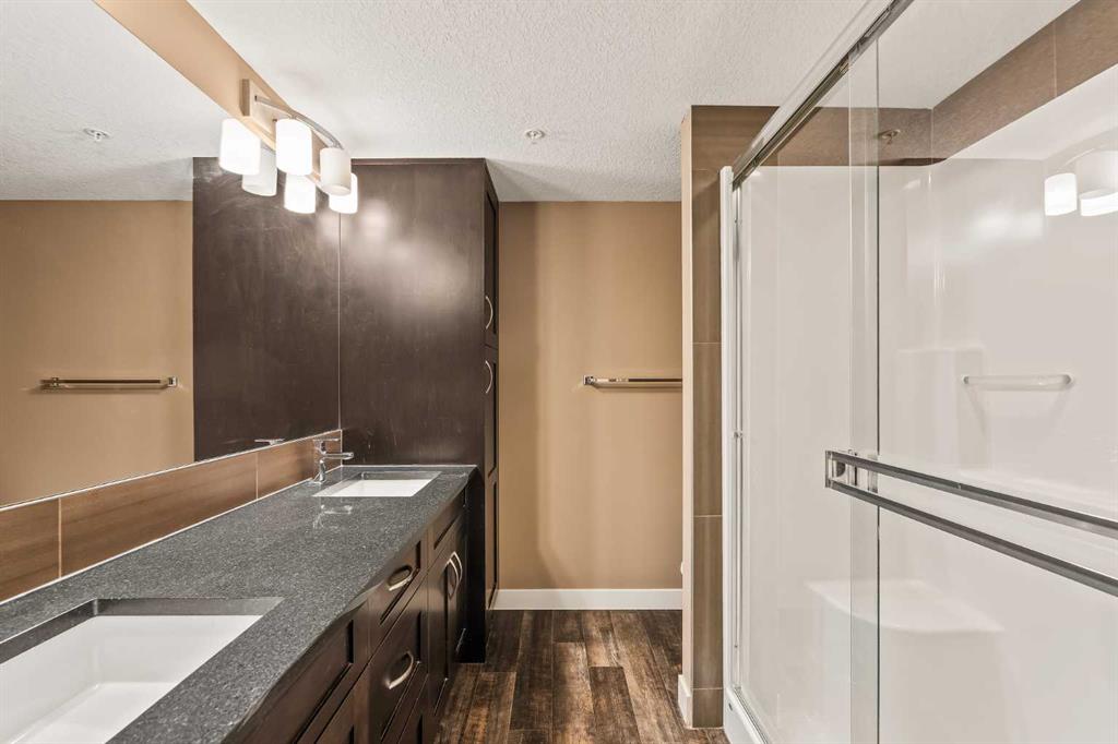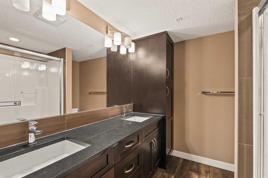 Welcome to Sage Hill, where comfort and convenience come together in this beautifully upgraded 2-bedroom, 2-bathroom low-rise condo. The kitchen is a true standout with rich cabinetry, a large island with seating, and plenty of space for everyday living and entertaining. The open layout includes a dedicated dining area and a bright, spacious living room that’s easy to furnish. Luxury vinyl plank flooring runs through the main living areas for a modern, seamless look, while both bedrooms feature soft carpet for added comfort. West-facing windows fill the home with natural light, and the private balcony with a gas hookup is the perfect spot to enjoy summer evenings. The primary bedroom includes a walk-through closet and a 4-piece ensuite with double sinks and great storage. The second bedroom is bright and versatile, located next to a second full bathroom with a tub/shower combo. You’ll also love the in-suite laundry with extra shelving, air conditioning via the wall unit in the living room, a titled underground parking stall and a secure underground storage locker for seasonal items. Sage Hill is a fantastic NW community with walking paths, green space, nearby shopping, restaurants, and quick access to Stoney Trail and Shaganappi Trail. Perfect for first-time buyers, downsizers, or investors—this home checks all the boxes!