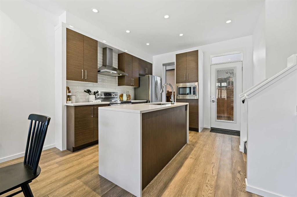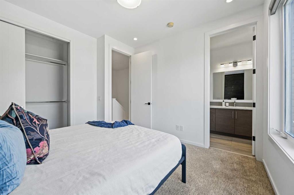 ATTENTION INVESTORS/PROFESSIONALS/DOG OWNERS/UPGRADERS/FIRST TIME HOME BUYERS - Stylish. Spacious. Sophisticated. **TURN KEY & MOVE IN READY KILLARNEY TOWNHOME WITH PRIVATE YARD** This exceptionally well-appointed 3-bedroom, 3.5-bath townhome offers over 1,600 sq ft of thoughtfully designed living space in one of Calgary’s most desirable inner-city communities. Each bedroom features its own private ensuite, providing a perfect blend of luxury and convenience for families, professionals, or guests. A bonus powder room on the main level adds everyday functionality. From the moment you step inside, the open-concept layout, soaring 9’ flat ceilings, and oversized interior doors create a sense of airiness and modern elegance. The modern kitchen features sleek modern cabinetry, waterfall quartz countertops, white oak engineered hardwood flooring, stainless steel appliances, and a glossy tile backsplash. Upstairs, you'll find two generous primary suites, each with ensuite bathrooms and walk-in closets split by the hallway, stairs and linen closet for maximum privacy. The fully developed lower level offers even more space with a third bedroom, full 4pc bath, media/flex space, laundry area, & storage—perfect for guests, a home office, or cozy movie nights/ work-out area. Step outside into your private backyard oasis—complete with low-maintenance turf—ideal for relaxing or entertaining. PERFECT FOR A HAPPY DOG. Top this all off with a private, detached single garage (not shared), offering both security and convenience. Located just minutes to downtown, with easy access to the C-Train, Marda Loop, playgrounds, golf, schools, and shopping, this location truly offers the best of urban living with a community feel.