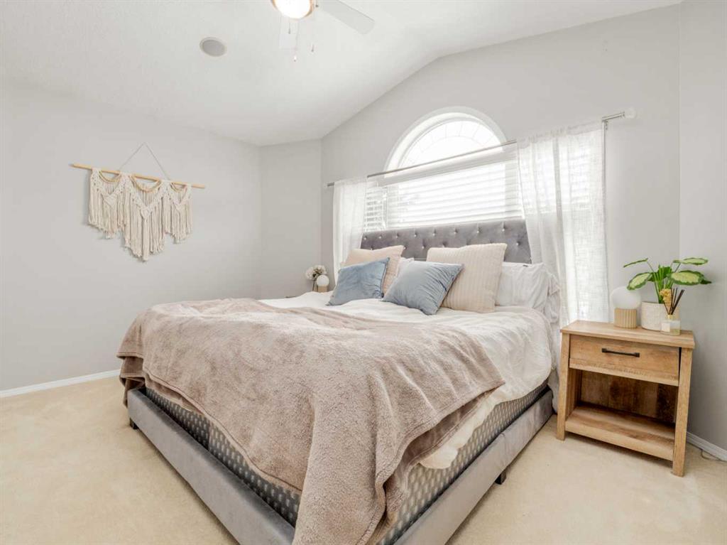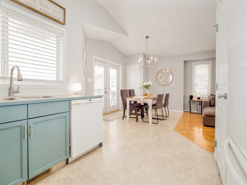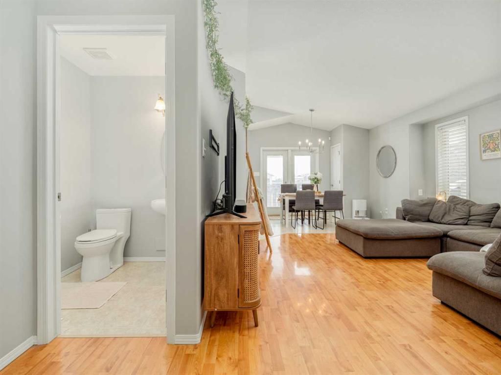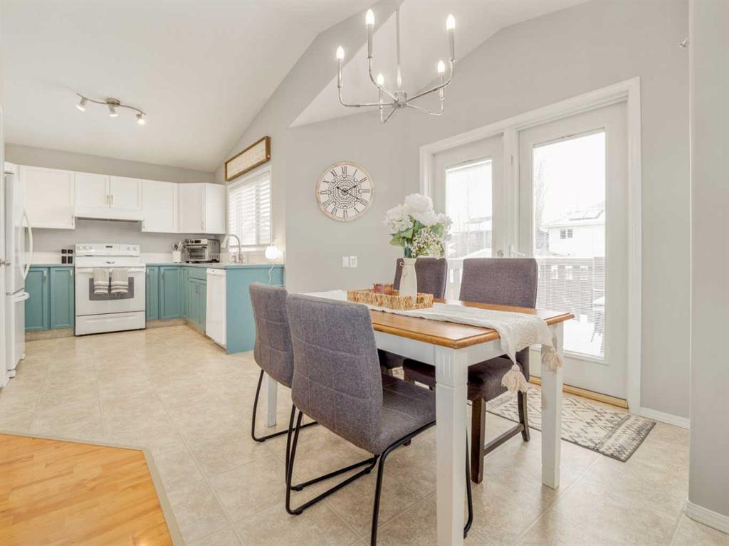 Fantastically appointed bi-level home in West Lethbridge with nice open floor plan. Welcoming entry open to above with front closet. Main level features vaulted ceilings. Living room has laminate flooring. Dining room features a good space with garden doors to deck out back. Kitchen features upper white cabinets and lower lighter blue cupboards. There is a full appliance package and a pantry. Primary bedroom is also on this level and features a full ensuite with tub/shower bath combo and large walk-in closet. The main floor also has another 2 piece bathroom. Basement is fully developed with large family room that includes an entertainment unit with electric fireplace. Basement also has 2 good size bedrooms and another full bath with tub/shower combo. There is also good storage under the stairs. Home has convenience of central a/c for the warmer months. Yard is fenced and has gravel on the side, and includes a hot tub, and a patio with pergola. Parking pad out back for 2 vehicles with alley access. Just down the alley is access to WIllow Pointe Park and home is within walking distance to Willow Brook Park and Mike Mountain Horse Elementary School and Park.