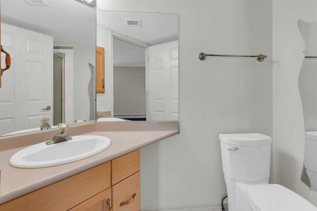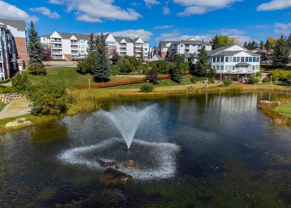 Welcome to your new home at Dreamview Village , a 55+ community with multiply amenities . The unit is located on the 2nd floor with west views backing onto the park, enjoy your mountain views from your private balcony. The amenities are; Club house with Entertainment room , decks with views of the pond and water fountain. . Guest suite available for your guests. A work shop with wood working equipment in the underground parking garage along with a carwash. This is a bright unit with a Bay window in living room and an open floor plan to the kitchen with an island. The countertops have been replaced with quartz like stone. The home has a separate storage / laundry room in the unit. The master bedroom has double closets and a 3 pce ensuite bath. The main 4 pce bath has white tile and lino flooring. The 2nd bedroom or den has book shelves that are moveable and can be included .There is one titled underground parking stall and one assigned storage unit that goes with the unit..There is visiting parking in front of the building. If you like to socialize the club house offers space to play pool or play cards. The club house is large enough to entertain a large group of friends and family. The storage unit that goes with the unit is located in the parkade level in a separate room., Stall 115. Go to parking stall B76 face the back of stall than turn right walk to the next man door on your left hand side and use the fob to get in, now you are in a foyer , door on the right gets you into storage room.