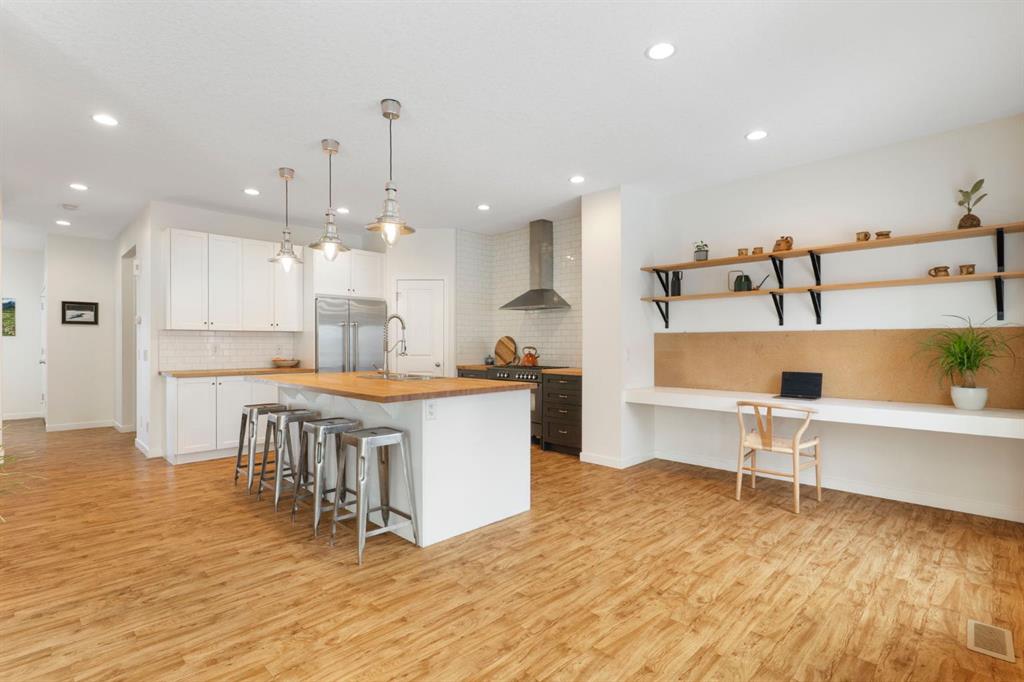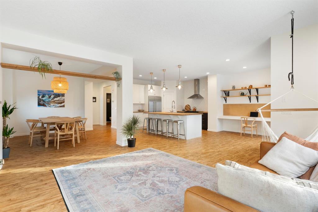 Nestled in the mature community of Jumping Pound, this beautifully designed home offers the perfect blend of nature, functionality, and modern style—just moments from scenic walking trails overlooking Jumping Pound Valley and the Bow River. Step inside to an open-concept main floor inspired by clean Scandinavian design, featuring custom built-in cabinetry with integrated lockers—ideal for busy family life and effortless organization. The heart of the home is an entertainer’s dream, with a thoughtfully designed kitchen showcasing butcher block countertops, a six burner gas stove, stylish two-tone cabinetry, an elegant subway tile backsplash, and a convenient walk-through pantry. The living room is warm and inviting, highlighted by built-in cabinetry, a gas fireplace, and a striking natural brick surround. The main level is completed with rich natural wood accents, a two piece bathroom, cozy office nook, and direct access to the attached double garage. Upstairs, you’re welcomed by a bright family-oriented bonus area flooded with natural light complete with built-in seating, along with two generously sized bedrooms and a four-piece bathroom. The primary retreat is a true sanctuary, featuring a spa-inspired ensuite with an elegant claw-foot soaker tub, dual vanity, and a glass-enclosed shower accented with subway tile. A walk-through closet connects seamlessly to the upper-level laundry room for ultimate convenience. The fully developed basement offers a second open-concept entertainment space, an additional bedroom, and a three-piece bathroom complete with a sauna—perfect for relaxation or hosting guests. Outside, the fully landscaped and fenced backyard features a dual level deck accented by mature trees, creating an ideal setting for family gatherings and outdoor entertaining. Located close to exceptional local amenities including a daycare, dance studio, ball diamond, multiple parks, and a nearby dog park, this home truly offers something for everyone. This could be your next home—where lifestyle, comfort, and community come together.