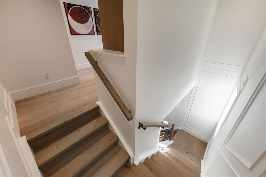 Nestled in the heart of Seventeen Hundred at Aspen Estates, this luxurious townhome with The Dalton floorplan (a design finalist with the 2025 BILD Calgary Awards) has been carefully crafted by RareBuilt Homes & offers over 2,700 sq ft of refined living space, complete with 3 bedrooms, amazing mountain views and exceptional design throughout. The airy main level with lofty 9’ ceilings, showcases engineered hardwood flooring, and expansive high end European triple glazed tilt & turn windows that flood the home with natural light. A spacious great room centers around a striking feature fireplace and opens to a large balcony with a louvered roof—perfect for year round enjoyment. A dedicated office space provides an ideal setting for work from home days. The beautifully appointed kitchen features quartz countertops, a generous island with eating bar, full height custom cabinetry, a walk in pantry, and a premium appliance package. The dining area comfortably accommodates gatherings with family and friends. A stylish 2 piece powder room completes the main level. Upstairs, the second level hosts three well proportioned bedrooms, a 4 piece bath, and convenient laundry facilities. The serene primary retreat with soaring vaulted ceiling includes a spacious walk in closet and a private 5 piece ensuite with in floor heat, dual sinks, a freestanding soaker tub, and a separate shower. The lower level offers impressive versatility with a large flex room and direct access to a walk out patio—ideal for a media room, fitness area, or family space. This level also includes a mudroom connecting to the fully finished & painted oversized double attached garage that’s EV charger ready. Additional highlights include an elevator serving all three levels, central air conditioning, six solar panels, and concrete demising walls for enhanced privacy and noise reduction. Set within an exclusive complex spanning nearly 9 acres—5.5 of which are dedicated to green space—this residence delivers an unparalleled standard of comfort, quality, and sophisticated living.