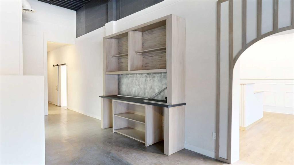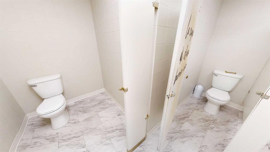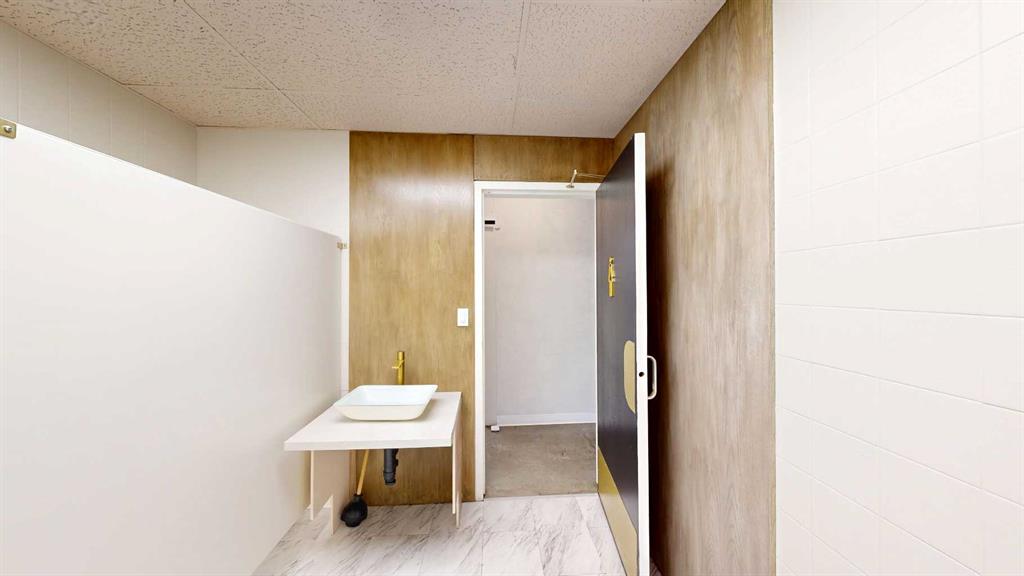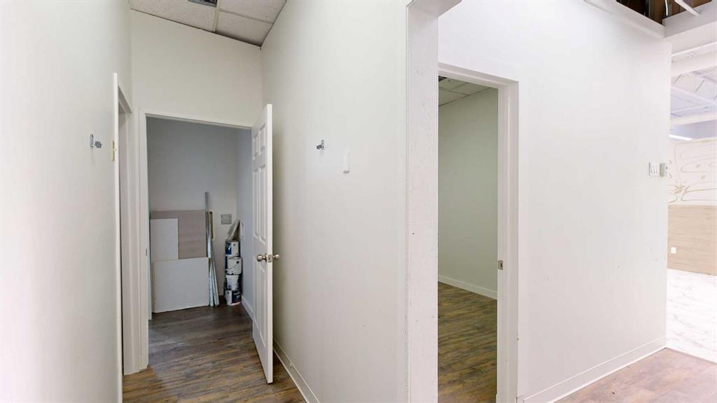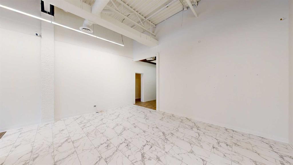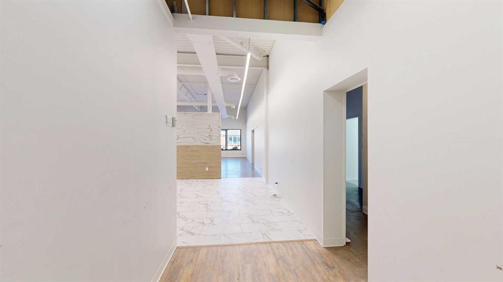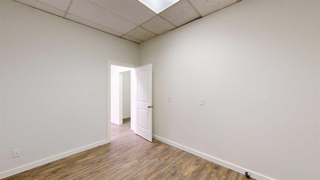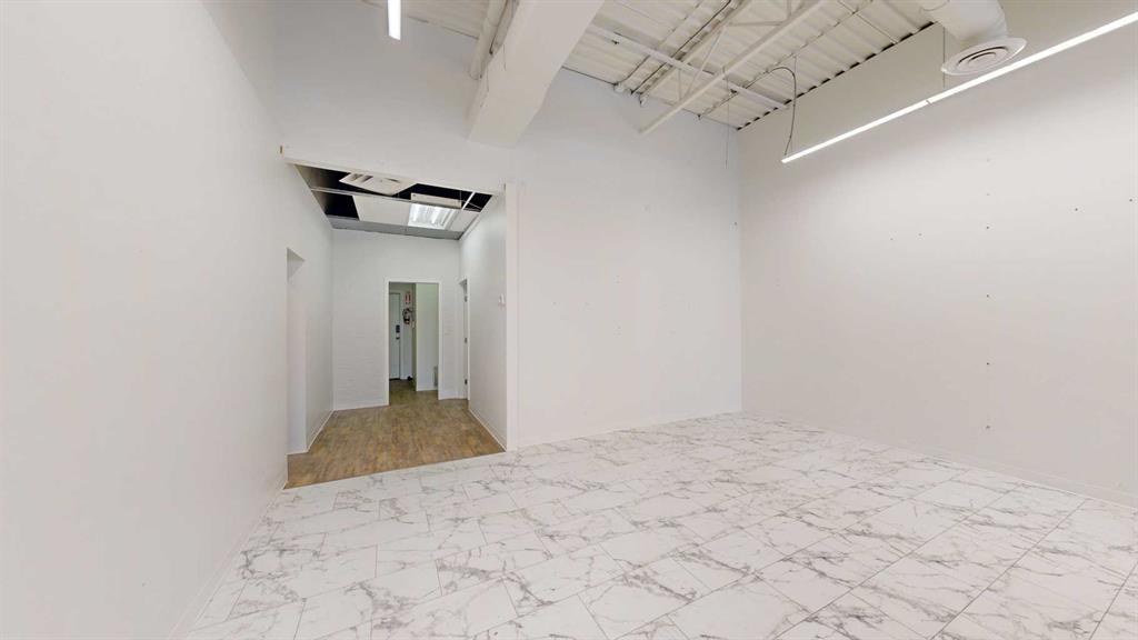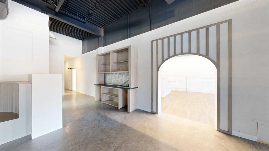 This expansive commercial property on main street in Stettler features a visually appealing and versatile layout suitable for a variety of business styles. The interior blends industrial and modern design, highlighted by exposed beams and ductwork in the high ceilings. Large windows fill the space with natural light for an open, airy feel. This property is partitioned into two main spaces, each with their own front and back doors. The south side has an open area with polished concrete floors, making the space well suited for retail or event use. There is an existing bar with stainless steel commercial sinks, plenty of counterspace, and display shelving. This space currently has two tables with built in seating. The kitchen area adjacent is ready for development. An arched doorway leads you to a bright space with warm wood-look flooring and windows along the front. This could potentially provide a comfortable setting for retail, offices, or meeting areas. Beyond this is another space with marble-look flooring for even more flexibility. There is a large office or storage room as well as a comfortable washroom just around the corner. The hall, which divides the two main spaces, has storage room with shelving and two modern washrooms. With its blend of open concept areas and private rooms, this property can easily accommodate creative studios, professional offices, retail operations, or multi-use commercial ventures. The landlord is open to demising the space with an acceptable lease.