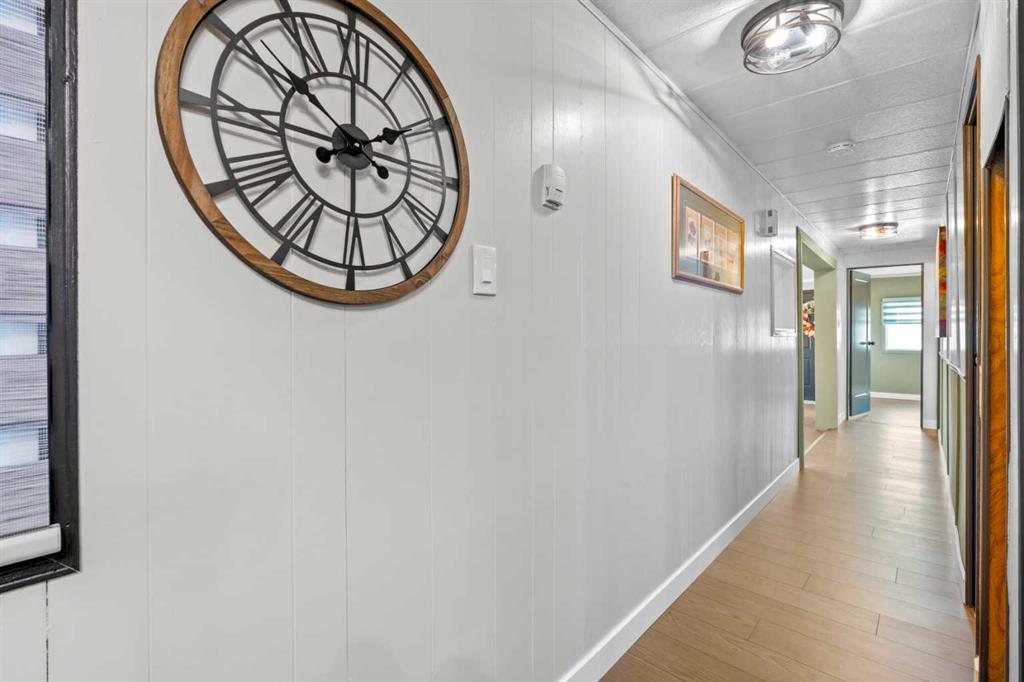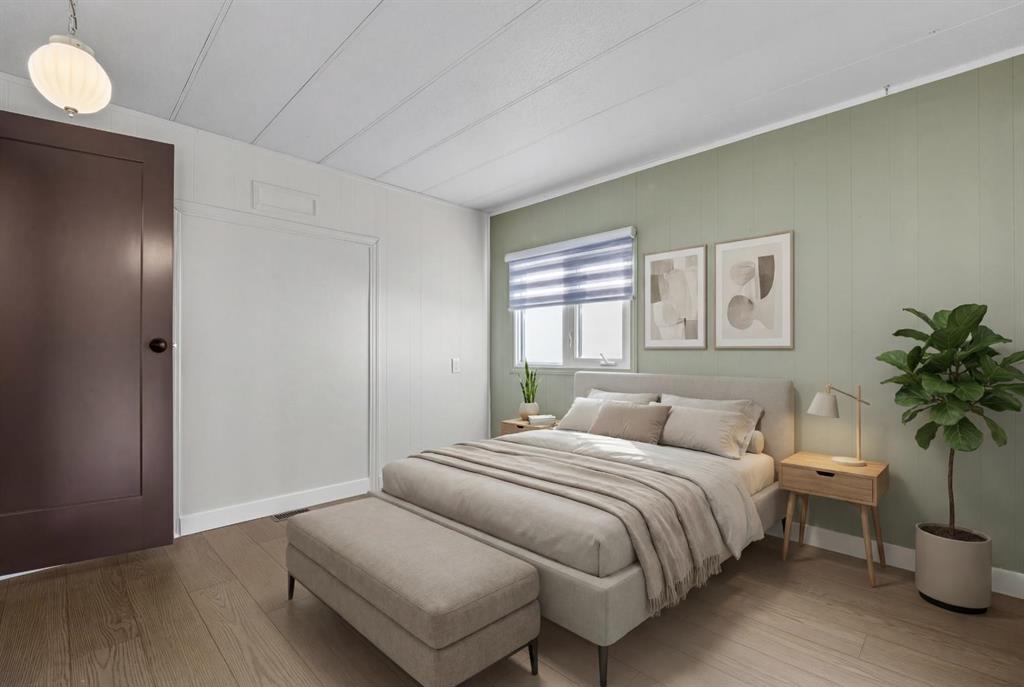 OPEN HOUSE SUNDAY FEB. 1 FROM 2:00-4:00pm ***NEW YEAR...NEW HOME...NEW LIFESTYLE*** UPDATED, AFFORDABLE, PRISTINE & PERFECTLY PRICED TO SELL! This adorable 2 bed & 1 bath GEM is everything you could want. Good sized foyer / double closets (no lack of storage here). Fully updated new luxury vinyl flooring & lighting throughout home, baseboard, casing, blinds, new floor grates, modern paint colours, new interior doors, wainscotting. Separate mud room leads out to back deck (new as well). Kitchen has new countertop, backsplash, double stainless sink, faucet, portable dishwasher (only 3 years old) moveable island, newer convection stove, microwave & fridge. The separate laundry room off the kitchen has the washer & dryer. Nice to have the laundry room tucked away instead of being in a hallway. This laundry room also gives you lots of cupboard space and room for brooms, vacuums etc. Off the kitchen patio doors to deck & 2 more closets, one in hallway and one just to the right of the kitchen. The open concept living/dining room has new paint, shiplap feature wall, lighting & blinds on the bay window. Both bedrooms are a good size separated by the bathroom (makes for perfect room mate/teen situation). The primary has wall to wall closets and the second bedroom is huge (used to be 2 bedrooms). The main bath Is completely renovated with new flooring, gorgeous vanity with his and her sinks, mirrors, medicine cabinet, soaker tub and comfort height toilet. Exterior offers newer front door, covered deck full length of home with xtra cupboards, new carpeting, painted exterior wood trim on side of home facing the carport, covered carport easily covers truck & smaller car, big shed & back yard that offers good amount of greenspace for the pets/kids or the gardener but not too much to have to maintain. Newer windows, roof, furnace (2011) & hot water tank (2011). Lease fee of $1,375 includes water, sewer, garbage pick up, snow removal, use of clubhouse, maintenance of playgrounds and pathways. There are pet restrictions such as weight & breed but none relating to children and/or age of occupants. Kids/grandkids welcome. This is a family oriented park. RV parking is available on site for a nominal fee. Transit service is throughout the park and school bus service as well. With Bowness Park (boat rentals, picnic area, & skating in winter) around the corner, the new Farmer's Market (with shops, restaurant & coffee shop within walking distance) & Superstore to name a few you will be pleased with all these amenities. Easy access to Stoney Trail, 50 minutes to the Mountains & 20 minutes to Downtown you've got it all! Greenwood is a community with mature trees throughout, walking paths, parks, bus service, walking distance to the new Farmers Market & great access to Stoney Trail for easy commutes to downtown etc. Whether you are downsizing, moving out of rental home, looking for a new lifestyle or just looking for affordability don't miss out on this upgraded home sweet home.