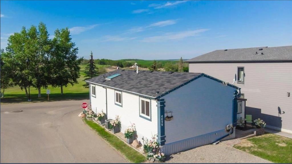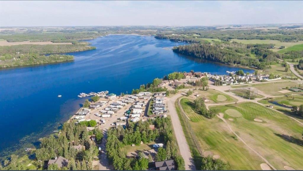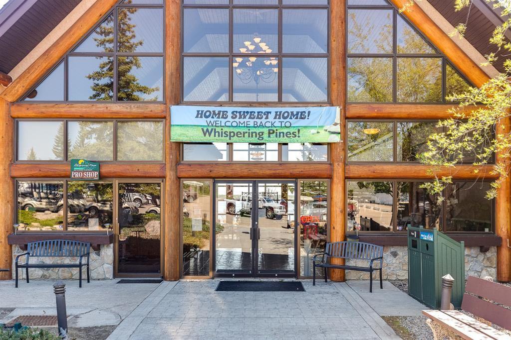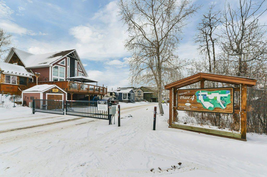 Welcome to Whispering Pines Golf & Country Club Resort! Whether you're searching for a permanent residence or a seasonal retreat, this community offers the best of both worlds. Enjoy the tranquility of only having one neighbor next door, allowing you to savor your morning coffee on the expansive wraparound deck while taking in breathtaking views of the Par 3, 11th tee box, and the beautiful lake. Parking is abundant with three designated stalls, and you'll have plenty of storage space beneath the deck, along with an additional shed for all your outdoor essentials. For relaxation, retreat to the charming "she shed," featuring a delightful two-person spa hot tub, newly pump installed in 2024. The well-maintained, low-maintenance yard is perfect for making the most of your outdoor space. As you step inside, you'll be greeted by a spacious, open-concept floor plan filled with natural light, thanks to two skylights and multiple windows that frame the stunning outdoor vistas. The kitchen is a true highlight, boasting ample cabinet space, an abundance of counter space, newer modern black appliances, and a convenient corner pantry, making it an entertainer's dream. Your luxurious 4-piece bathroom features a comfortable soaker tub and a generous sit-down shower, offering the perfect blend of comfort and functionality. Completing this home are three generously sized bedrooms, providing ample space for your family and guests. Features include central air conditioning, furnace bot serviced in Oct 2025, gated community with remote access, area, on site mail boxes, 5 min walk to the lake, and a gas line with BBQ included. Whispering Pines offers an array of fantastic amenities, including a Clubhouse with a restaurant/lounge, a swimming pool and hot tub, an exercise room, an 18-hole golf course with a driving range and pro shop, a private beach, marina, boatlift and dock, sports courts, and playgrounds. Winter enthusiasts will love the variety of activities, including ice fishing, snowmobiling, skating and cross country skiing on the golf course. With affordable condo fees of only $215 a month, which cover lawn and snow care, sewer, water, garbage pick-up, and access to all resort amenities and activities. Pine Lake is a highly sought-after resort area, perfect for fishing, golf, and water sports. Located just 90 minutes from Calgary and only 20 minutes from Red Deer, this year-round vacation destination offers the perfect escape for weekend getaways or full-time living. Don’t miss your chance to own a piece of paradise at Whispering Pines Golf & Country Club Resort!