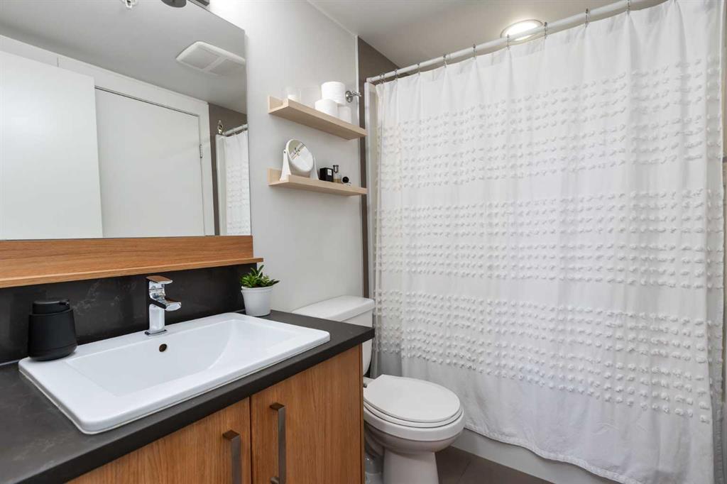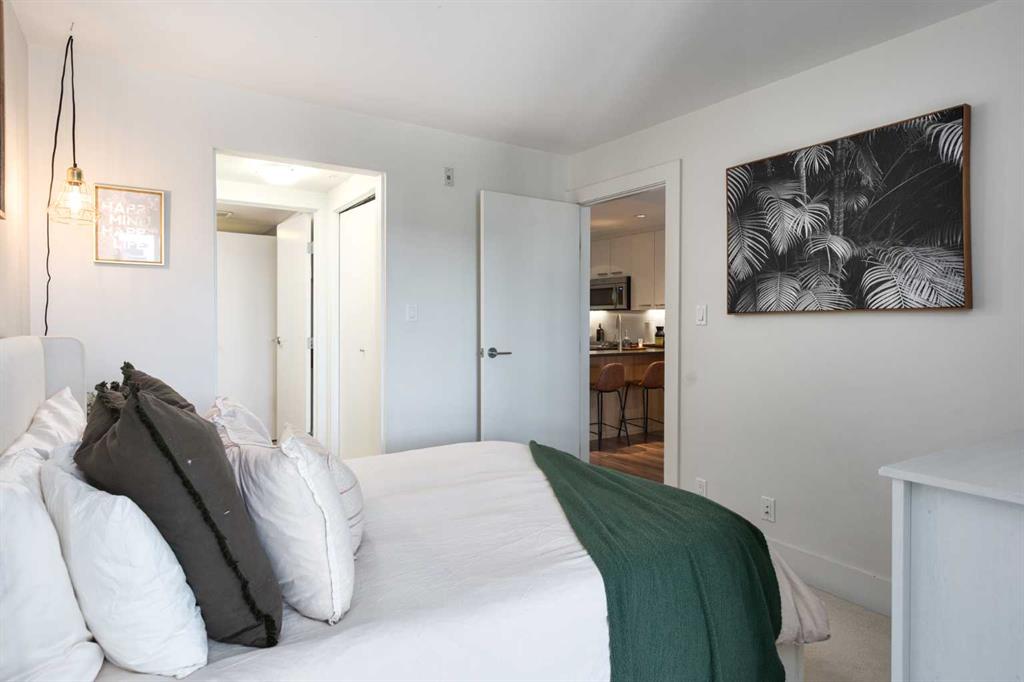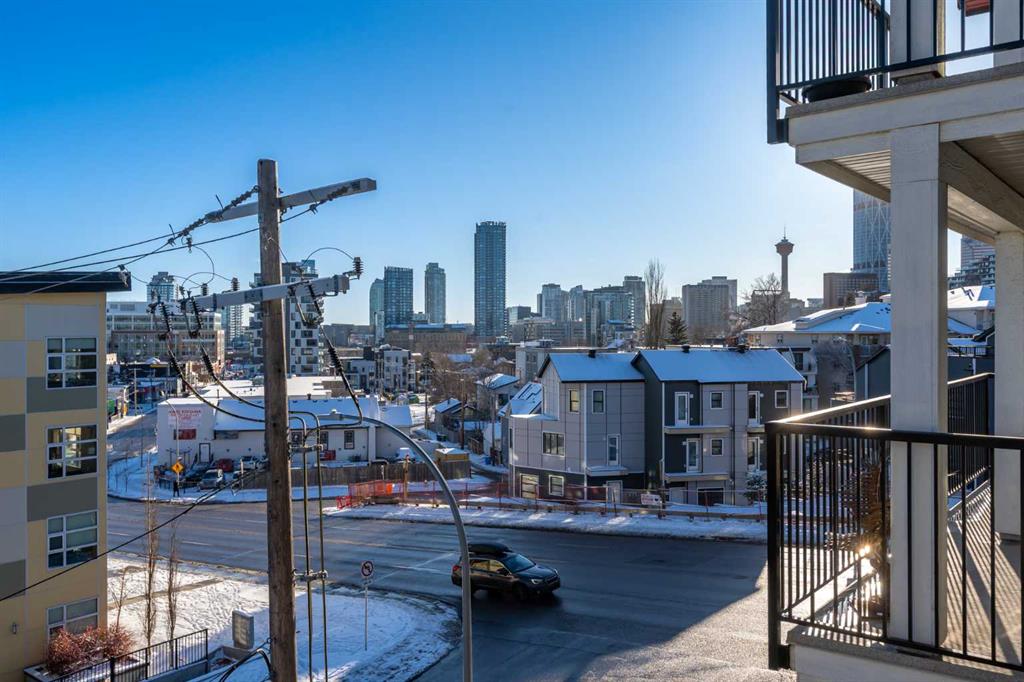 Welcome to this bright and spacious 1-bedroom home in the heart of vibrant Bridgeland. This thoughtfully designed unit features an open-concept layout with a well-defined dining area that flows seamlessly into the living room—perfect for both everyday living and entertaining. The modern kitchen is equipped with quartz countertops, a gas range, and full stainless steel appliances, offering both style and functionality. Large windows fill the space with natural light, leading out to a southeast-facing balcony with stunning views of downtown. The generously sized bedroom includes a walk-through closet that connects directly to the bathroom, complete with a bathtub. Additional highlights include in-suite laundry, an underground parking stall, and a separate storage locker. This pet-friendly building offers excellent amenities such as a fully equipped gym and convenient bike storage. Located just steps from Bridgeland’s shops, cafes, parks, and transit, this home combines urban living with comfort and convenience.