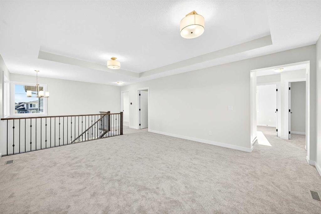 Welcome to this striking new-build family home by Genesis Home in the desirable Bayside community, offering 4 Bedrooms, a large Bonus Room, 2.5 Baths, 2,767 sq.ft. of thoughtful living space. Backing directly onto a walking path and the scenic canal, this residence invites a lifestyle of connection with nature and outdoor enjoyment. Step inside the inviting front porch to the main level with 9-ft ceilings and vinyl plank flooring throughout. To the left is a Den, ideal for home office or quiet retreat. The heart of the home unfolds with an East-facing open floor plan, where three large windows frame the walking path and canal, flooding the space with light. The well-appointed white Kitchen features a centre island, quartz countertops, ample cabinetry and extra storage, stainless steel appliances and a walk-through pantry. The large Living Room with built-in media station and the spacious Dining Area that are great for entertaining with friends and family. From the Dining Room via a 3-panel sliding patio door to a deck, complete with gas hookup and beautiful canal views. Imagine sitting out on the deck to enjoy your morning coffee with a nice view of the Canal to start your day. From the Kitchen and pantry you enter a well-designed Mudroom with built-in cabinets and bench, which leads to the double attached garage. A powder room rounds out the main level. On the upper level, you’ll find a large Bonus/Family Room, a spacious Primary Bedroom with canal-view window, and a spa-inspired 5-piece ensuite featuring a double vanity, freestanding soaking tub and large walk-in closet. Three additional Bedrooms, a 5pc Bath and a conveniently located Laundry Room complete this level. The walk-out basement is currently unfinished but includes a bathroom rough-in and dual furnaces—representing great potential for future development. Step outside to the East-facing backyard that backs directly onto the walking path and canal—with gated access to the path—creating a seamless indoor-outdoor connection and a true extension of the home’s living space. Enjoy the patio area with a second gas hookup, perfect for outdoor dining or a future fire table setup. Located in Bayside, this home offers you the best of family-friendly design and location. The community is known for its picturesque canals, scenic walking paths and abundant green space. With easy access to schools, shopping and transit, it offers both tranquility and convenience. A rare opportunity to own a brand-new family home with canal-side living, premium layout and an unbeatable setting.