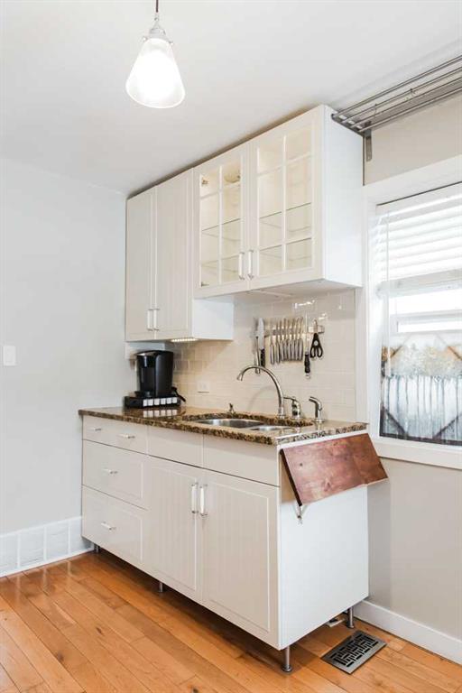 Instant Airbnb potential and vacant for quick possession, this updated compact home is ideal for a first-time buyer who wants utility, flexibility, and future upside. Offering 2 bedrooms and a roomy bathroom with a custom arched tile shower, the layout is efficient and low-maintenance. Cool updates this home has had over the years include, heated tile flooring in the bathroom, granite kitchen counters, front load washer and dryer which are aprox 1 year old. The fully fenced yard features a ground-level deck and back alley access and has a fire pit. The highlight is the detached heated 14’ x 33’ garage (built in 2011) with natural gas heat, welder plug, and an 8’ overhead door — plenty of space for your toys, tools, quad, sled, and even a full size long box crew cab truck. For an additional $5,000, the furniture can stay so you can start Airbnb operations immediately upon possession. The RT-zoned lot allows for duplexes, triplexes, or garage suites subject to city approval, making this a solid long-term investment. Please click on the multimedia link or 3D icon to take the virtual tour!