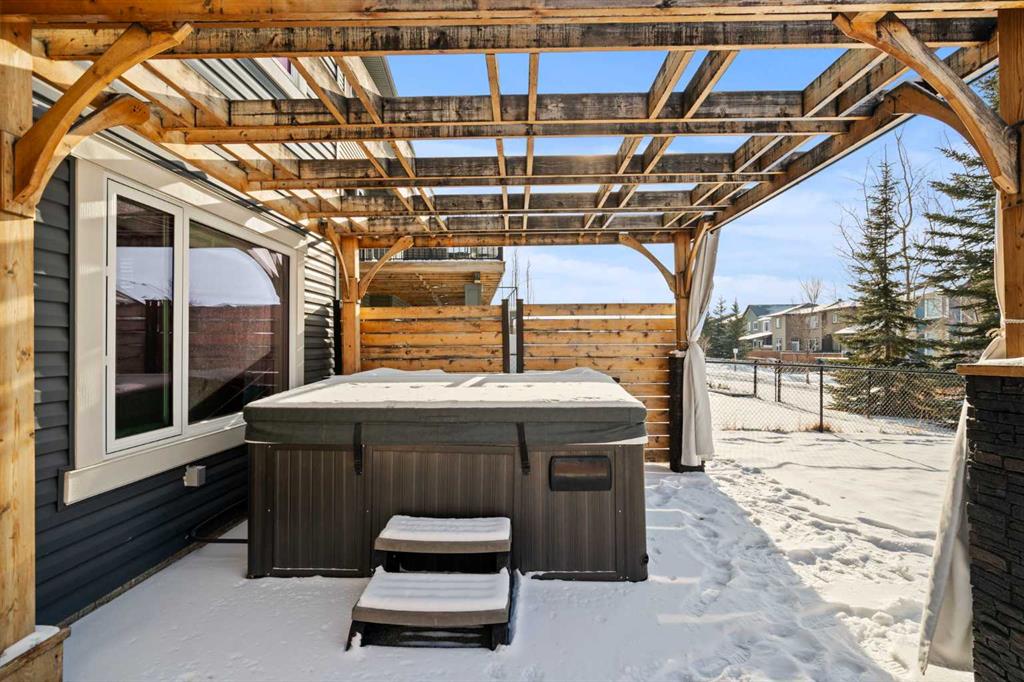 Impeccably maintained and move-in ready, this bright and spacious home offers over 3,200 sq ft of finished living space with a fully developed walkout basement and a west-facing backyard that enjoys a pleasant green view and easy access to nearby parks and pathways. From the moment you enter, you’ll love the inviting foyer, grand two-storey entrance, and upgraded open railings. The main floor is designed for everyday living and entertaining with a private den, open-concept living room with gas fireplace, and a spacious dining area. The chef-inspired kitchen is a standout with granite countertops, a gas cooktop with wall oven, pot and pan drawers, and a walk-through pantry to the oversized mudroom. Upstairs features a large bonus room, convenient upper laundry, and three spacious bedrooms including a primary retreat with vaulted ceilings, walk-in closet, and spa-style ensuite with dual vanities, soaker tub, oversized shower, and private water closet. The walkout basement includes a kitchenette, fourth bedroom, full bathroom, and great storage—ideal for guests, teens, or flexible family living. Outside, unwind in the hot tub and enjoy the mature landscaping. Central A/C and a prime location close to excellent schools (including a K–12 Francophone option), shopping, parks, and pathways complete this exceptional home.