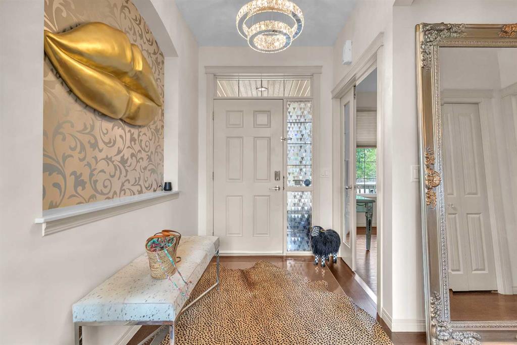 This STUNNING walkout onto Rainbow Falls pond is a must see! Featuring 5 bedrooms, theatre room, and panoramic water views, at 3850 sq.ft of space, this executive home blends size, style, and serenity in one of Chestermere’s most sought-after communities. Step inside to a bright and open main level with soaring ceilings, expansive windows framing the water, and a chef-inspired kitchen with granite counters, rich cabinetry, and a large centre island—perfect for family living and entertaining. The living room is anchored by a cozy fireplace, while the dining area opens to a deck overlooking the pond, creating an effortless indoor-outdoor flow. A second formal dining room, front office and sleek butler’s pantry round out the main floor. Upstairs, the spacious primary suite offers breathtaking views, a spa-like ensuite, and a generous walk-in closet, complemented by two additional bedrooms, full bath and incredible media bonus room. The walkout lower level is fully finished with spacious rec room with fireplace, wet bar, two additional bedrooms and full bathroom. Outside, the landscaped yard and covered patio invite year-round enjoyment of the peaceful waterfront setting. New items as of 2022 are Hot Water Tank, Thermadore Gas Stove, Microwave, Washer, Dryer, Bar Fridge, Dishwasher, basement fridge and microwave. With its refined updates, theatre and entertainment spaces, in-floor heated basement, and unbeatable location, this property delivers the lifestyle buyers dream about—whether it’s hosting friends, relaxing by the fire, or watching sunsets over the pond.