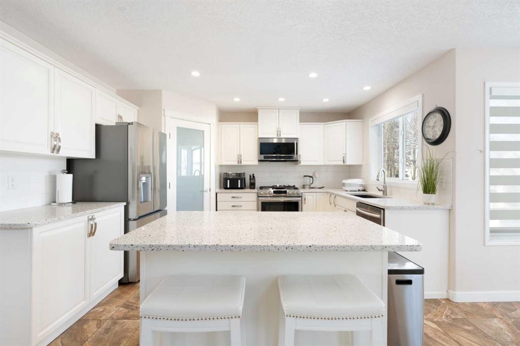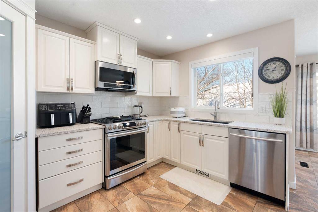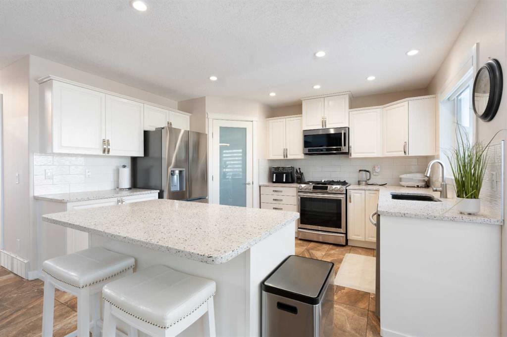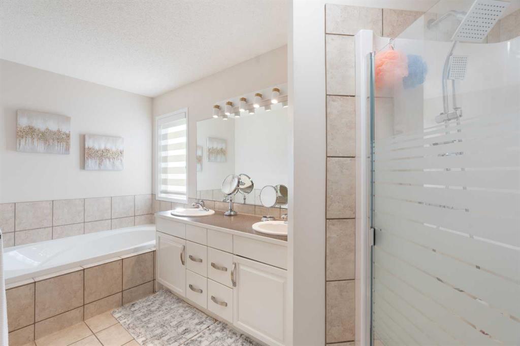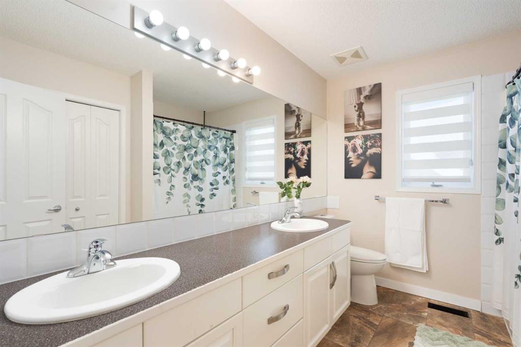 Beautiful 2 storey family home with walkout basement in Cranston. Great floor plan with 4 bedrooms, 3 & 1/2 bathrooms. Big windows for brightness. Very well maintained and clean. Main floor features big living room, spacious family room with cozy fireplace, gourmet white kitchen with newer granite counter tops and back splash, big breakfast nook with patio door leading to a large and upgraded deck with cozy gazebo, big den perfect for home office, main floor laundry and powder room. Large master bedroom upstairs with elegant ensuite bathroom, 2 spacious kids' bedrooms and big main bathroom with two sinks. Professionally finished walkout basement with additional bedroom, full bathroom, convenient kitchenette, huge family room with second fireplace and additional laundry with separate entrance. A lot of upgrades in this lovely home like new roof in 2023, brand new hot water tank, new blinds, new fridge, 3 years old stove and dishwasher, newer flooring, new light fixtures. Perfectly located on safe and quiet cul-de-sac with walking distance to schools and parks. Close to shopping and transportation.
