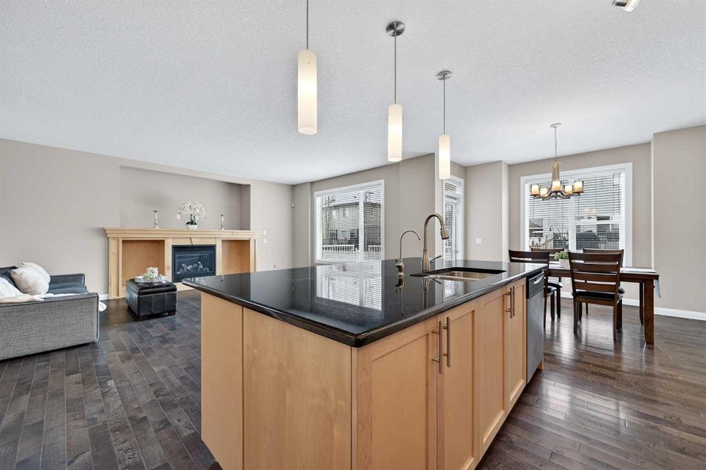 OPEN HOUSE SAT. 2-4. This stunning Broadview-built two-storey home is located in the highly sought-after community of Silverado and offers an impressive 3,350 sq. ft. of fully developed living space with FOUR BEDROOMS AND A FINISHED BASEMENT. The open-concept main floor showcases 9’ ceiling, gleaming hardwood floors, wide hallways, a bright and spacious living room filled with south-facing windows, and a chef’s kitchen featuring custom maple cabinetry, granite countertops, and a large island ideal for both everyday living and entertaining. From the dining area, step out onto a massive two-level deck overlooking a fully fenced backyard with cobblestone pathways, BBQ gas line, and a beautiful vegetable garden. Upstairs, the bright and spacious bonus room is ideal for family gatherings, while the south-facing primary bedroom boasts a luxurious ensuite with double vanities, separate shower, and deep soaker tub. Two additional generously sized bedrooms, a 4-pc full bath and a convenient computer/work area complete the upper level. The fully finished basement with 9’ ceiling offers exceptional versatility with a large recreation area featuring a mirrored wall for a gym or dance studio, an additional bright bedroom with a south-facing window, a den perfect for a home office or hobby room, and a 4-pc full bathroom. Thoughtfully maintained and upgraded, this home features a new roof and siding (2022) and a new double garage door (2025). Ideally located within walking distance to three schools and pathways, just a 7-minute drive to shopping, the library, and the YMCA, and with the world-renowned Spruce Meadows Equestrian Centre as its western neighbor, this home also offers quick access to Stoney Trail and Macleod Trail, providing an easy commute to the mountains —making it a rare opportunity not to be missed.