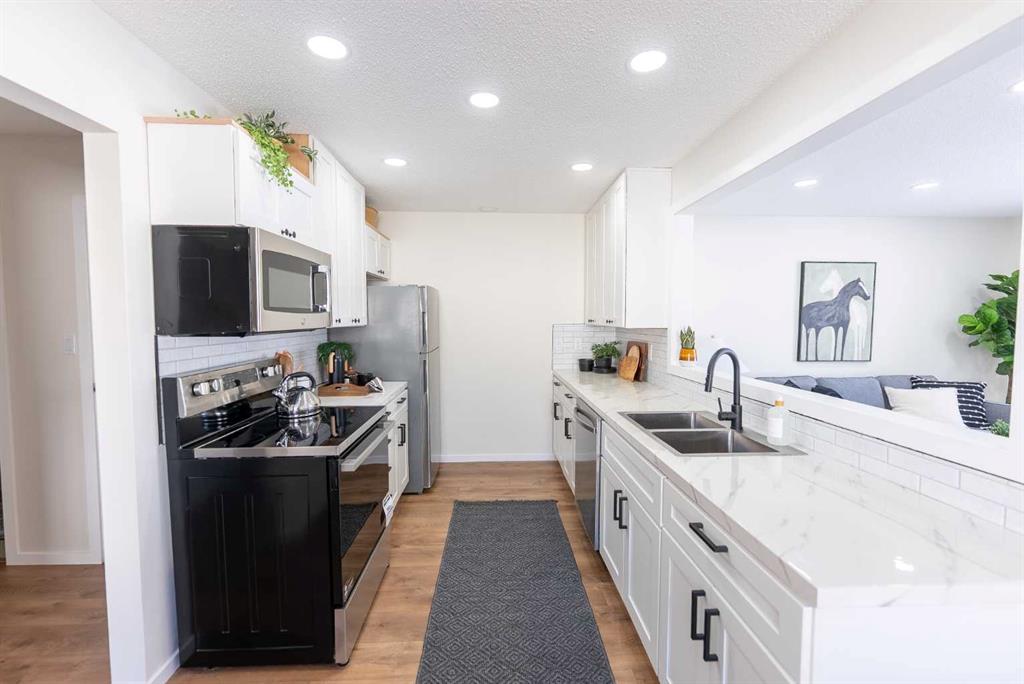 SUITE SOPHISTICATION! Bring your whole family to this gorgeous, fully-renovated, five bedroom/two bath home. It is complete with TWO new kitchens with superior quality, crisp-white shaker cabinets. CUSTOM epoxy countertops upstairs and butcher block countertops downstairs. Two separate entrances, two sets of new Kitchen appliances(except basement stove) and two laundry areas with washers and dryers. All new LUXURY VINYL PLANK flooring. NEW BATHROOMS, NEW TRIM, NEW BASEBOARDS, NEW DOORS, JACKED UP AND UPGRADED LIGHTING IN LIVING ROOM AND KITCHEN WITH FANTASTIC BRIGHT POT LIGHTS. HUGE living room with an EXPANSIVE WEST-FACING WINDOW FOR LOTS OF SUNLIGHT. NEW FRONT SIDING THAT REALLY MAKES THIS HOME STAND OUT ON THIS BLOCK. EXTRA insulation has been blown in in the attic for extra energy efficiency. Large fenced yard with two sheds! TONS of off-street parking. Located across from a Greenbelt, close to schools, shopping, restaurants, and coffee shops. There’s nothing to do here but move in and enjoy. It’s great home isn’t it! Shouldn’t it be yours?